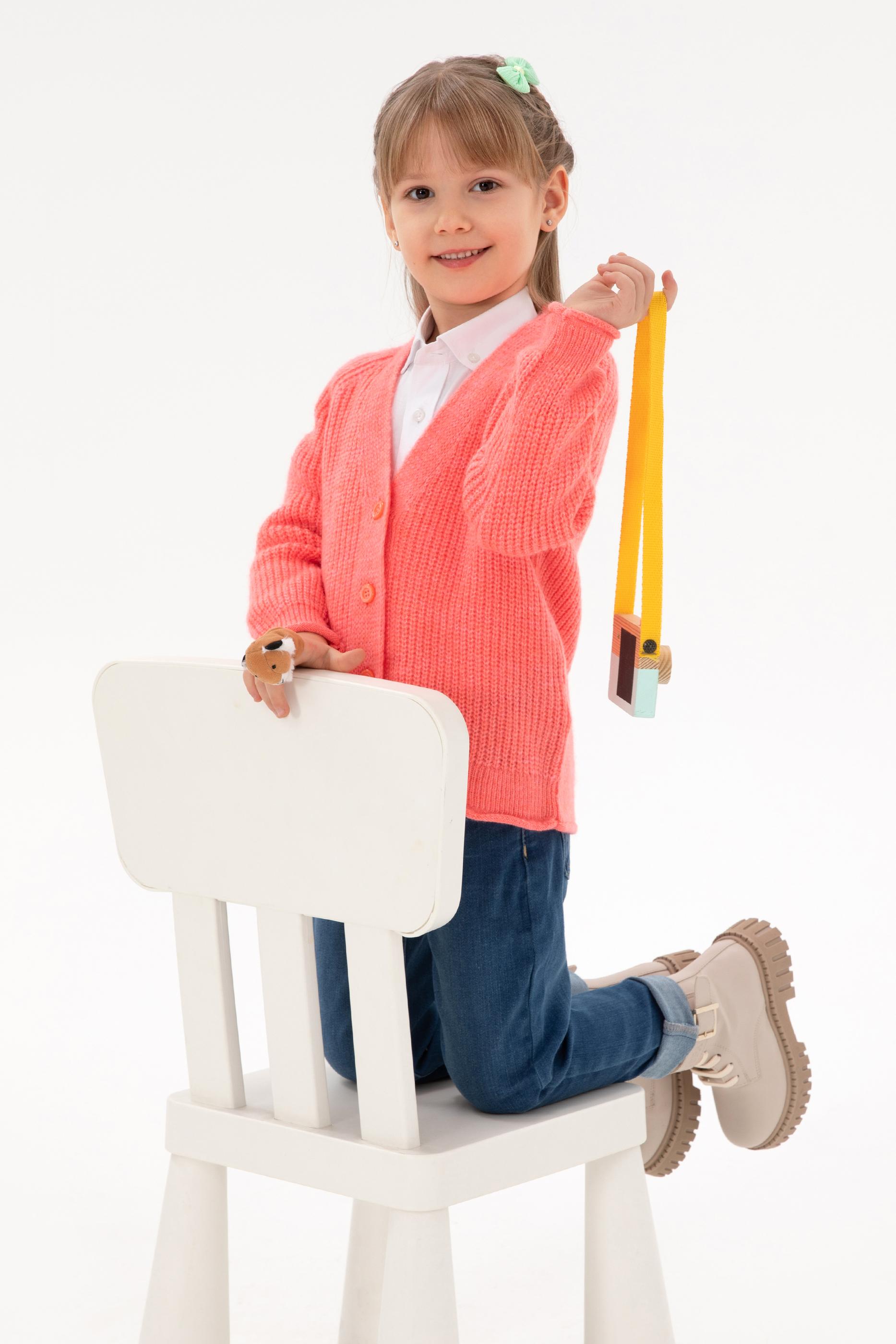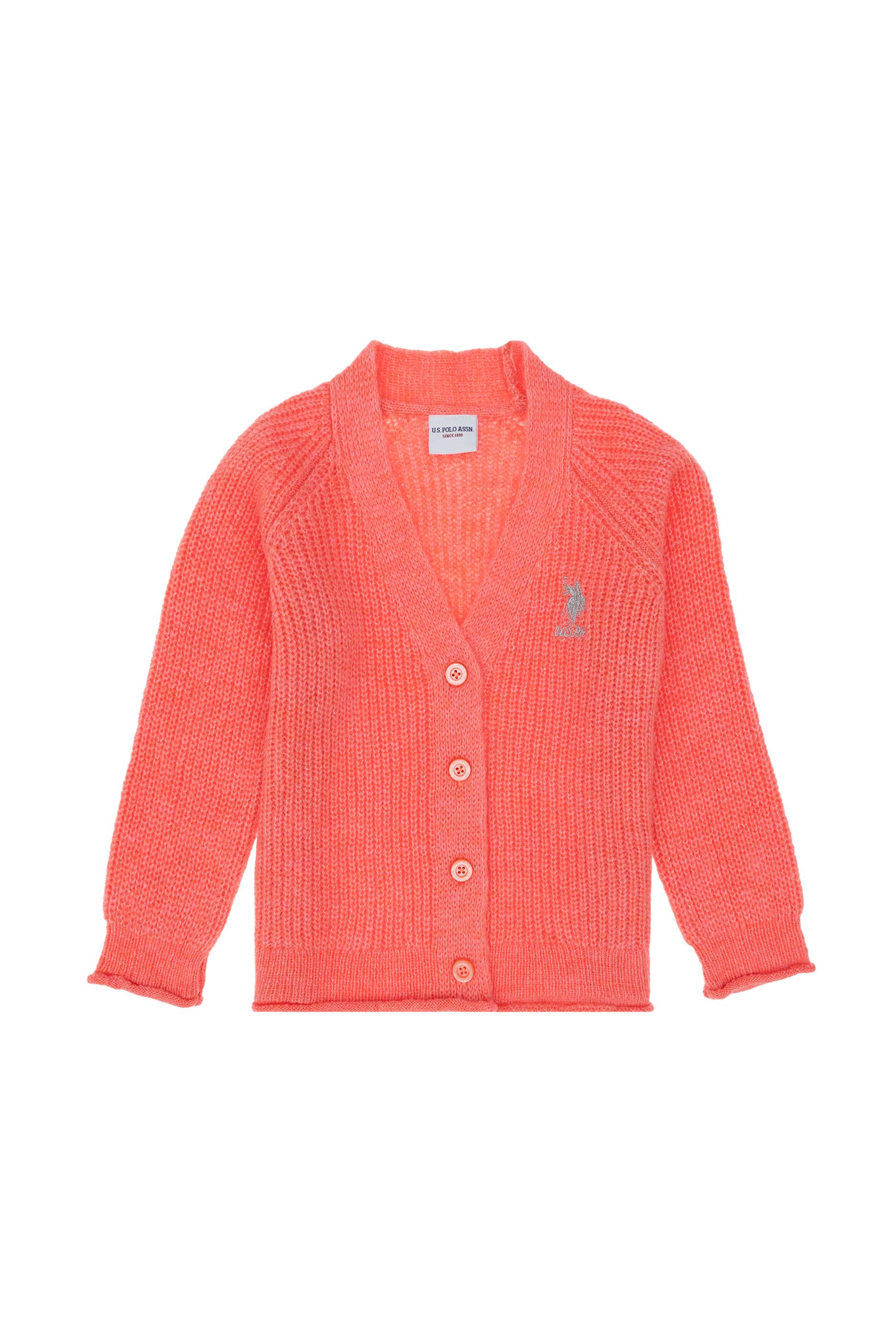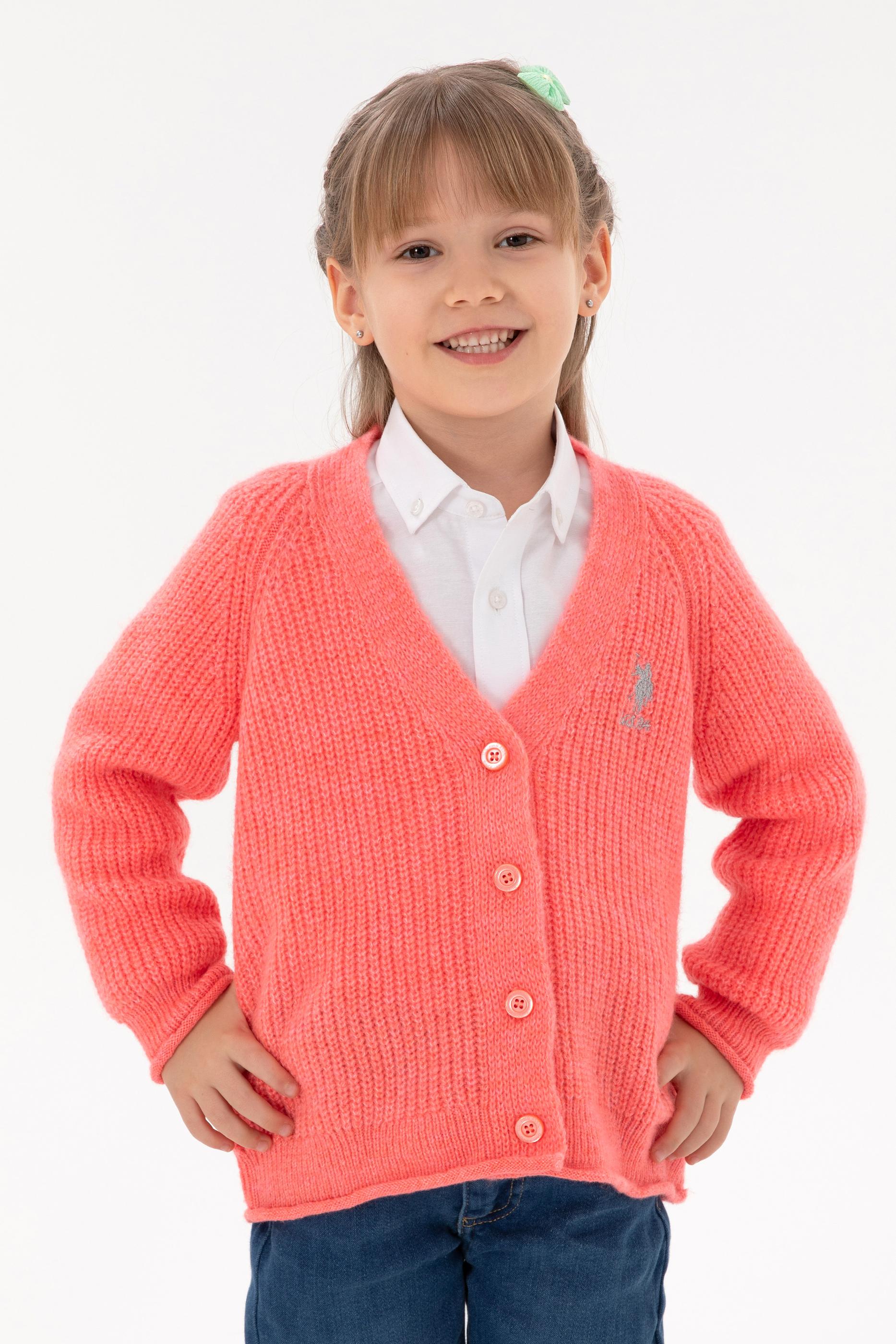 Kız Çocuk Nar Çiçeği V Yaka Triko Hırka