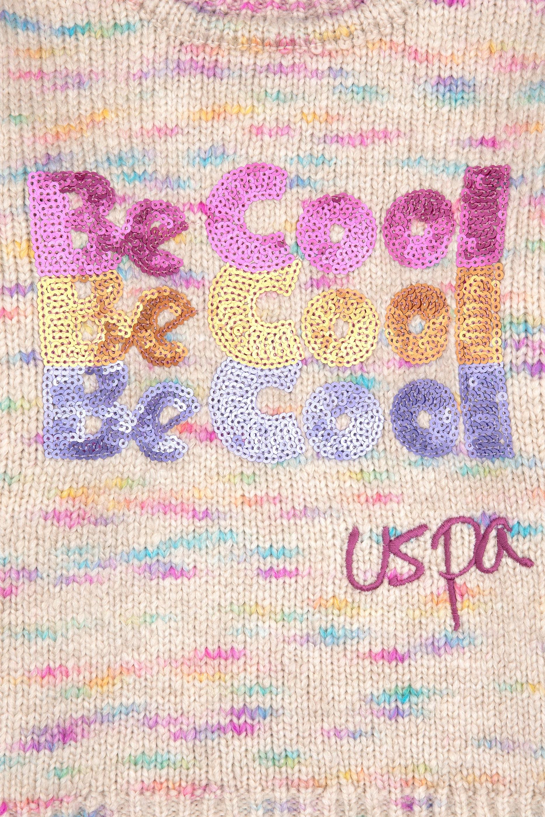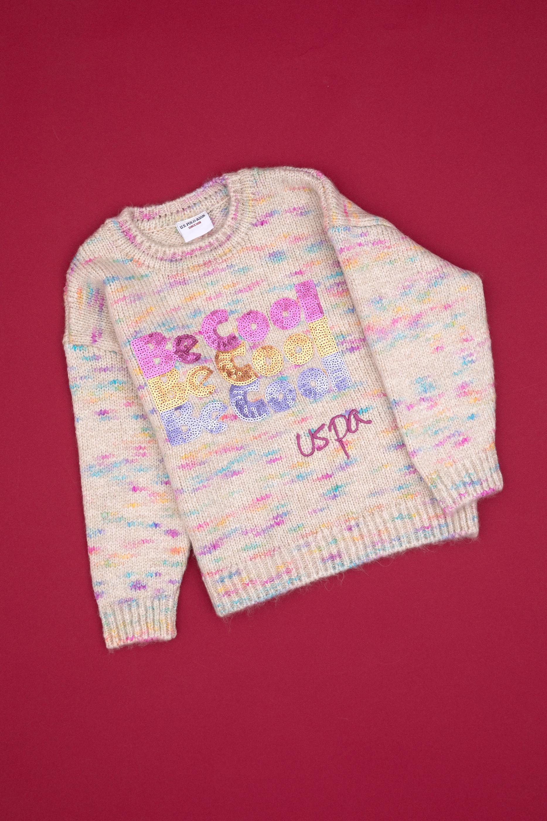 Kız Çocuk Neon Pembe Payet İşlemeli Bisiklet Yaka Kazak