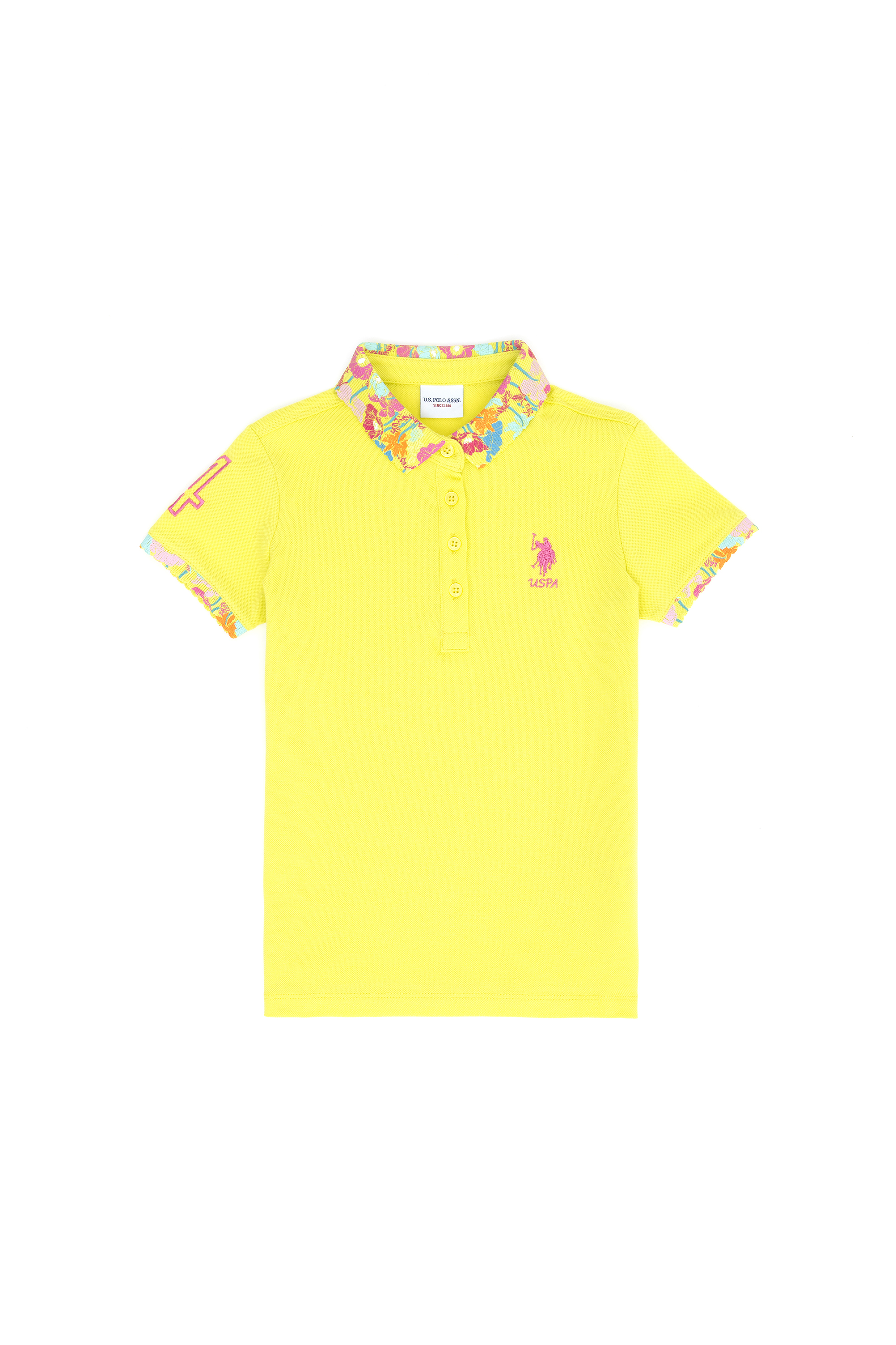 Kız Çocuk Neon Sarı Basic Polo Yaka Tişört