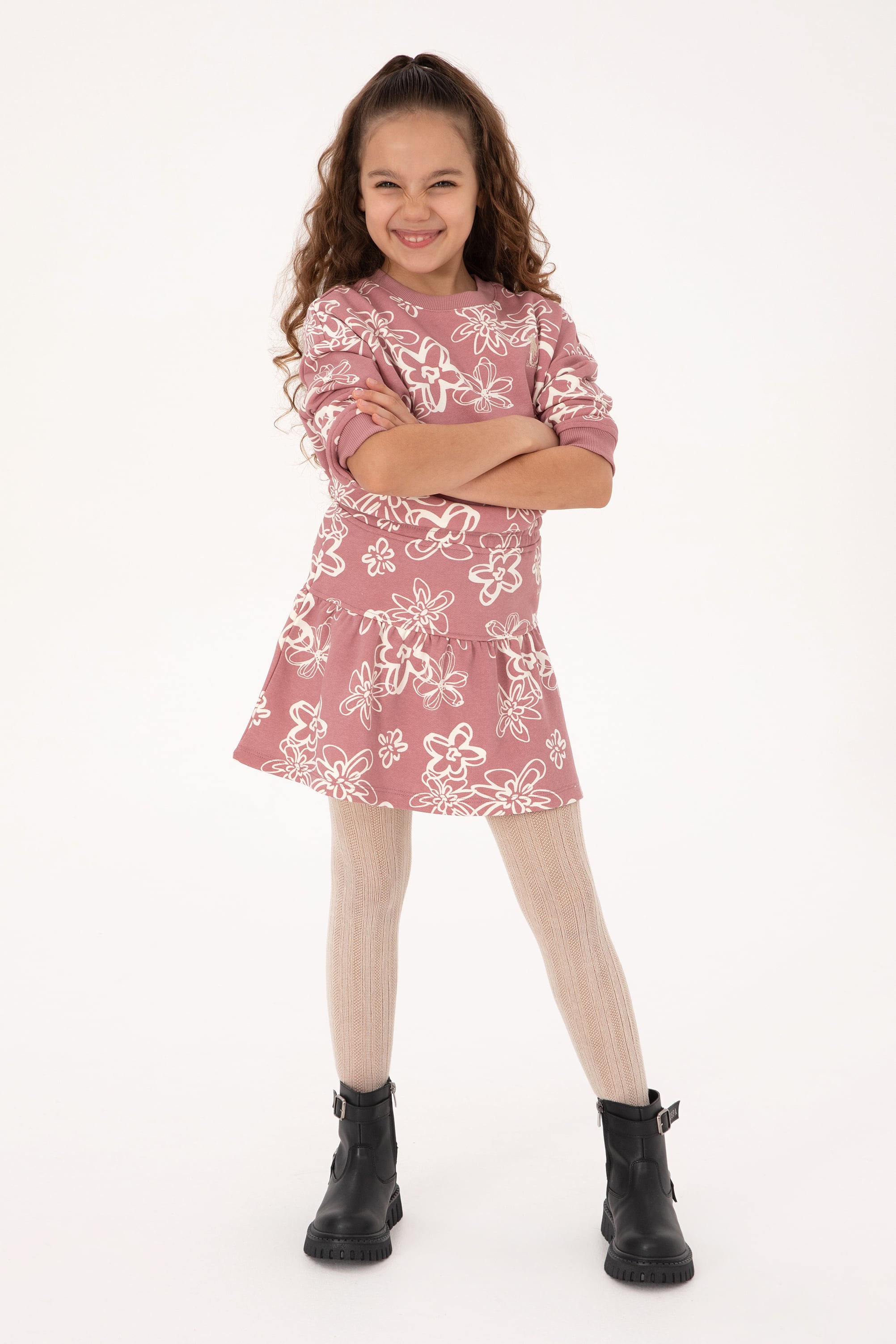 - Kız Çocuk Orkide Çiçek Desenli Örme Etek