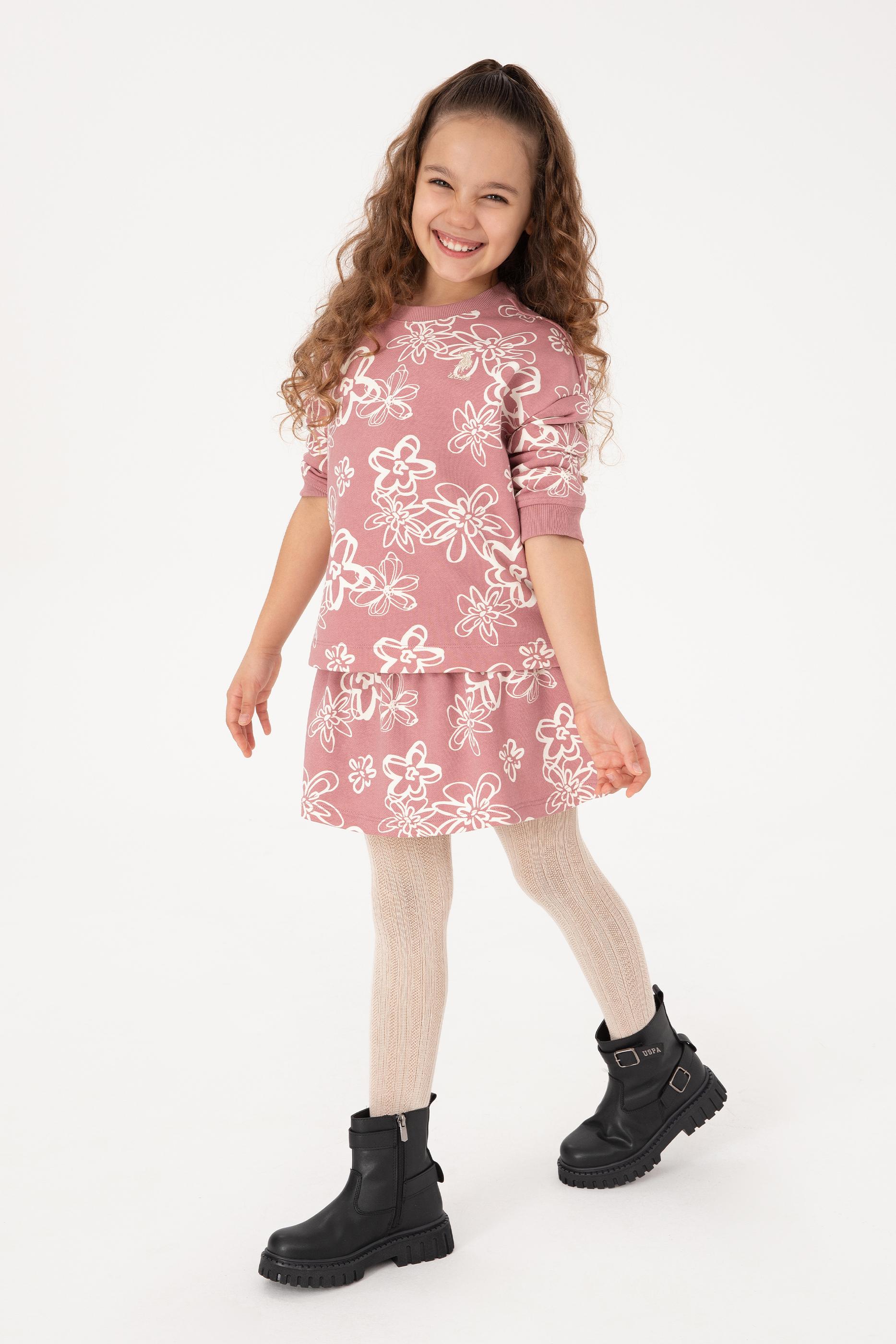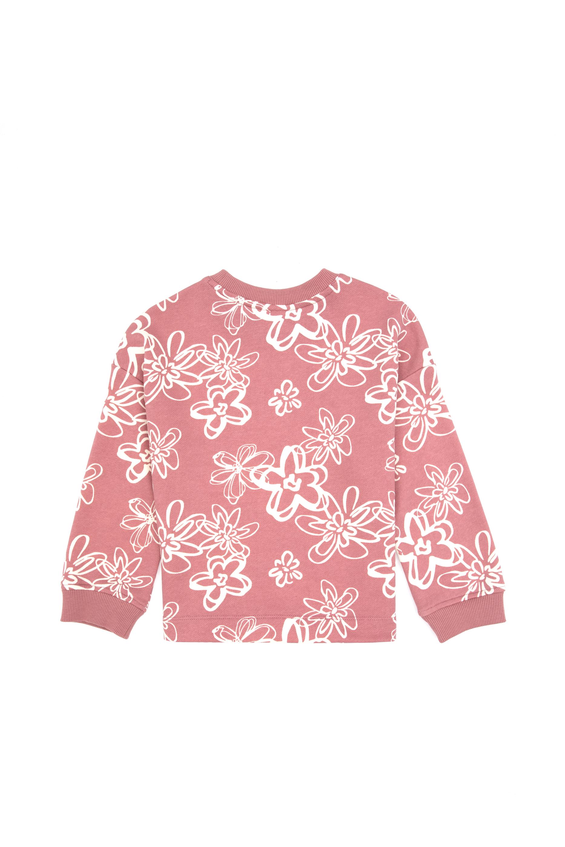- Kız Çocuk Orkide Çiçek Desenli Bisiklet Yaka Sweatshirt