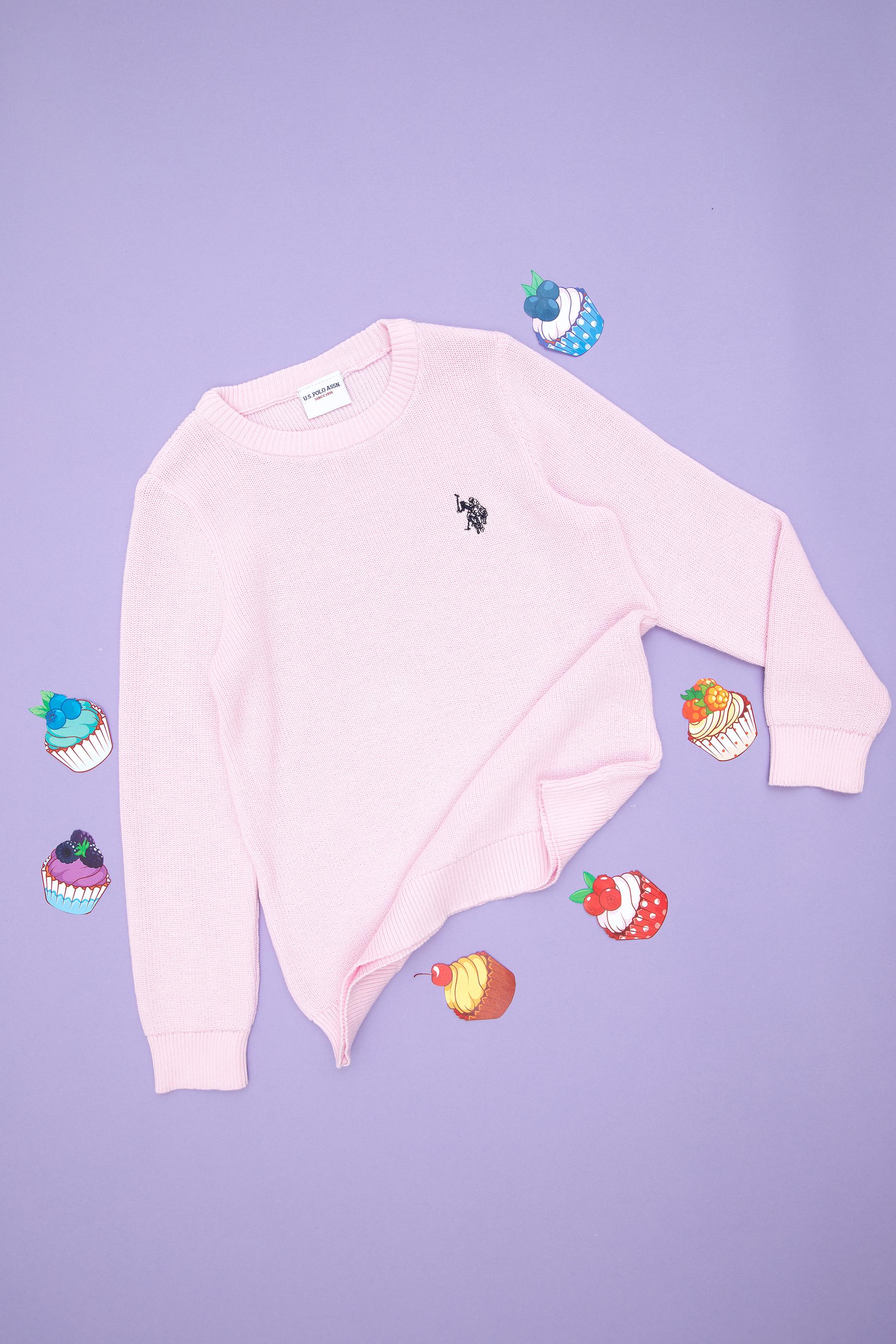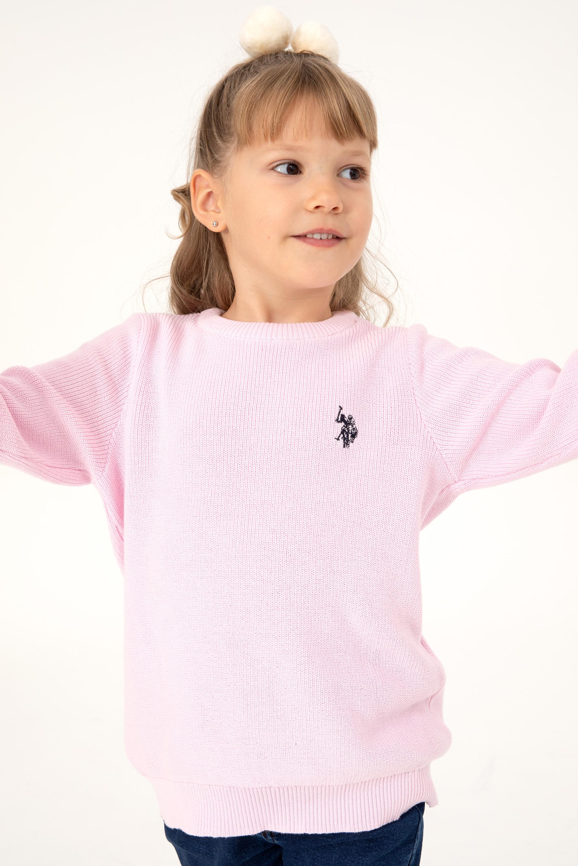 Kız Çocuk Pembe Bisiklet Yaka Basic Kazak