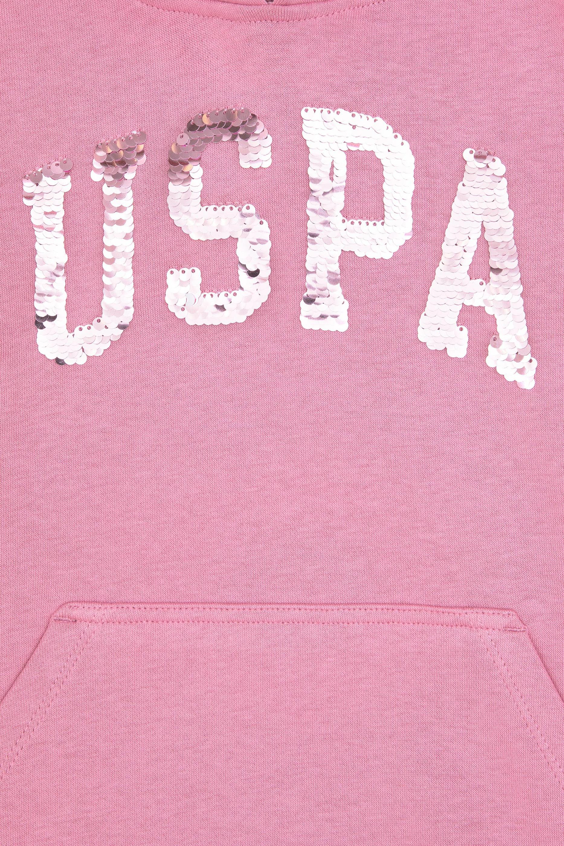 - Kız Çocuk Pembe Payet İşlemeli Kapüşonlu Basic Sweatshirt