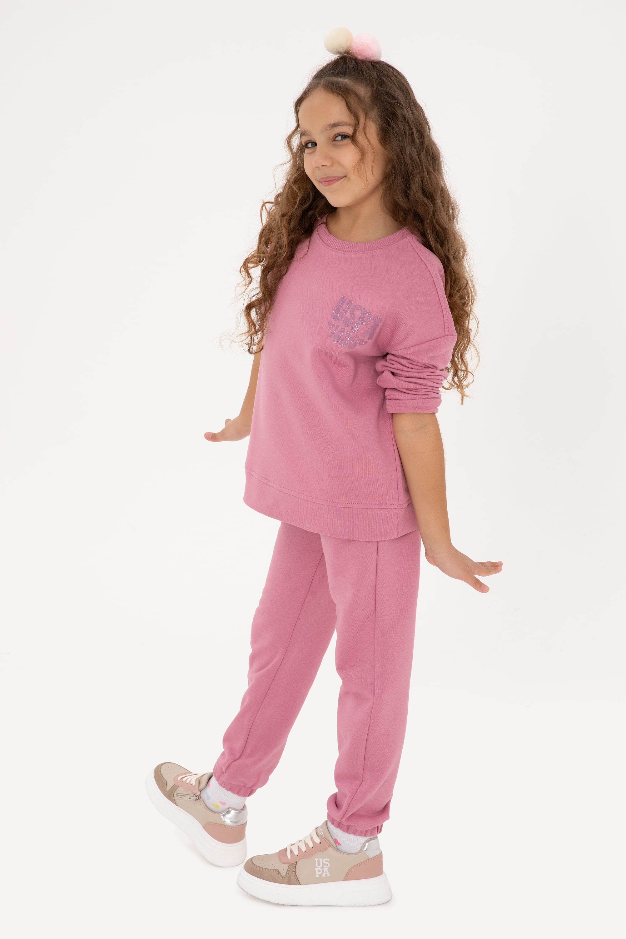 - Kız Çocuk Pembe Simli Baskı Detaylı Jogger Eşofman Altı