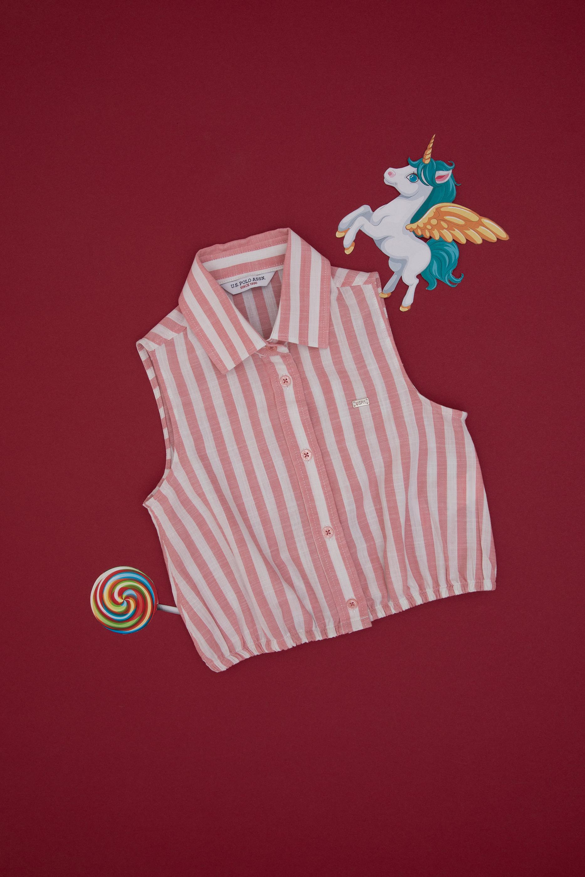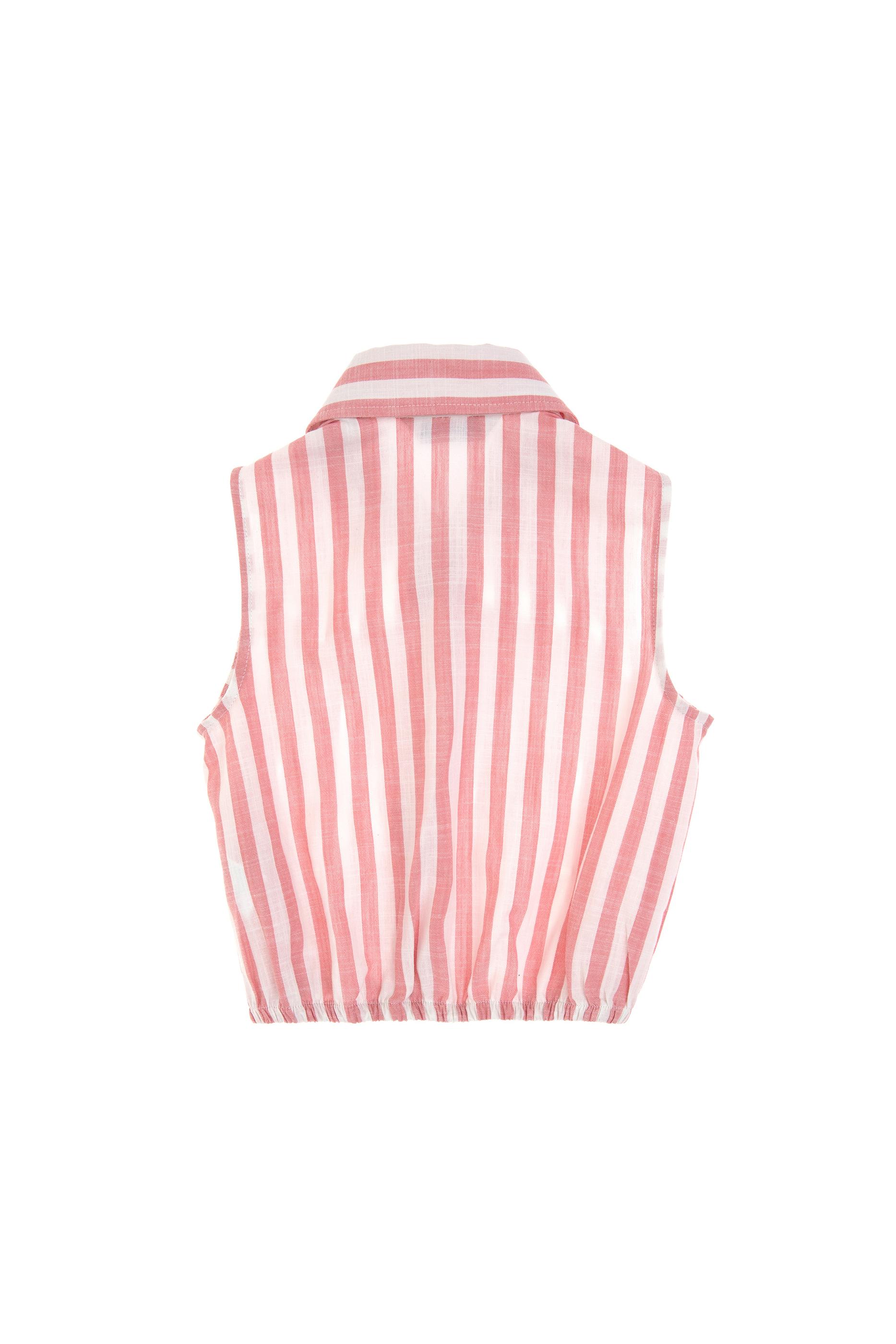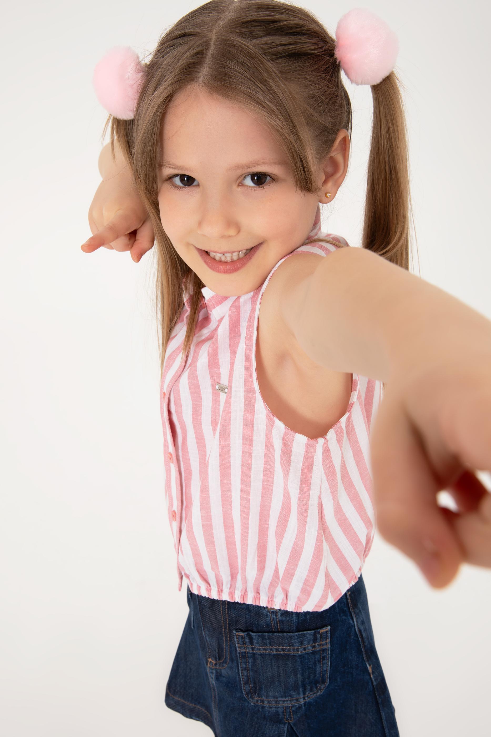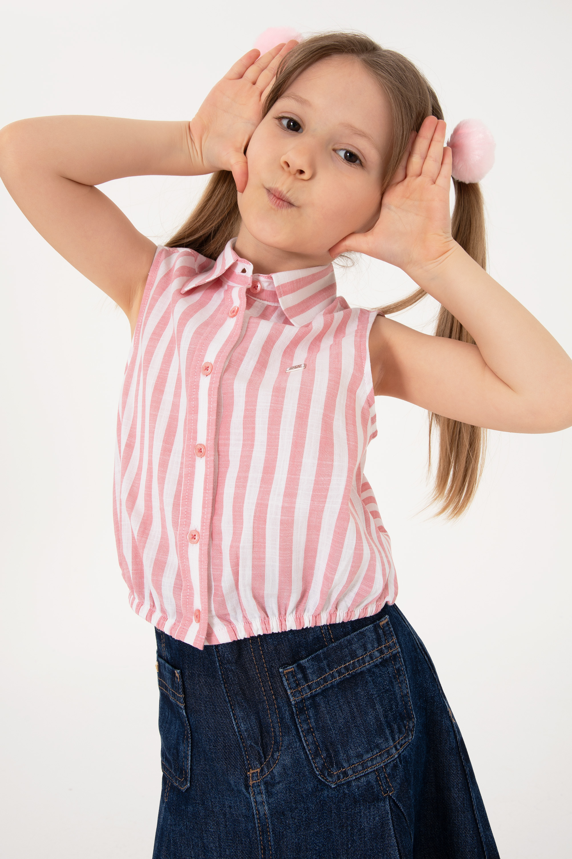 Kız Çocuk Pembe Çizgili Kolsuz Gömlek