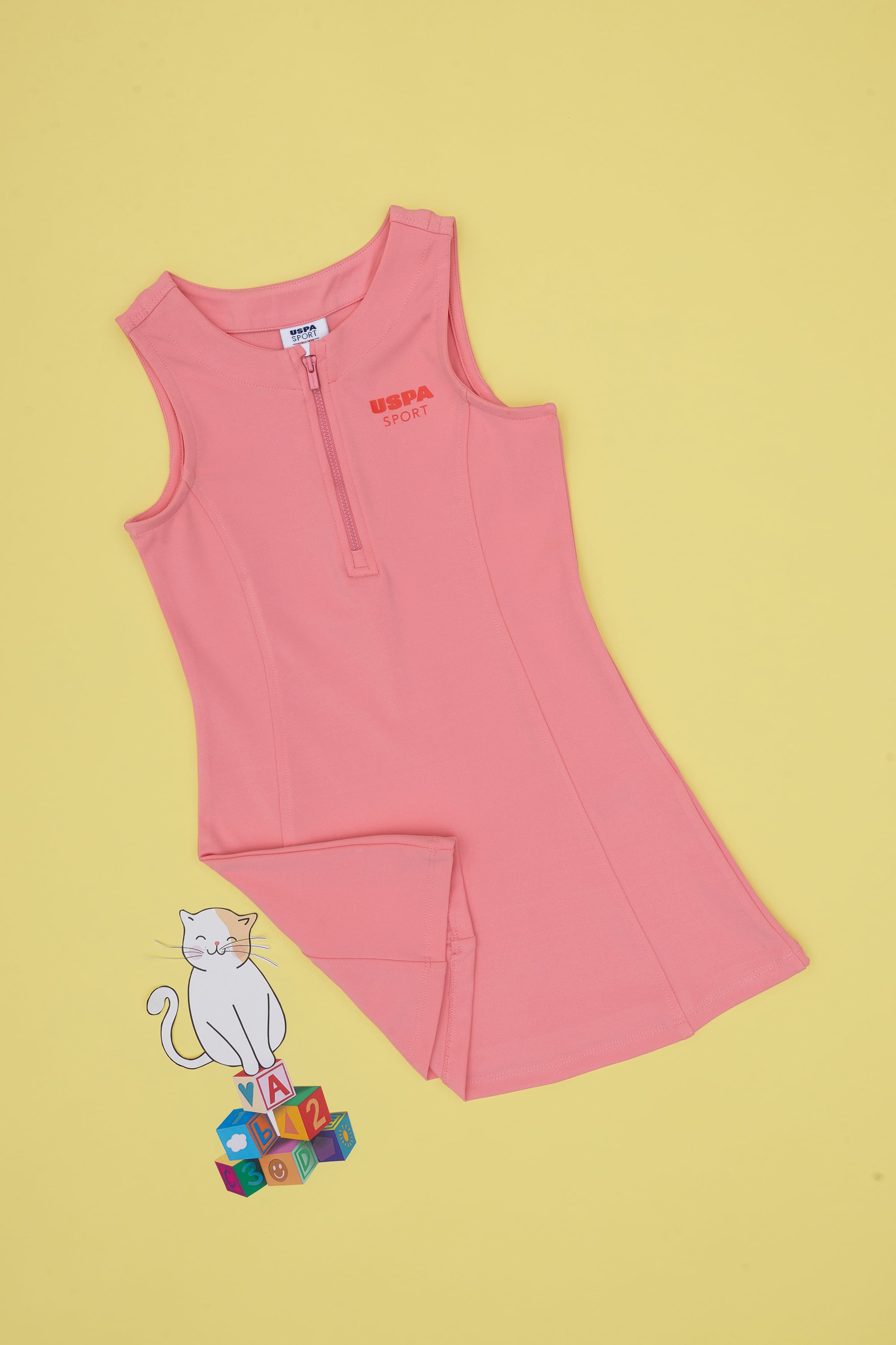 - Kız Çocuk Pembe Yarım Fermuarlı Örme Elbise