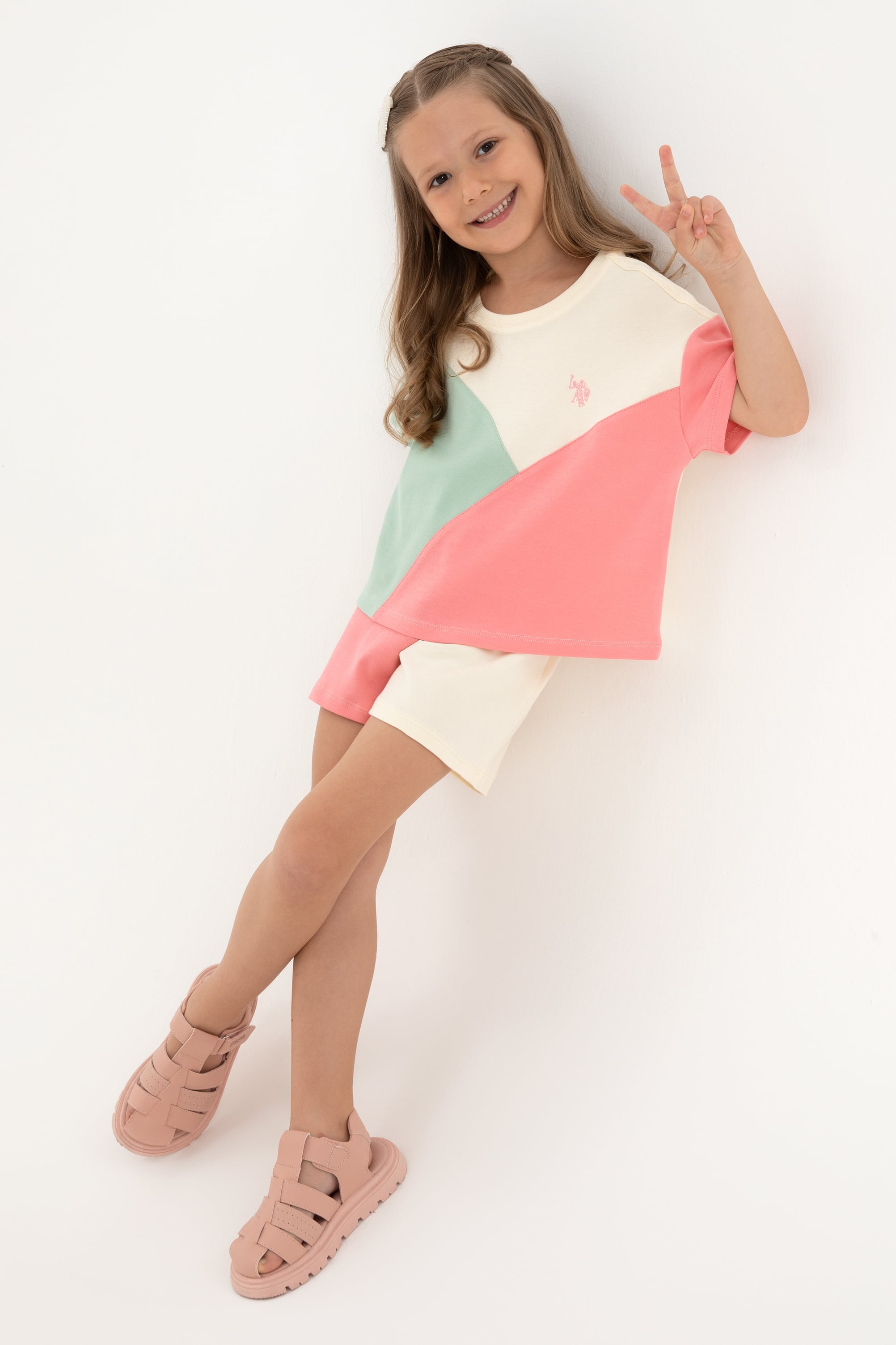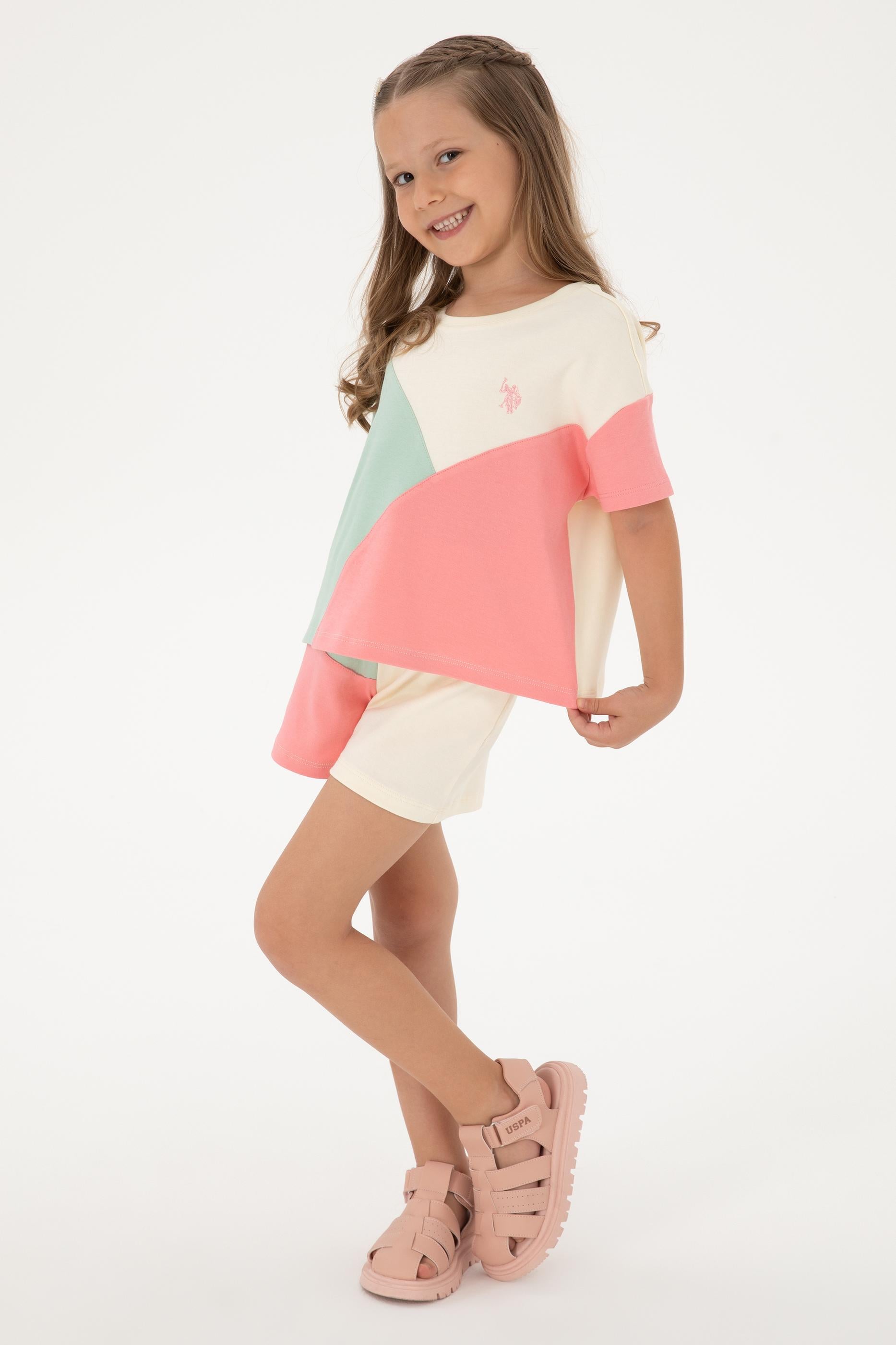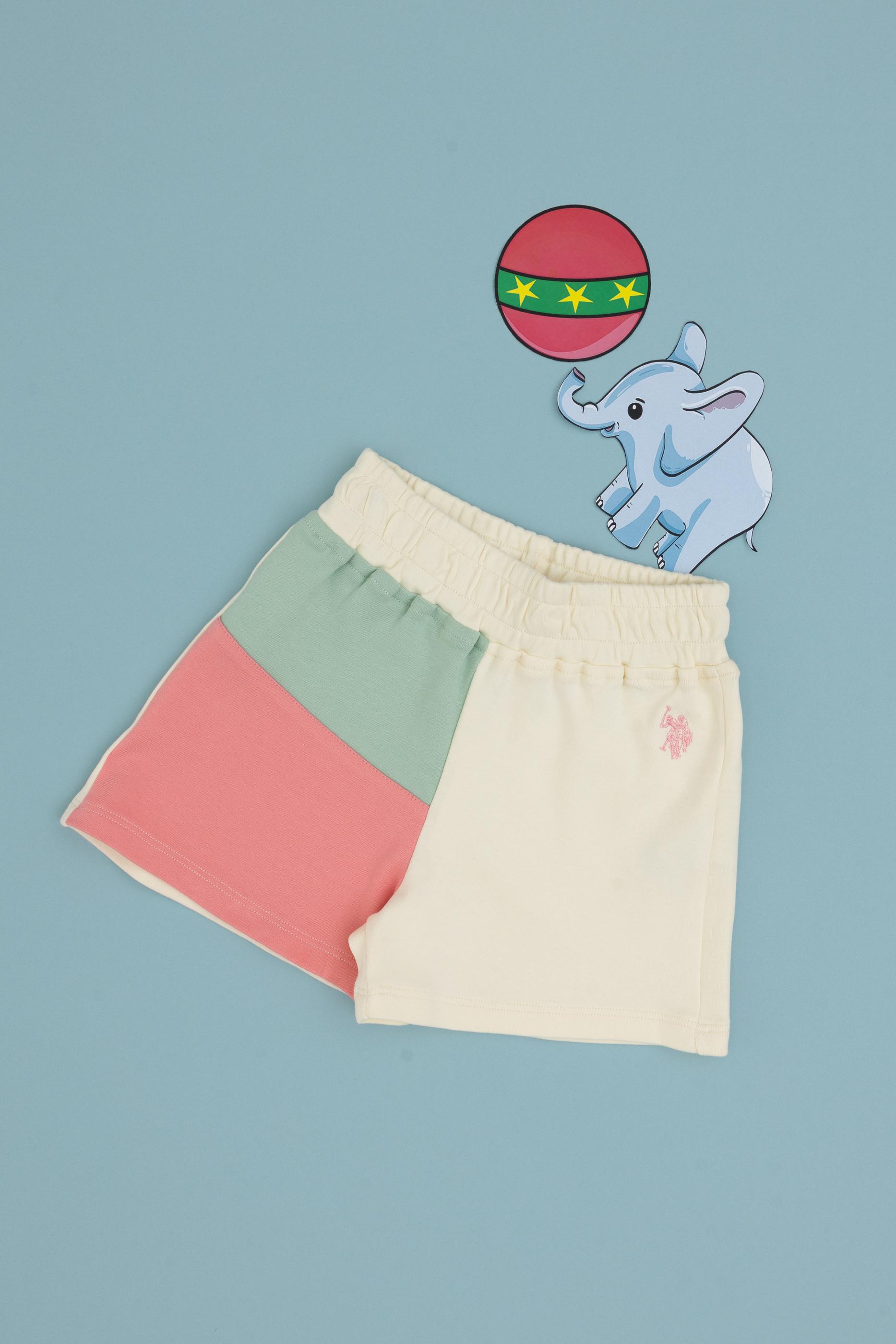 - Kız Çocuk Pembe Blok Renkli Örme Şort