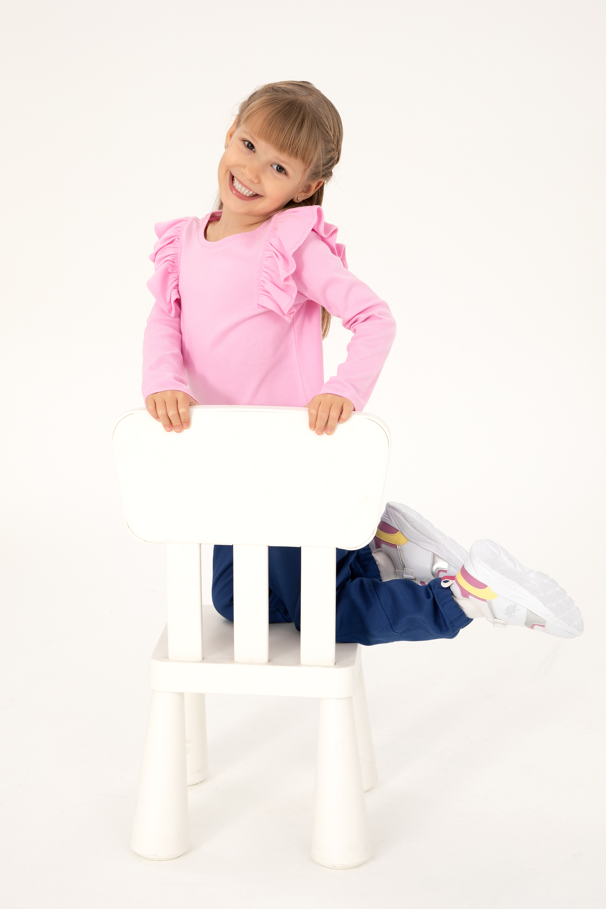 Kız Çocuk Pembe Bisiklet Yaka Sweatshirt