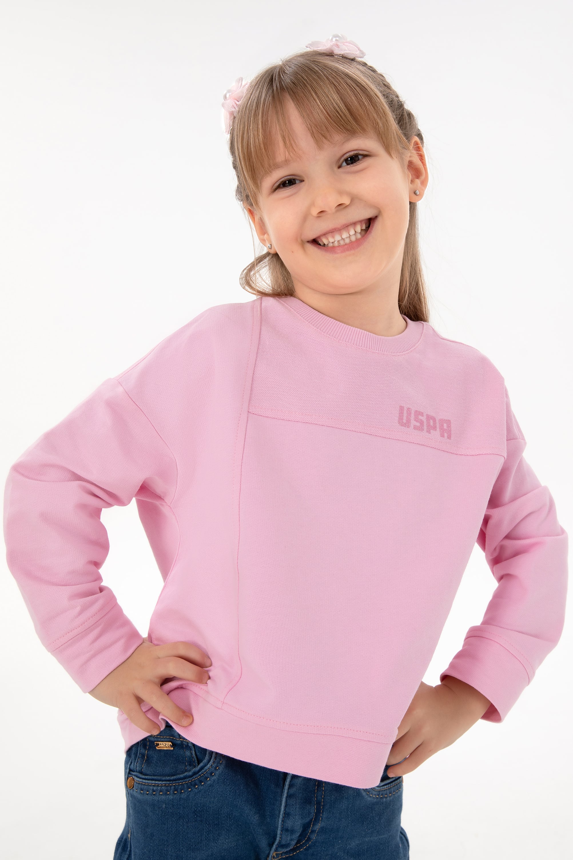 Kız Çocuk Pembe Bisiklet Yaka Sweatshirt