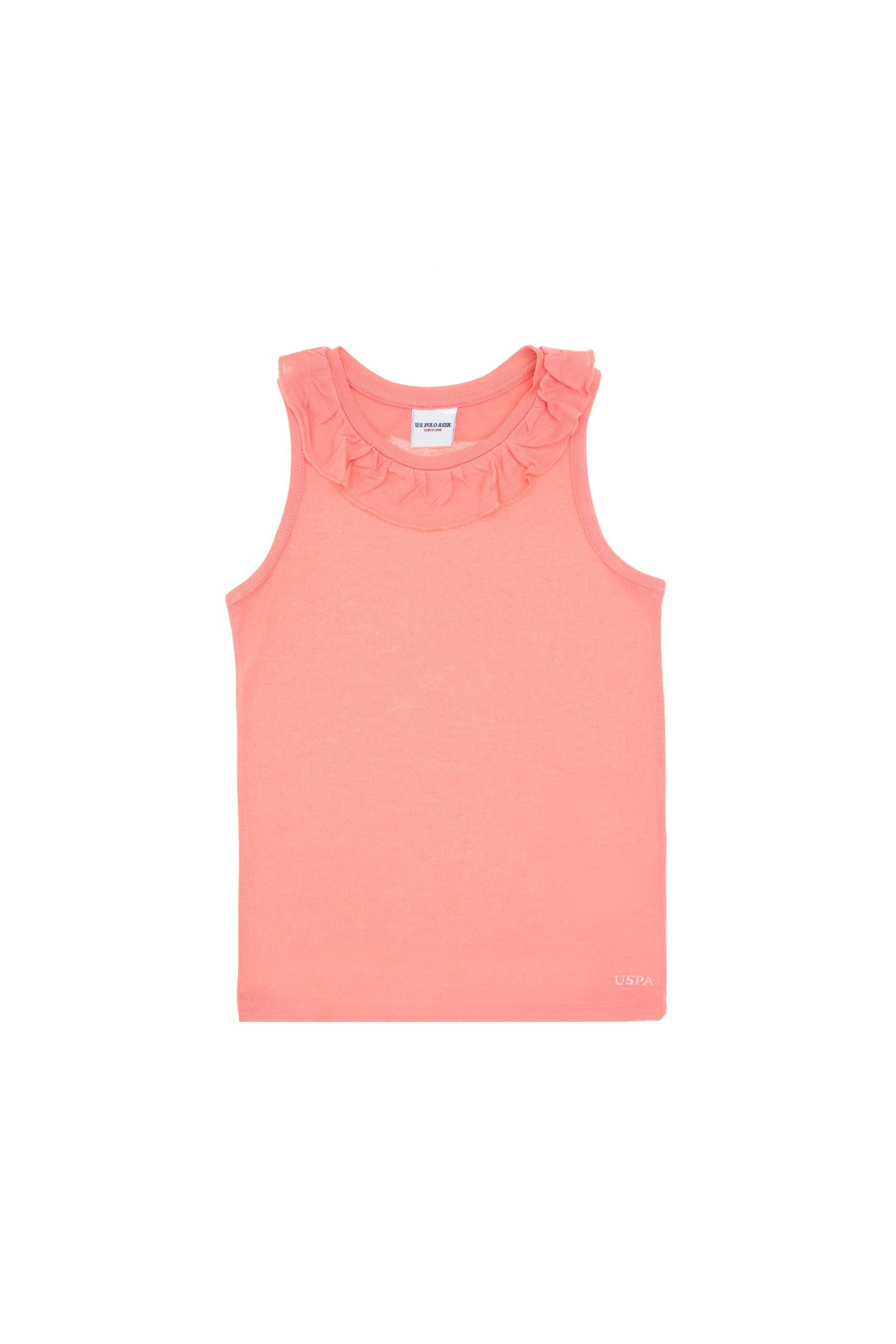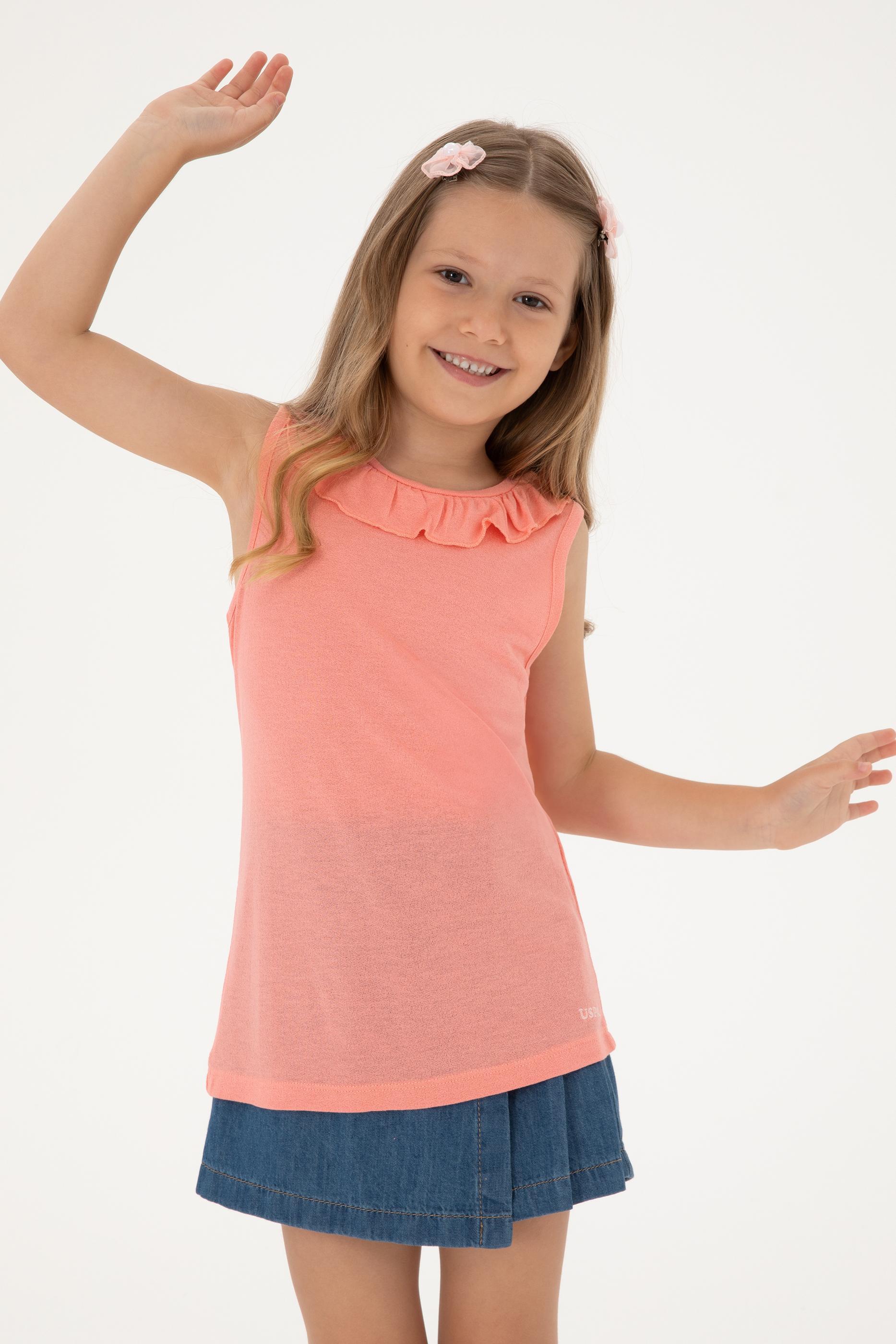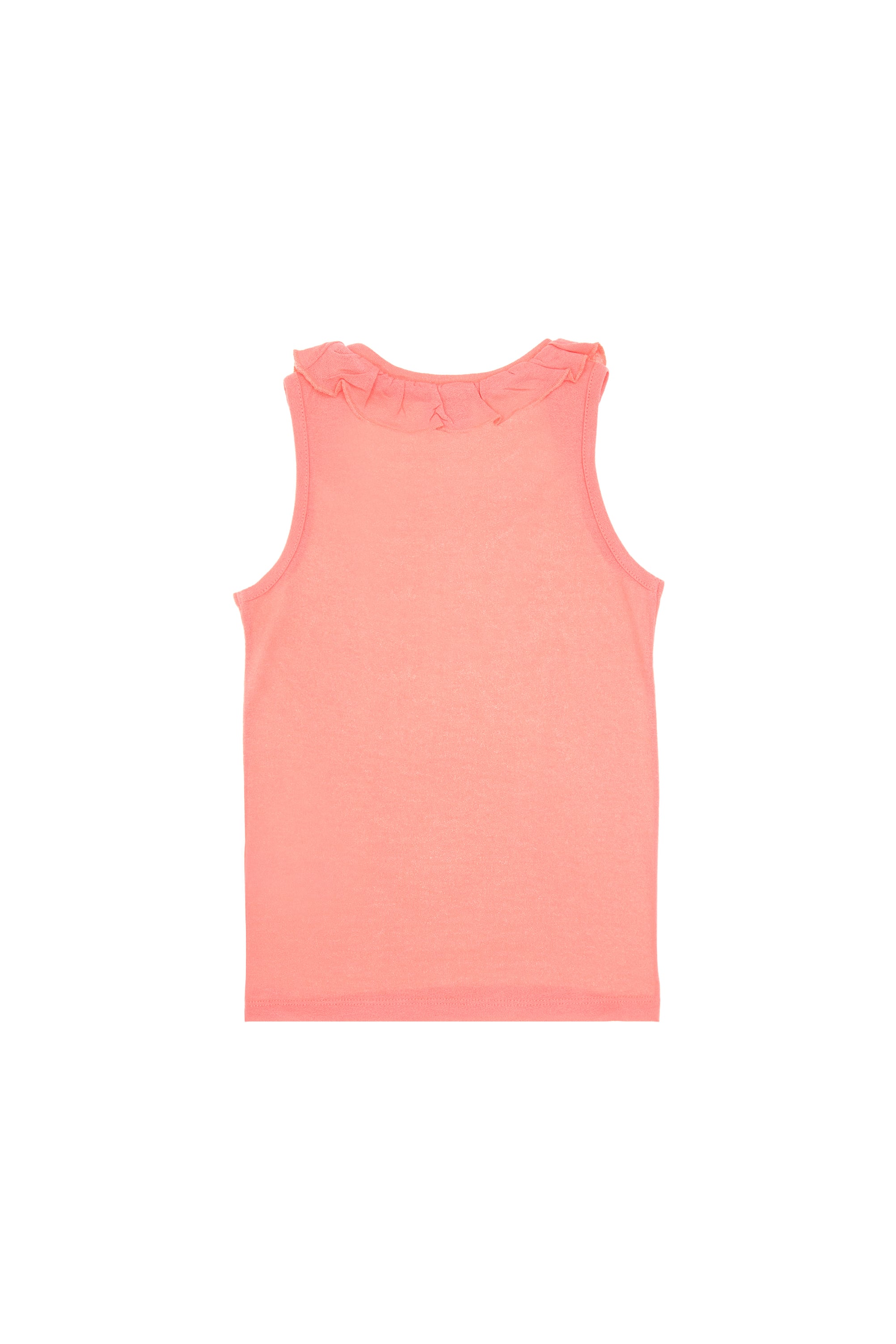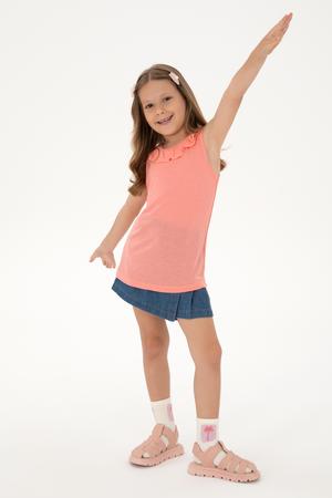 Kız Çocuk Pembe Bisiklet Yaka Fırfır Detaylı Kolsuz Tişört