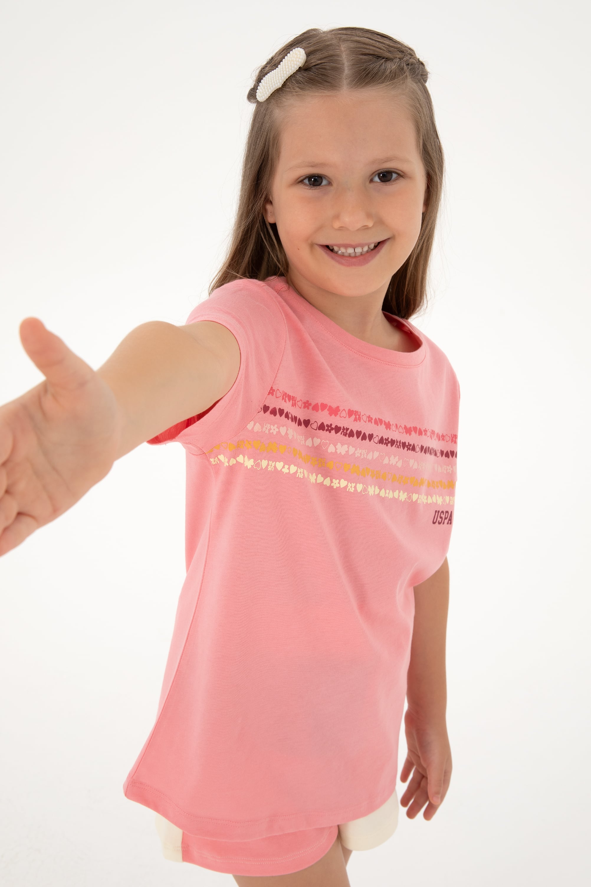 Kız Çocuk Pembe Bisiklet Yaka Pamuk Renkli Baskılı Tişört