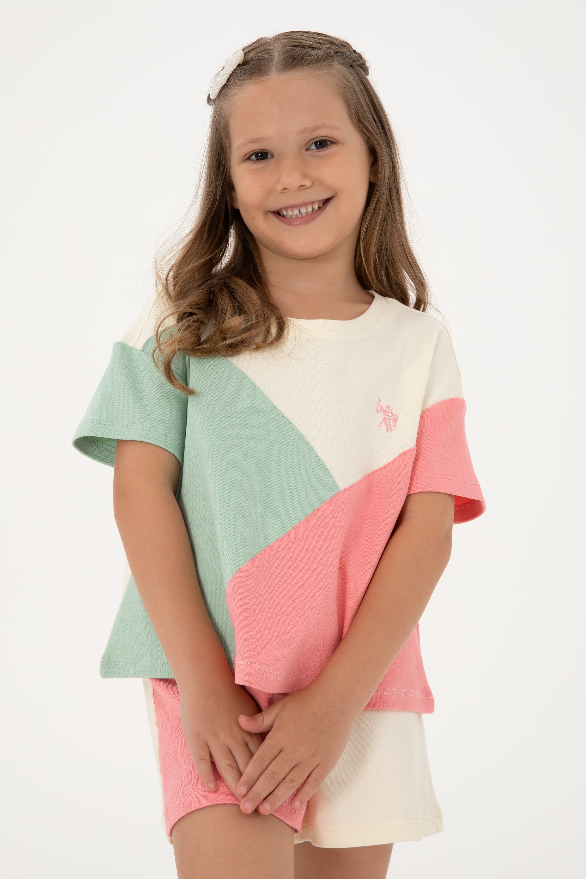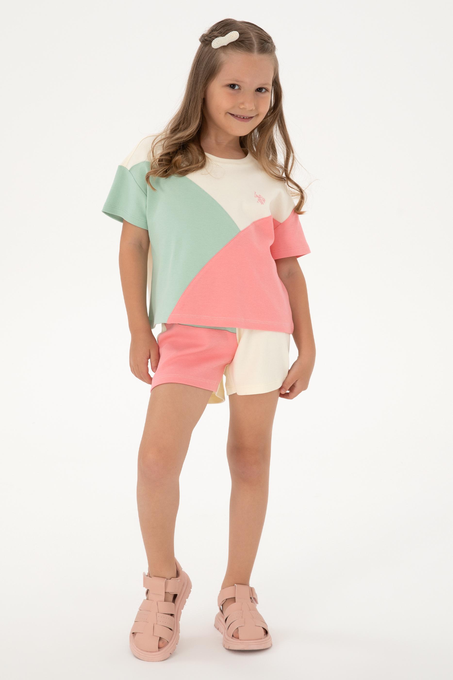 Kız Çocuk Pembe Bisiklet Yaka Crop Pamuk Tişört