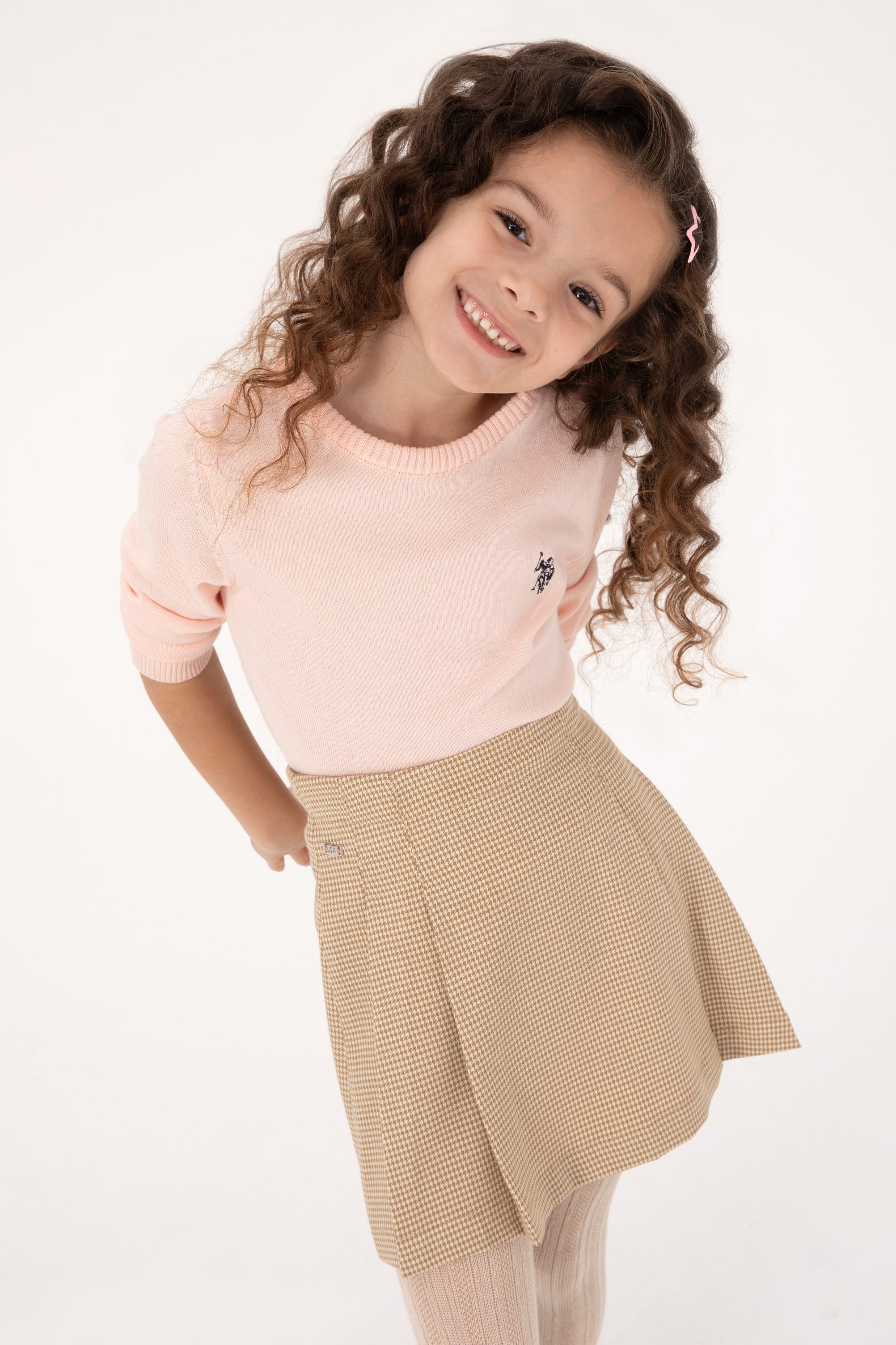 Kız Çocuk Pudra Bisiklet Yaka Basic Kazak