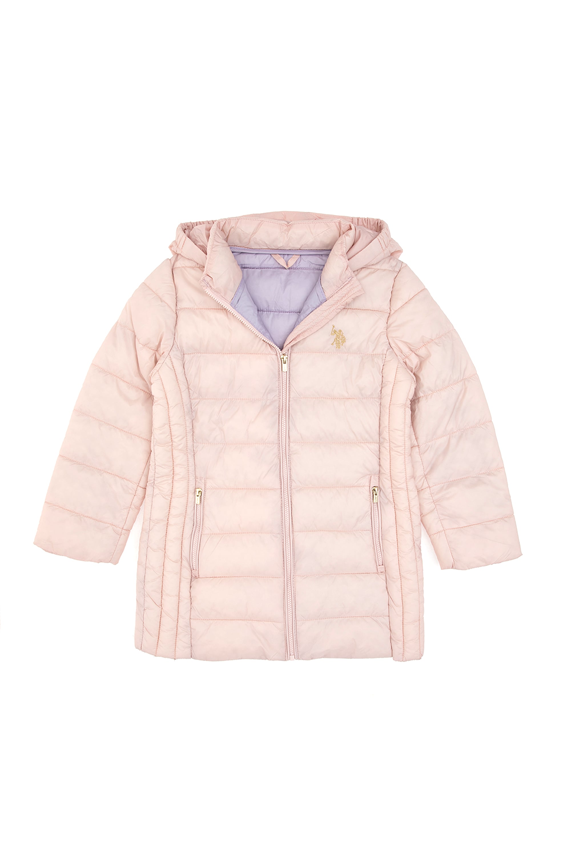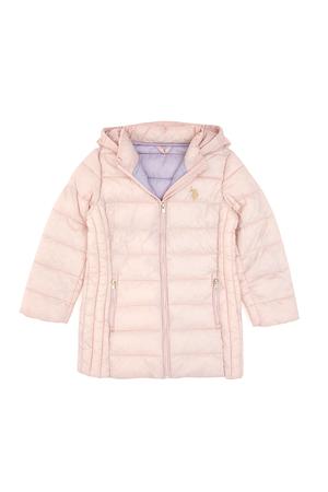 Kız Çocuk Kapüşonlu Pudra Kaban