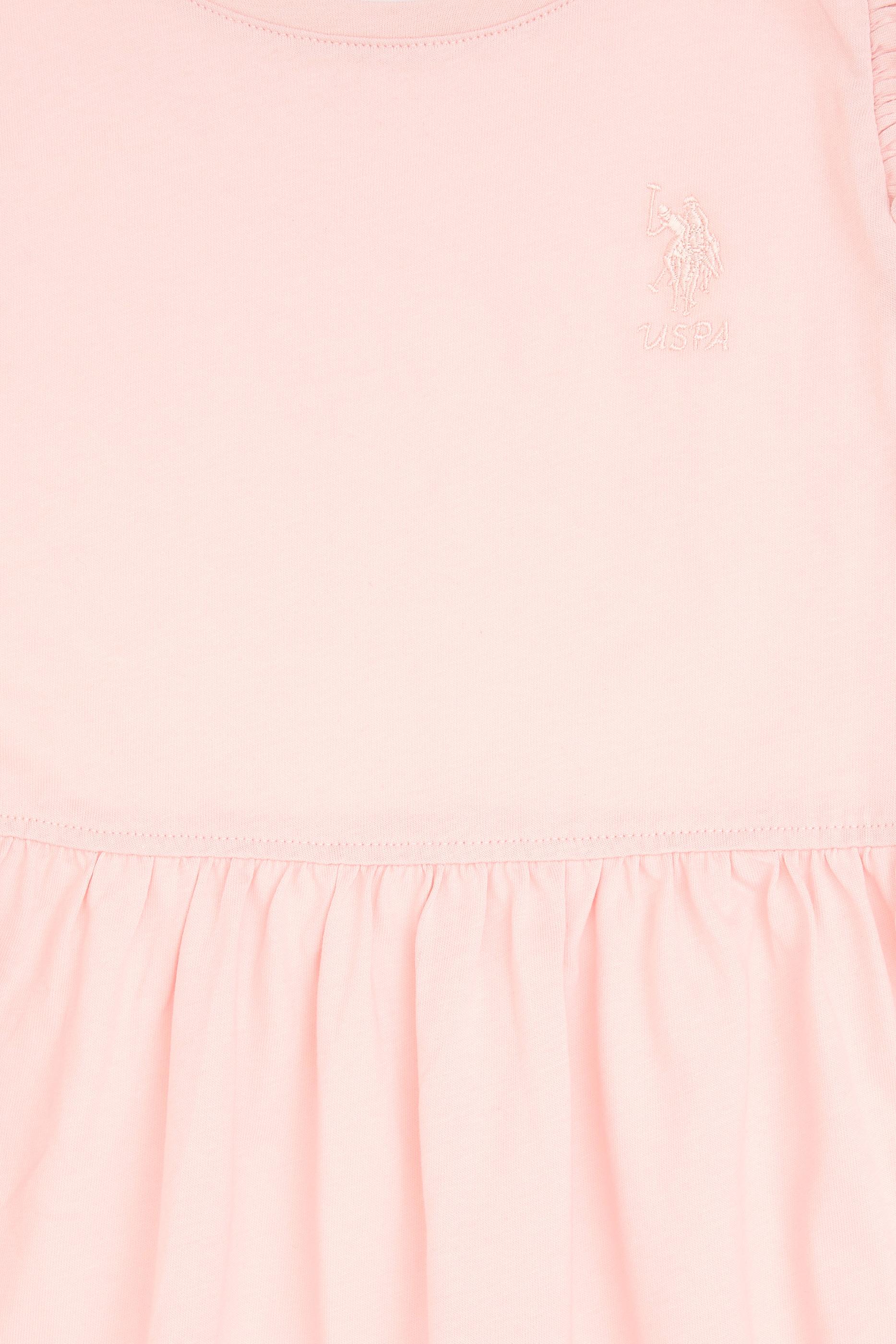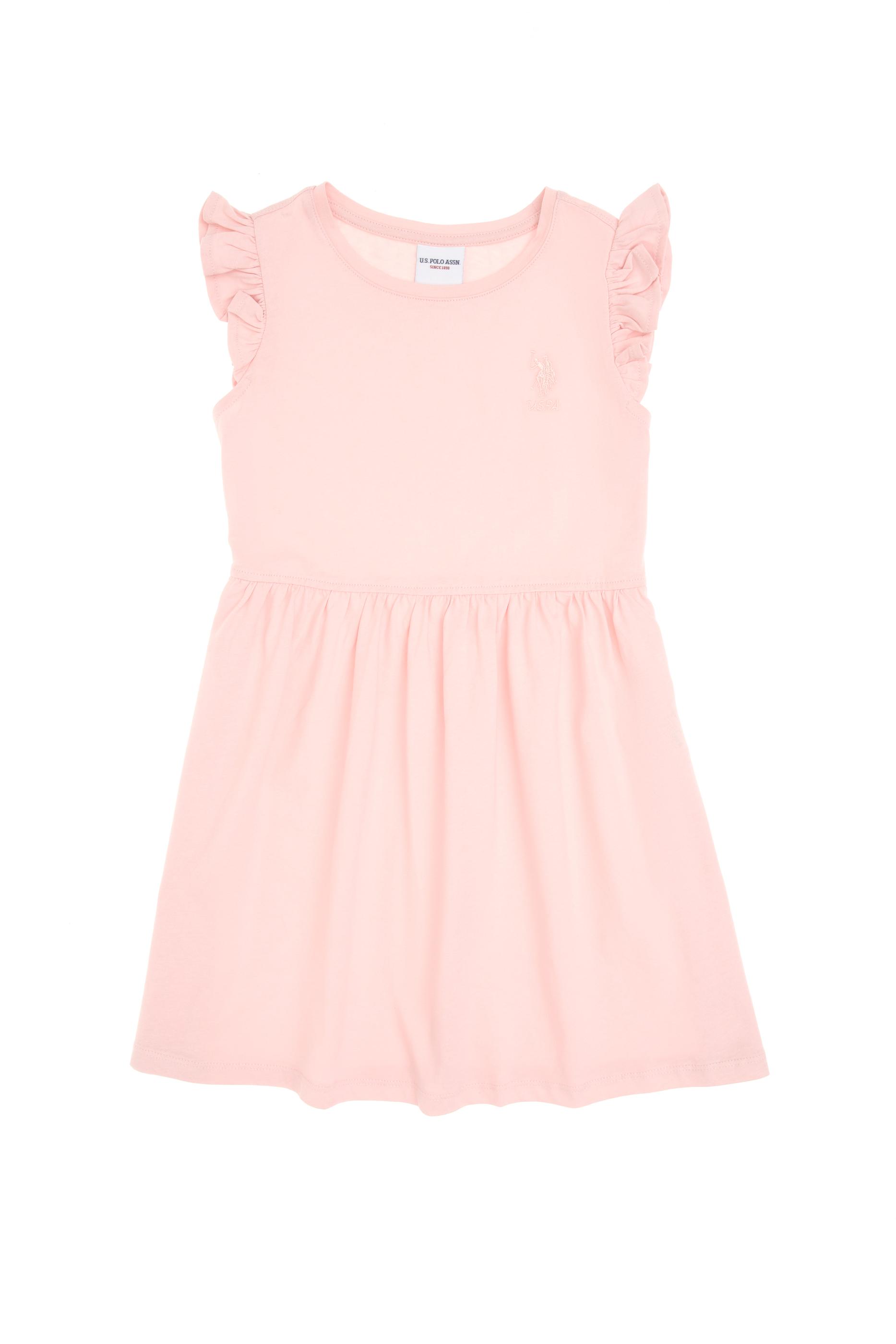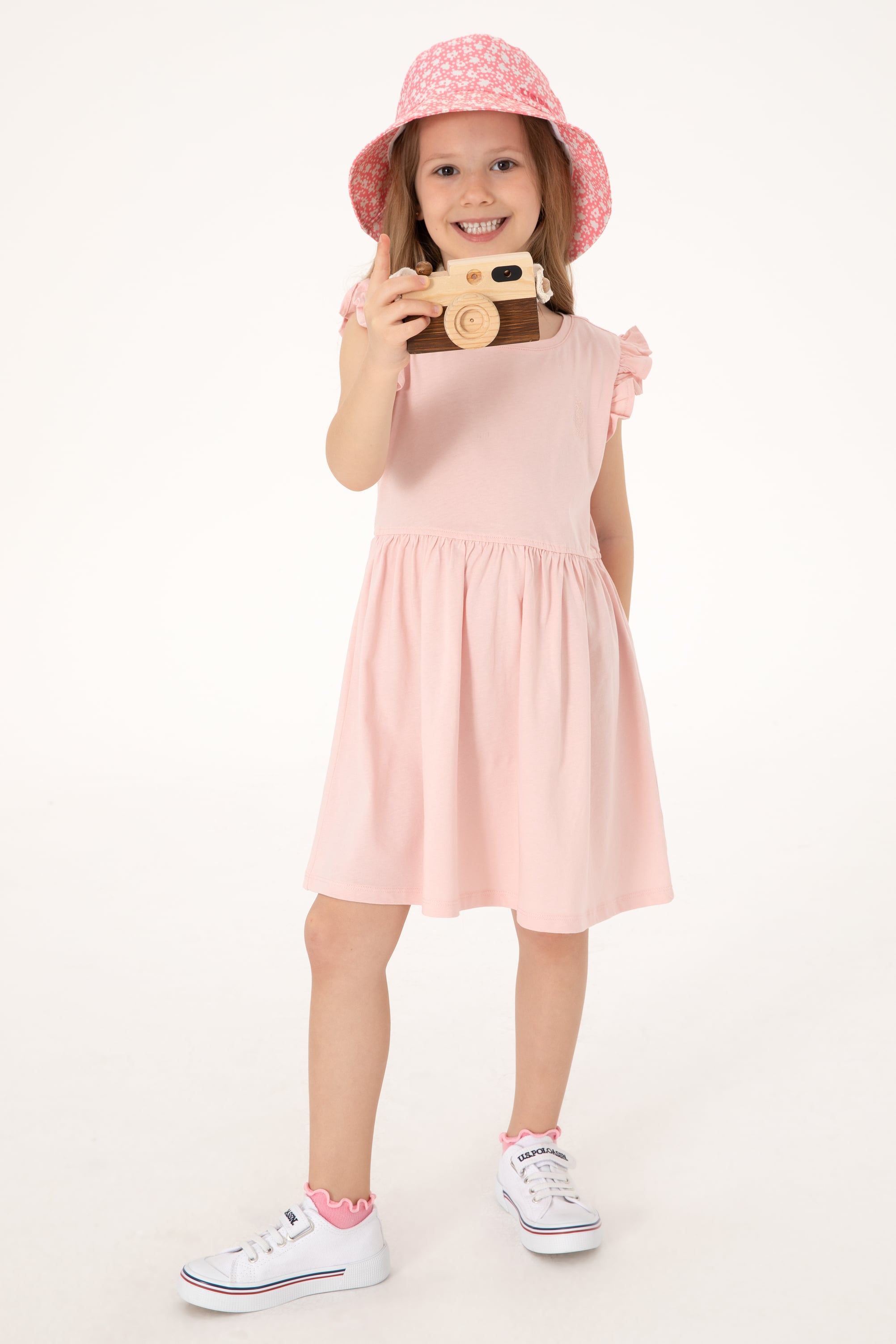 - Kız Çocuk Pudra Fırfır Kollu Bisiklet Yaka Pamuk Örme Elbise
