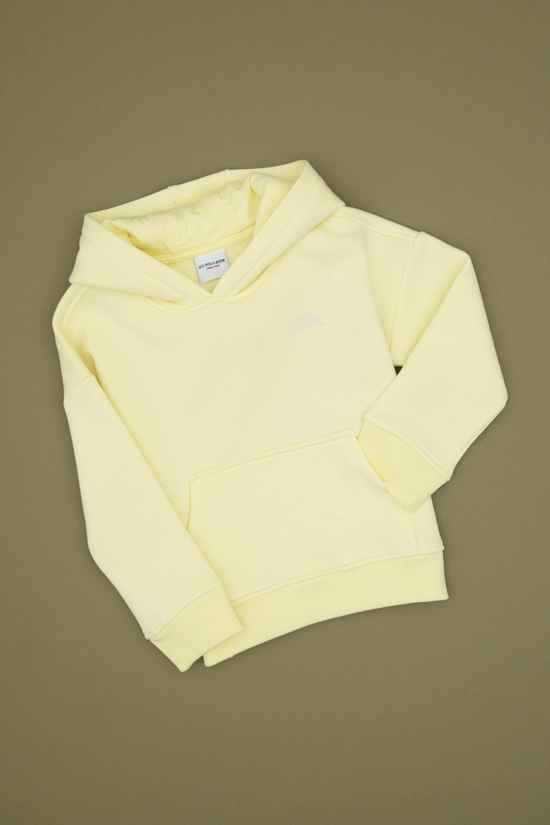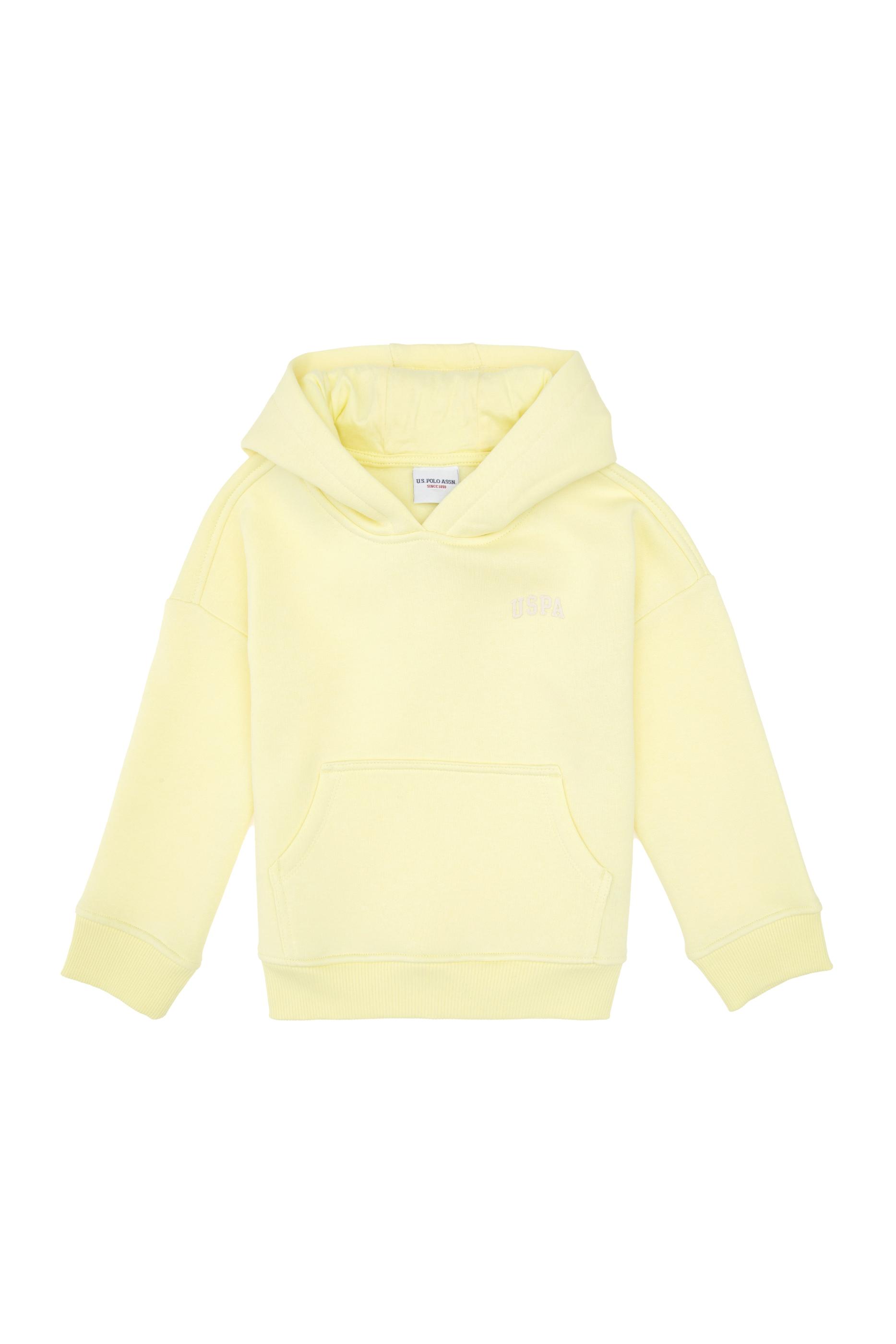 Kız Çocuk Sarı Kapüşonlu Şardonlu Basic Sweatshirt