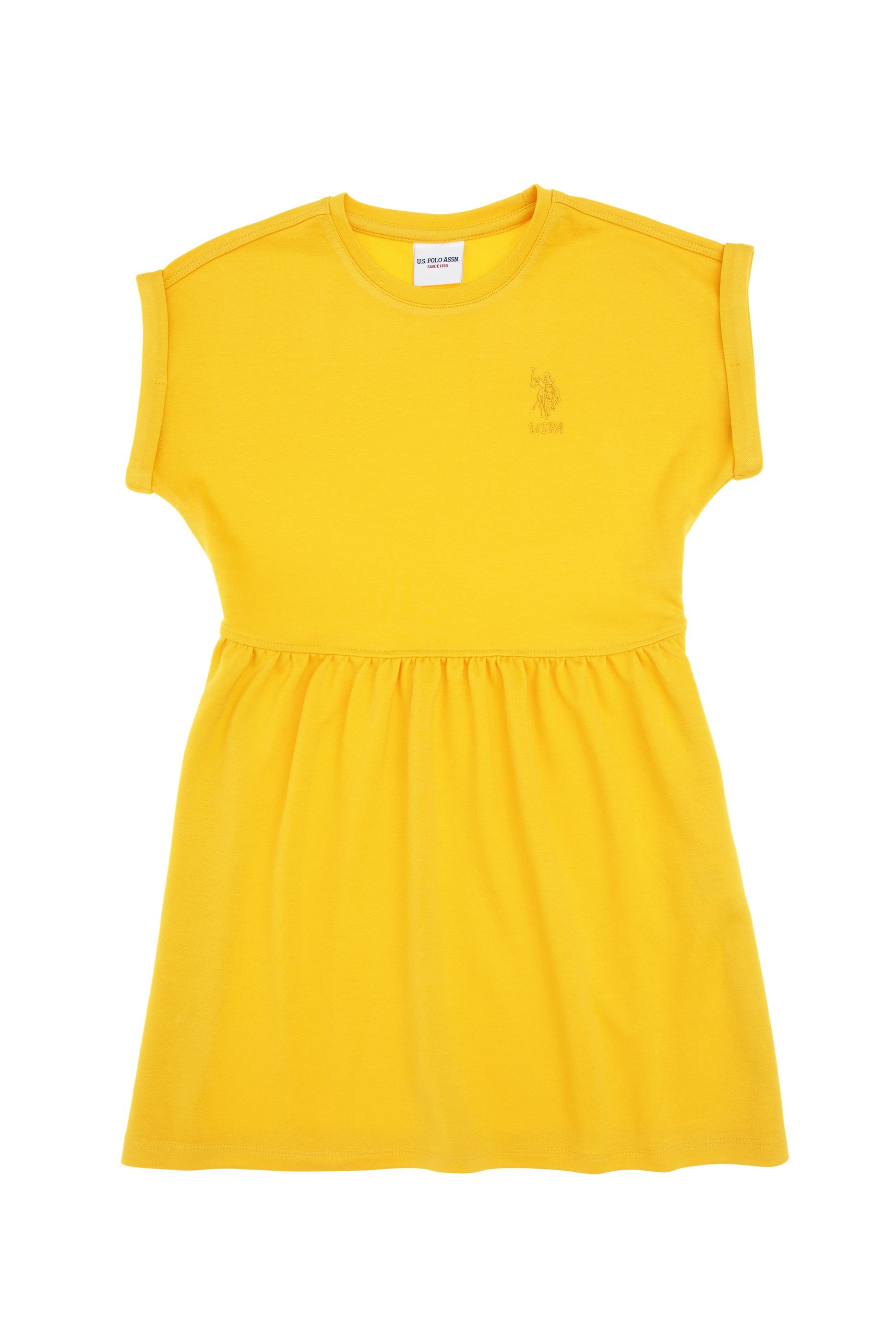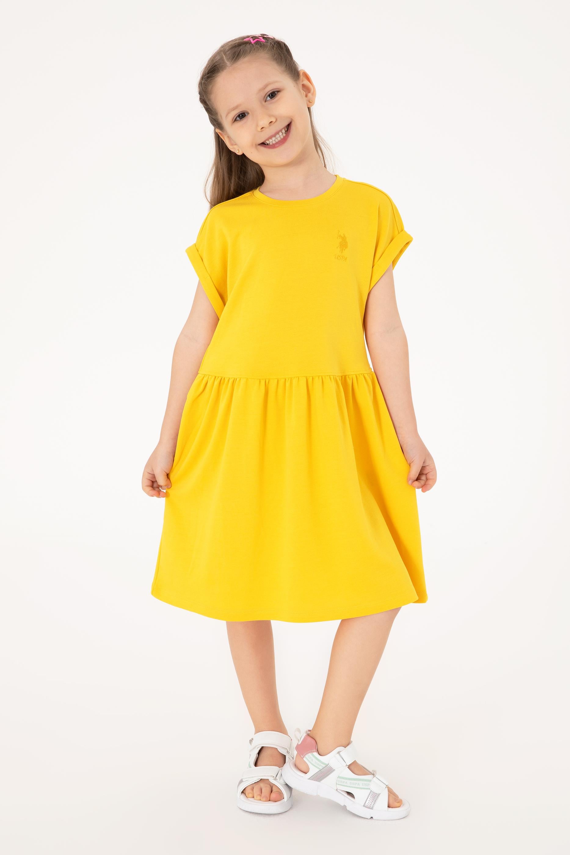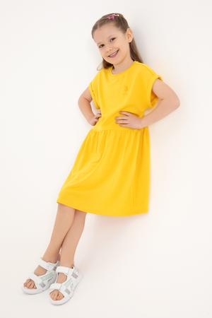 - Kız Çocuk Sarı Bisiklet Yaka A-Form Modal Örme Elbise