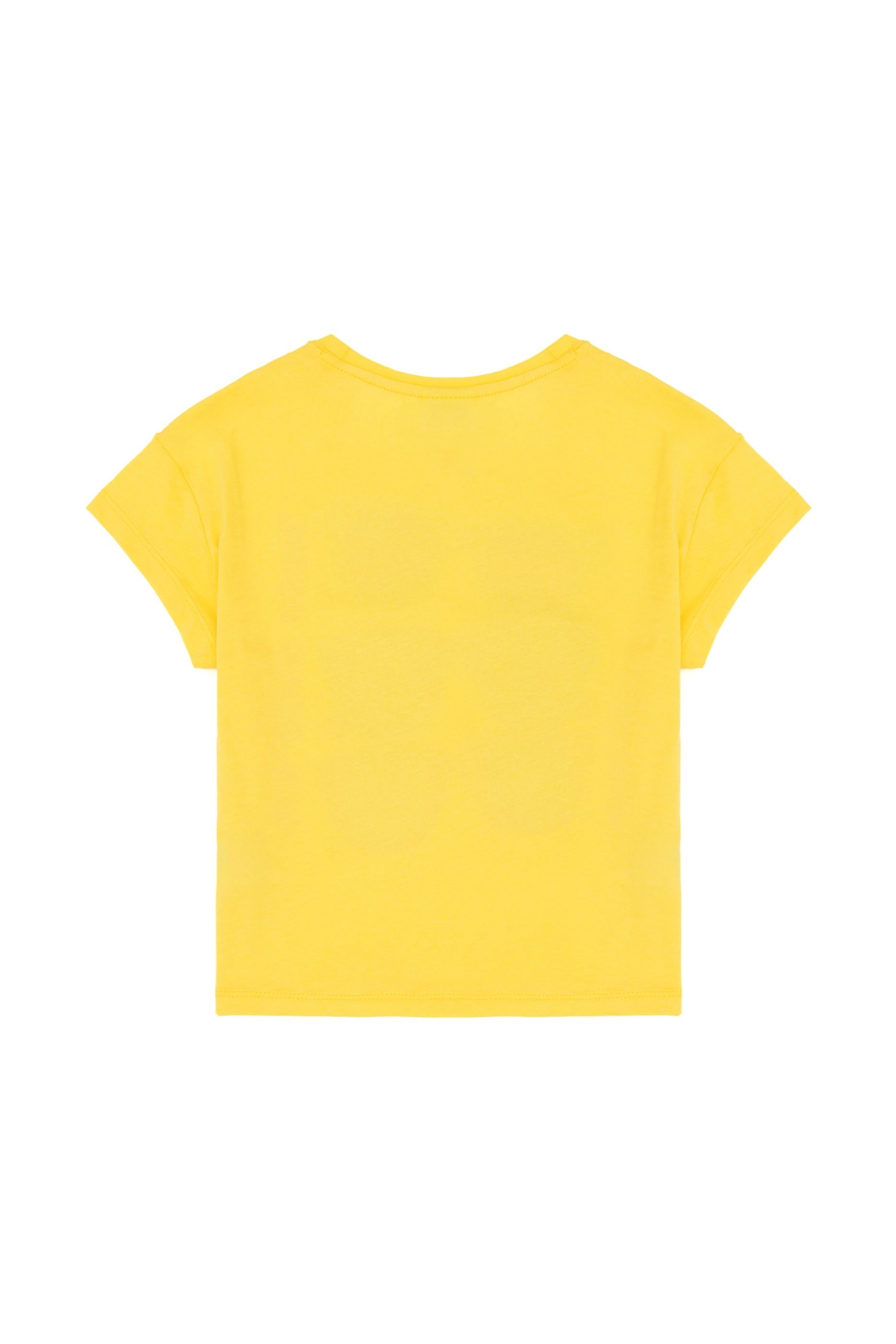 Kaliteli kumaşı, sık yıkamalara karşı dayanıklıdır ve baskıları solmaz, uzun süre ilk günkü görünümünü korur. Sarı rengin verdiği pozitif enerji, her kombinle uyum sağlar ve çocukların gardırobunun en gözde parçalarından biri olur. Şortlar, etekler veya taytlarla kolayca kombinlenebilen tişört, her yaştan çocuğa hitap eder.