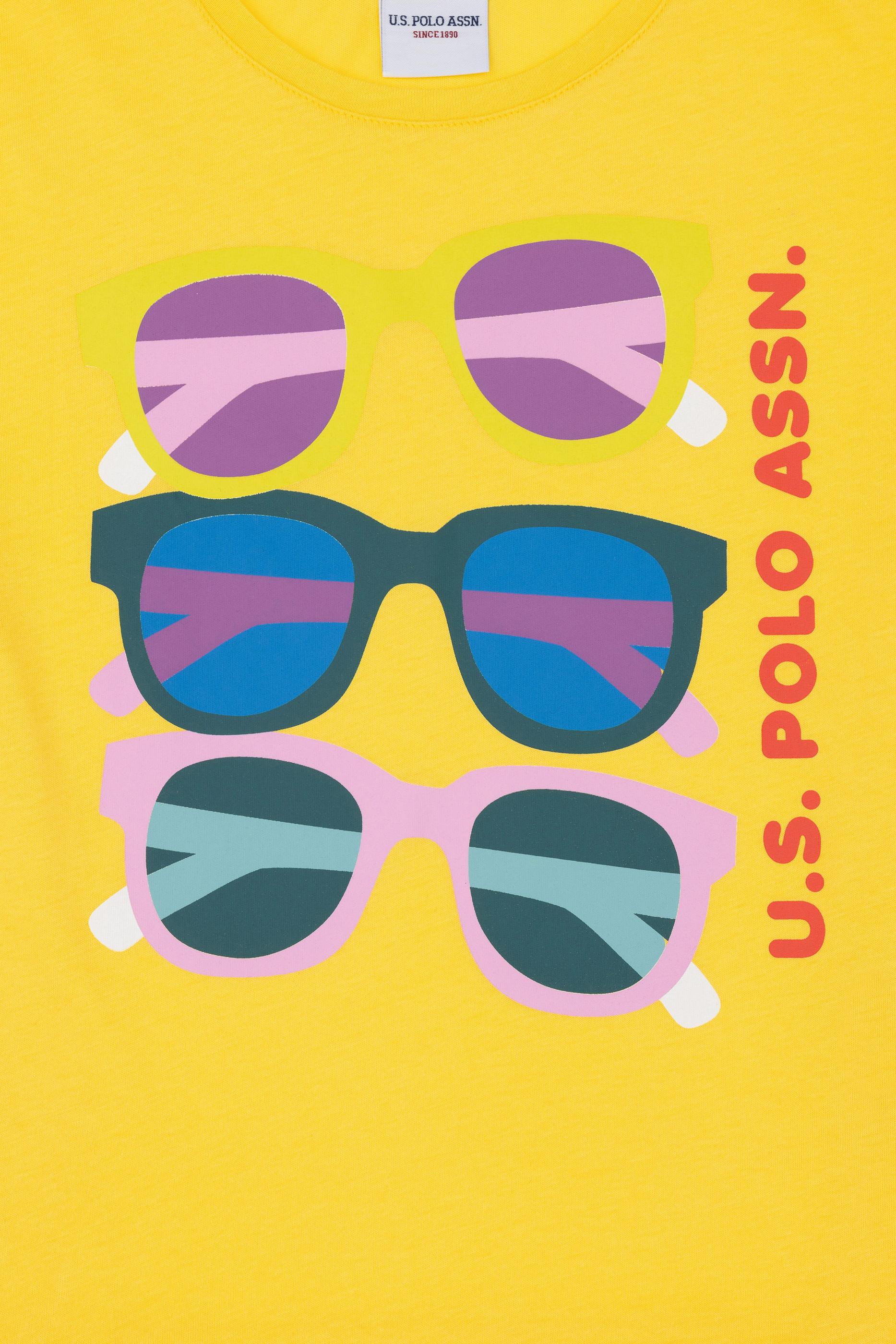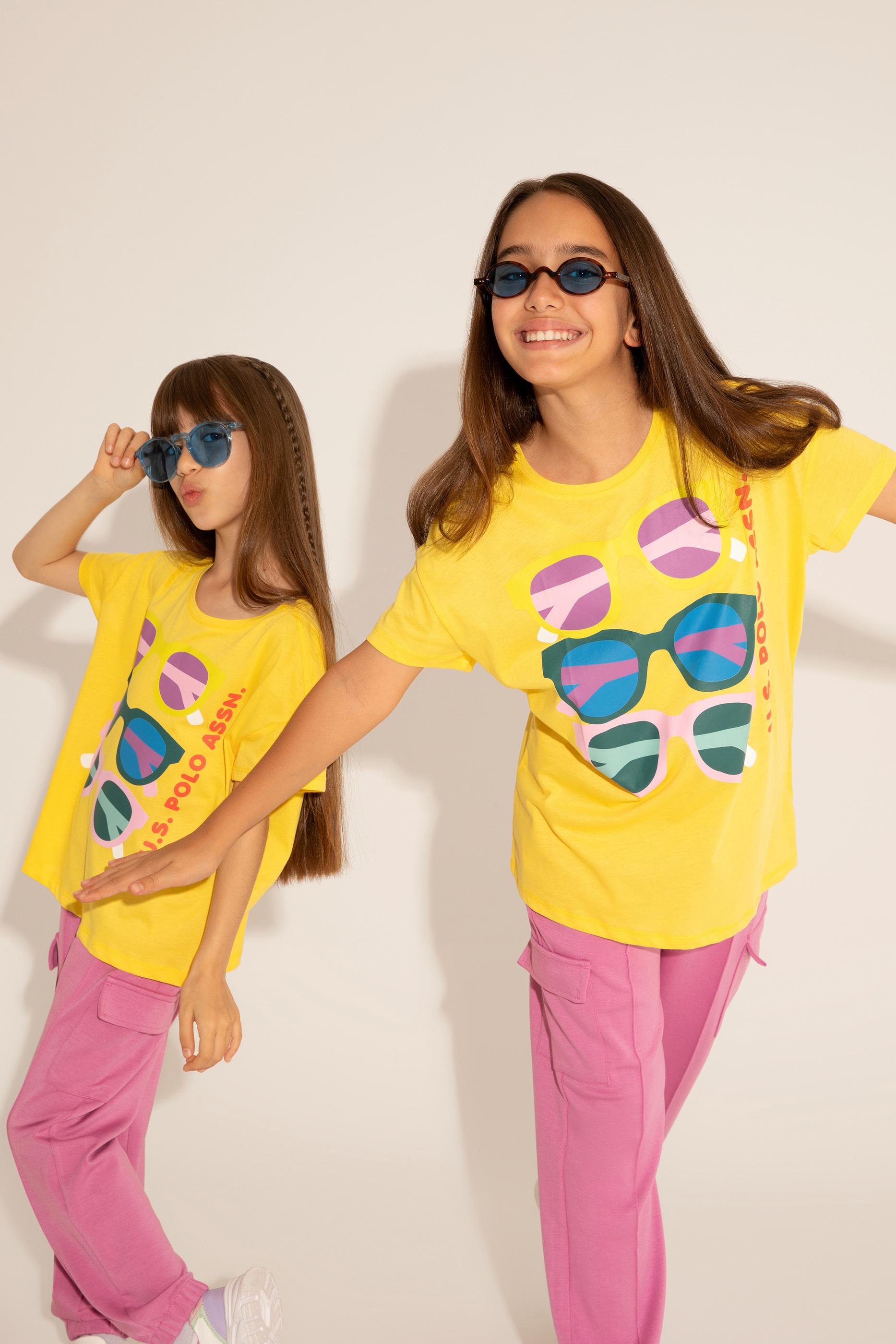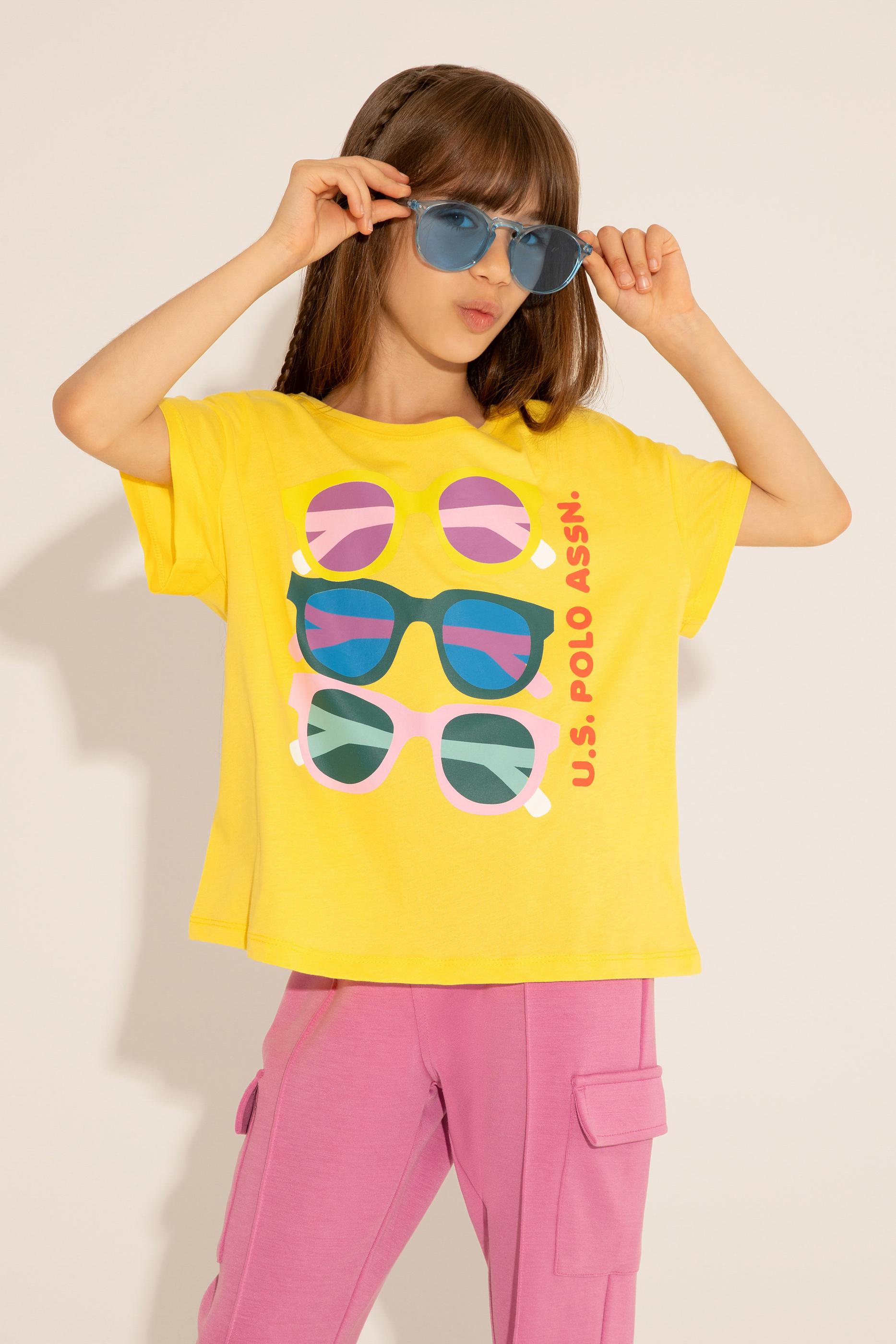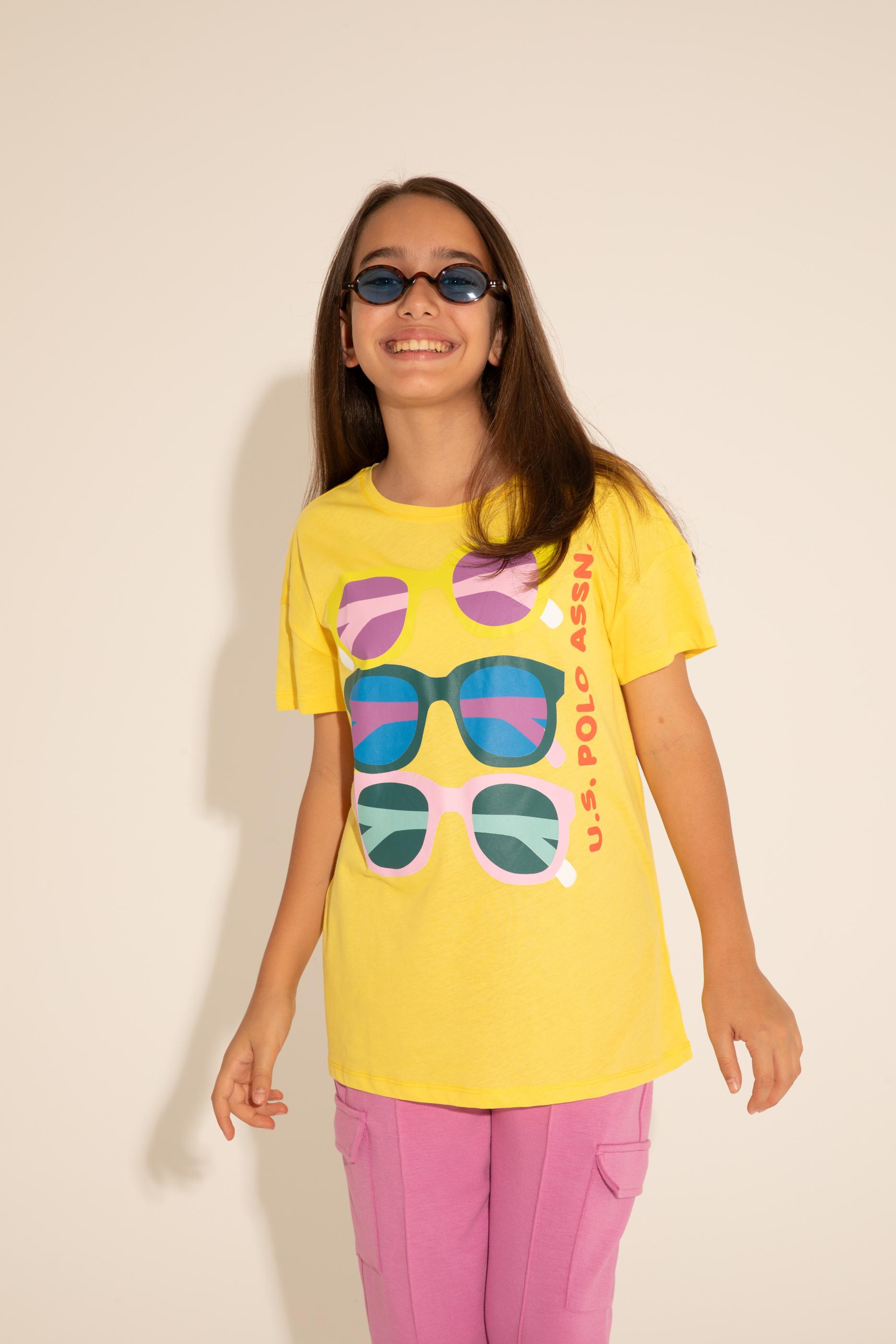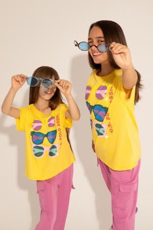 Ön kısmında yer alan renkli gözlük baskıları, tişörte dinamik ve neşeli bir hava katıyor. İnce detaylar, çocukların stiline eğlence katarken her ortamda dikkat çekici bir görünüm sunuyor. Sarının enerjisiyle buluşan baskılar, tişörtü sıradanlıktan çıkararak yaz aylarının vazgeçilmezi haline getiriyor. Tişört, parkta oyun oynarken, sahilde vakit geçirirken ya da günlük aktivitelerde ideal bir seçim olacaktır.