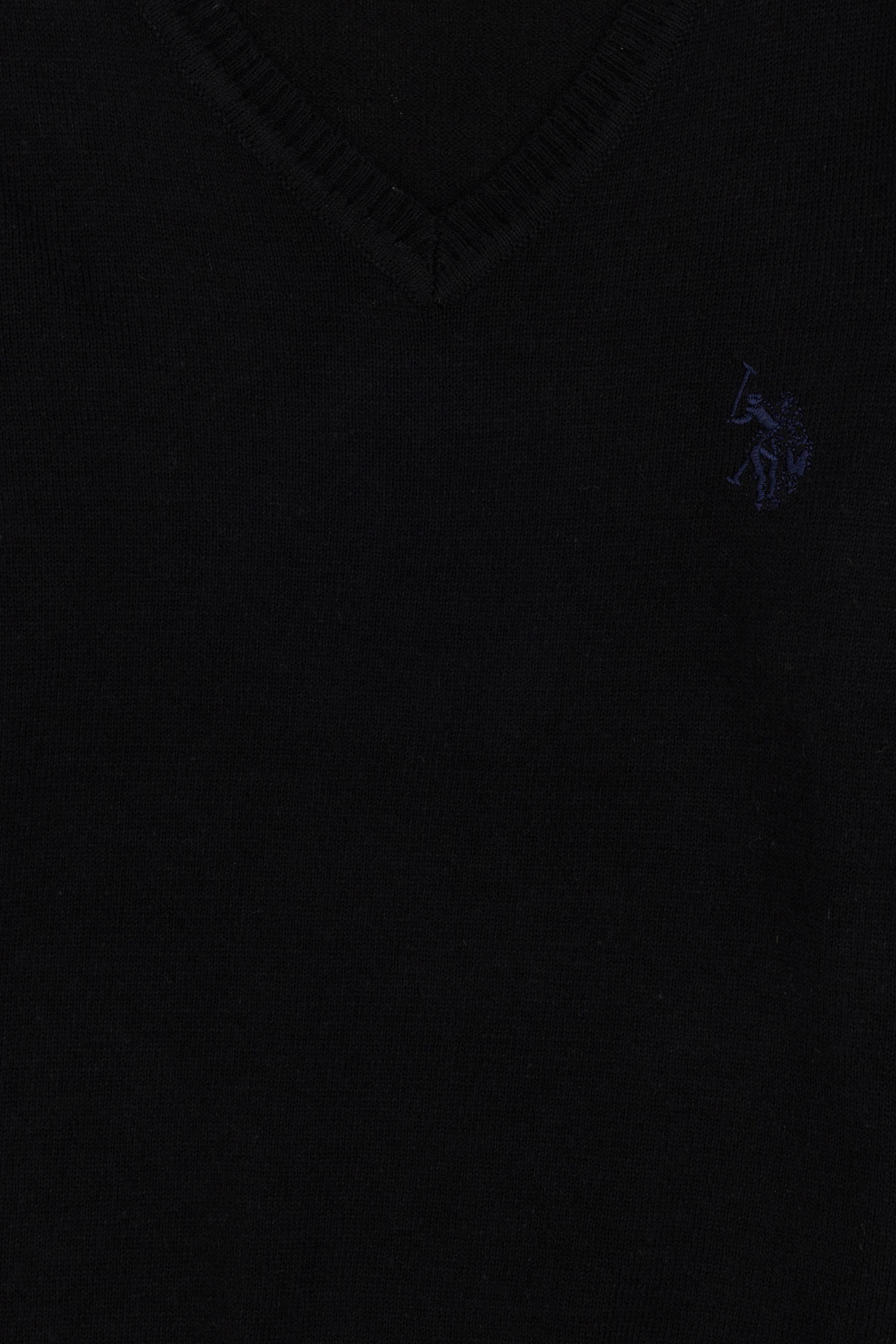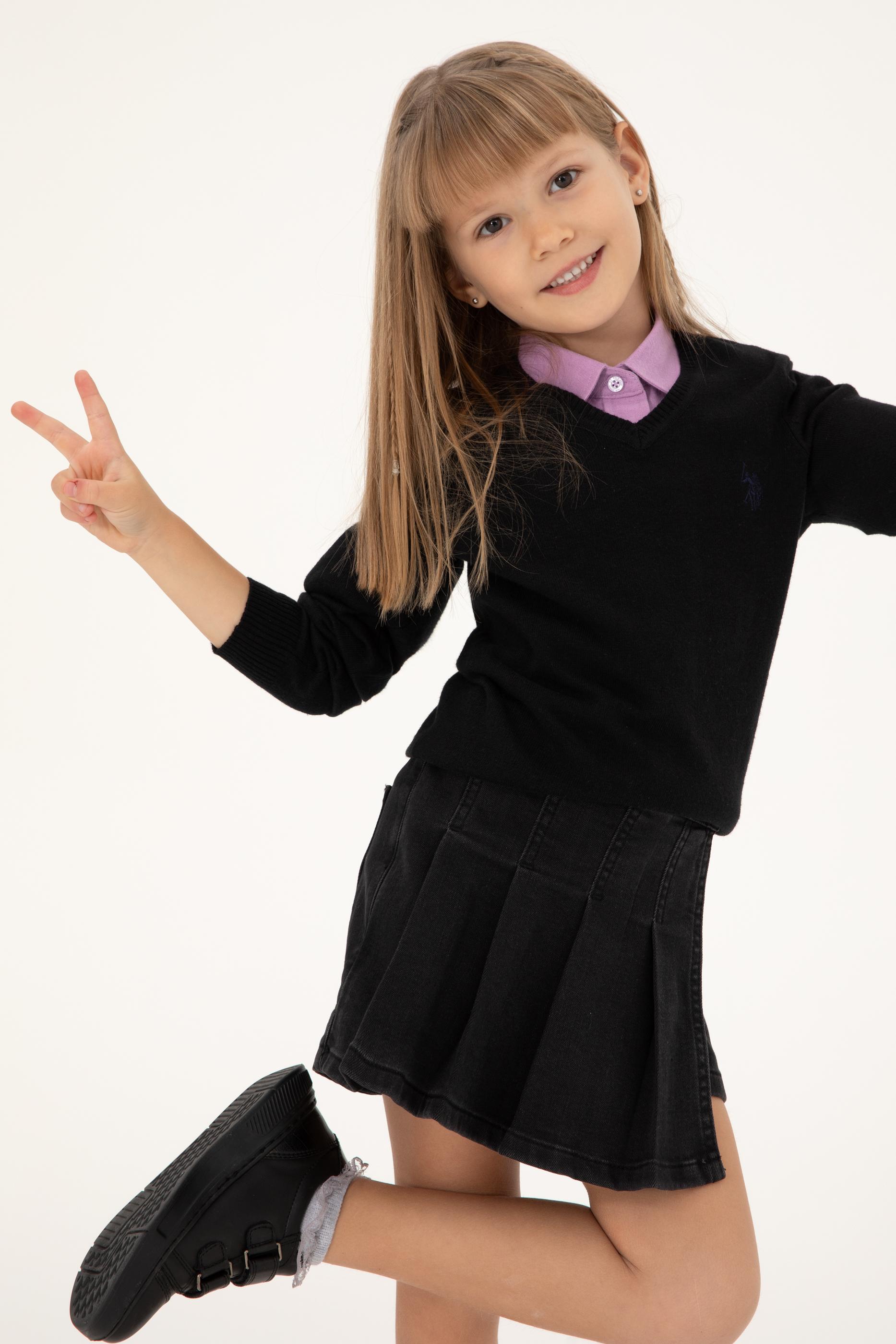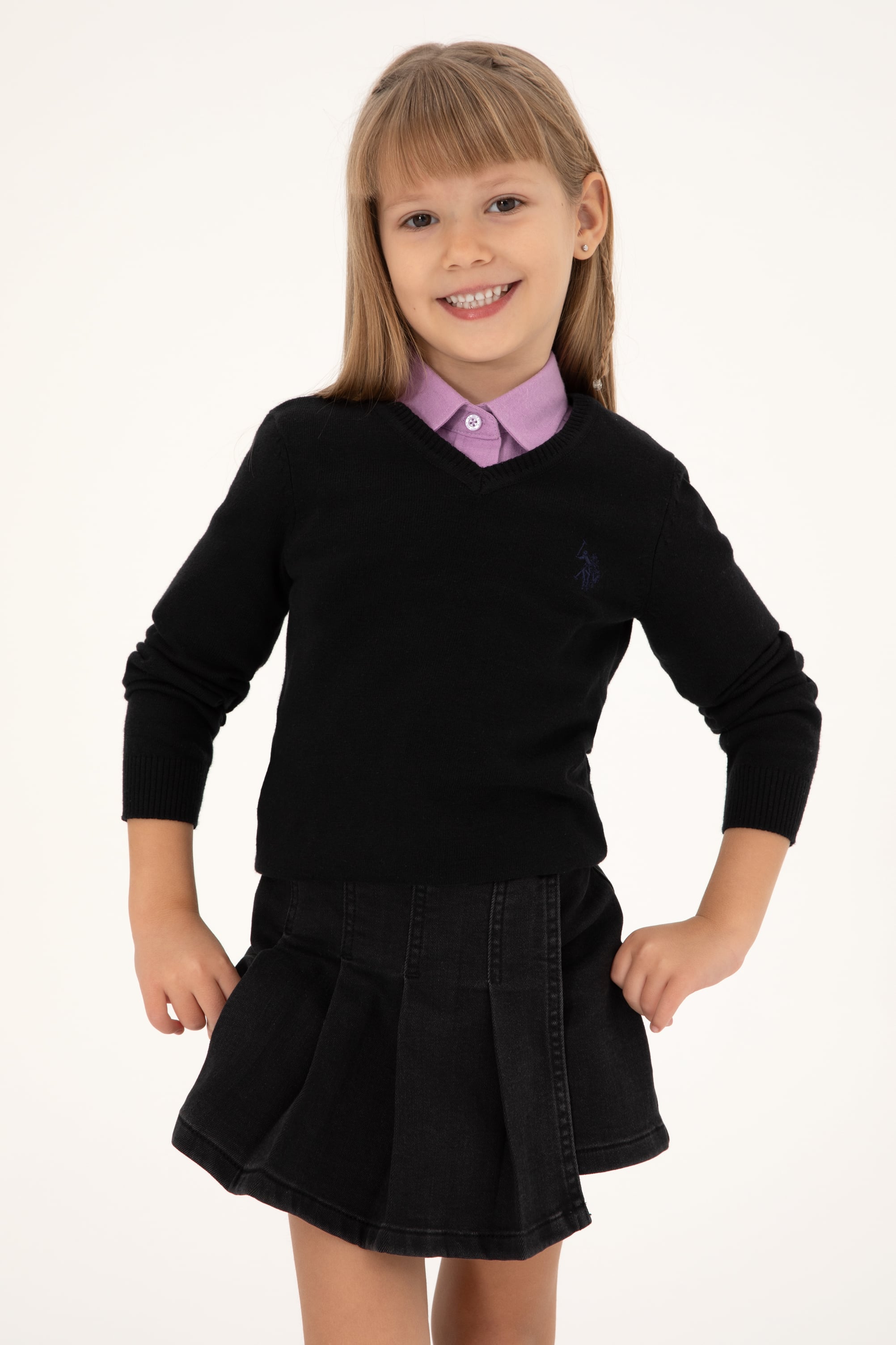 Kız Çocuk Siyah V Yaka Basic Kazak