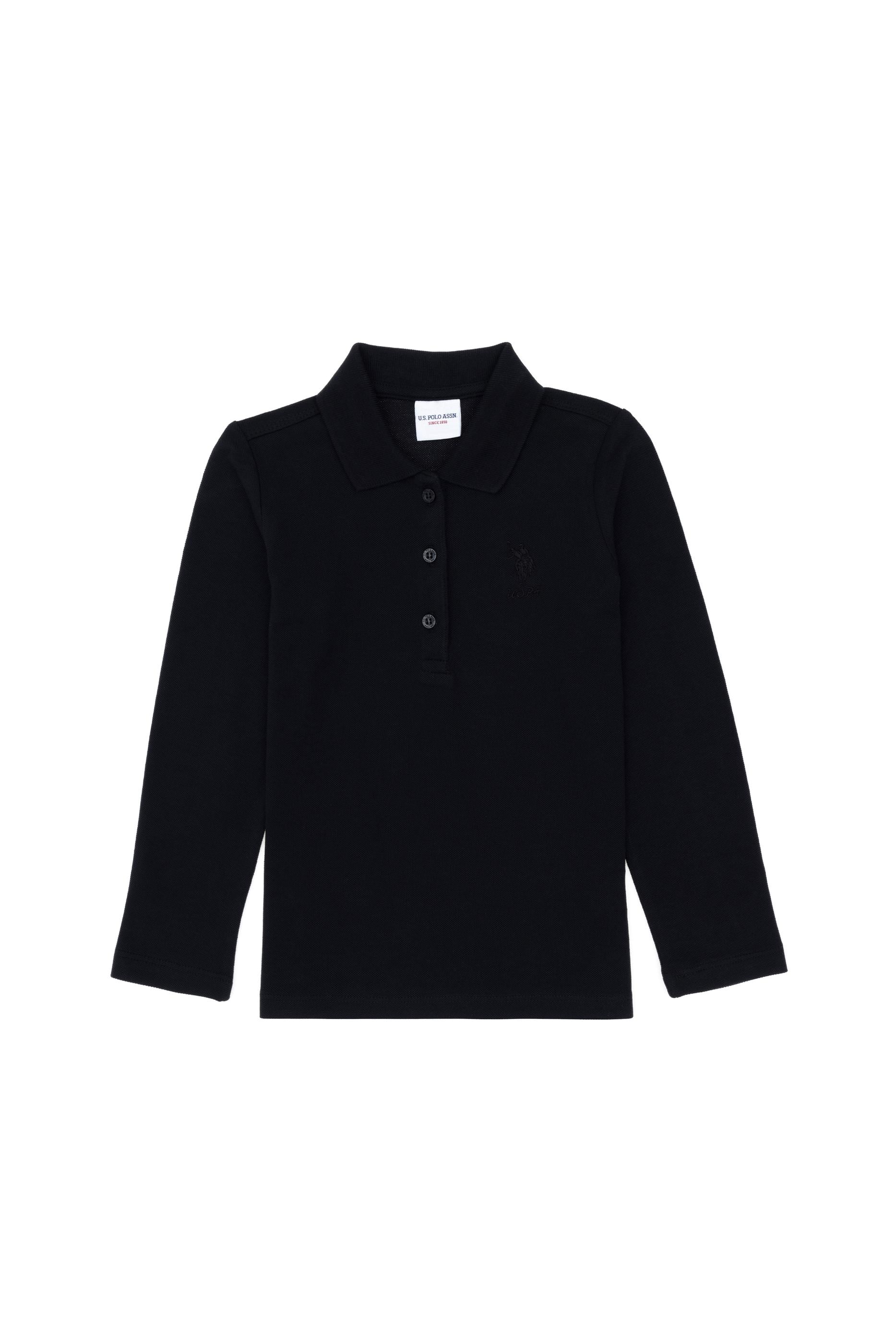 Kız Çocuk Siyah Polo Yaka Basic Sweatshirt