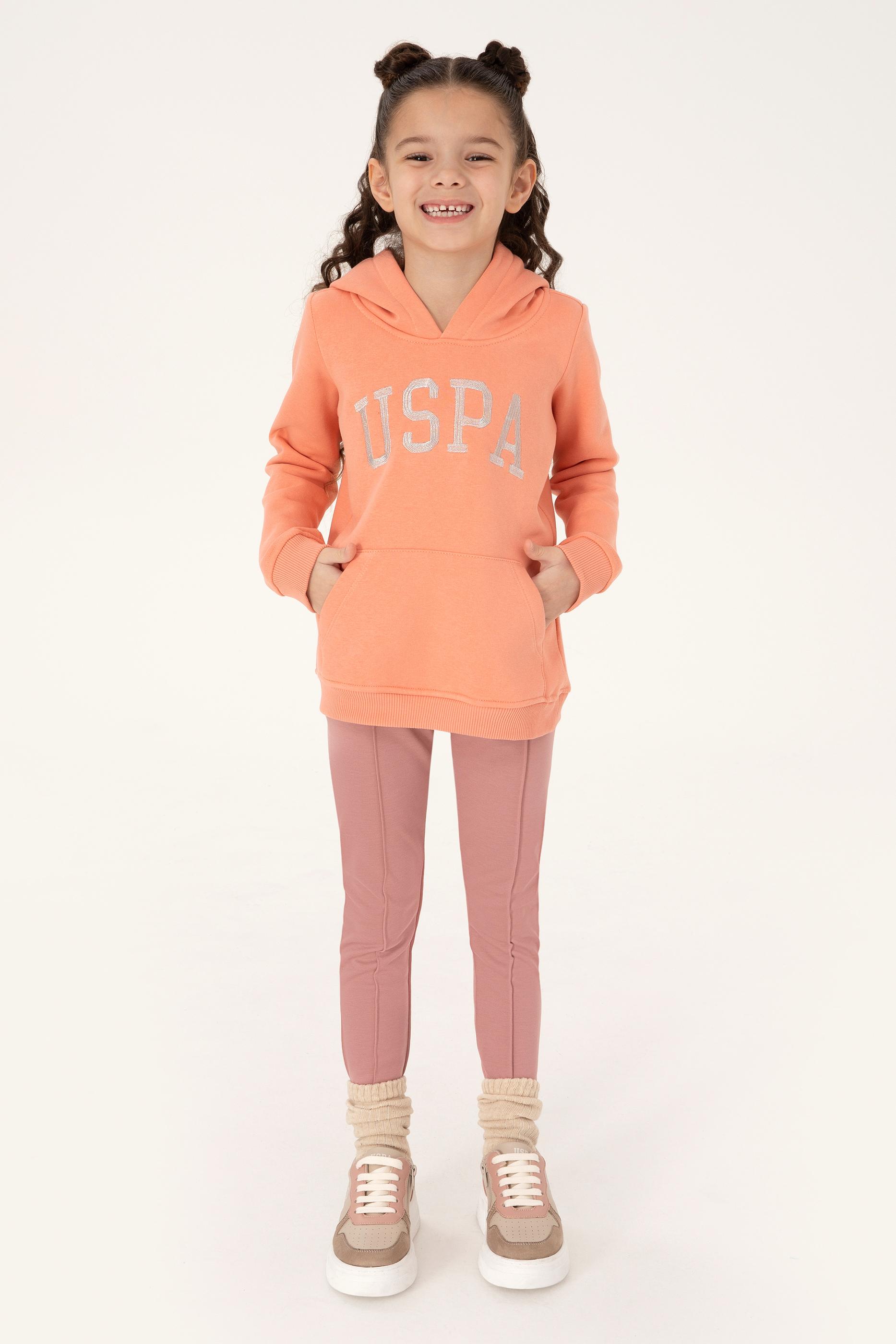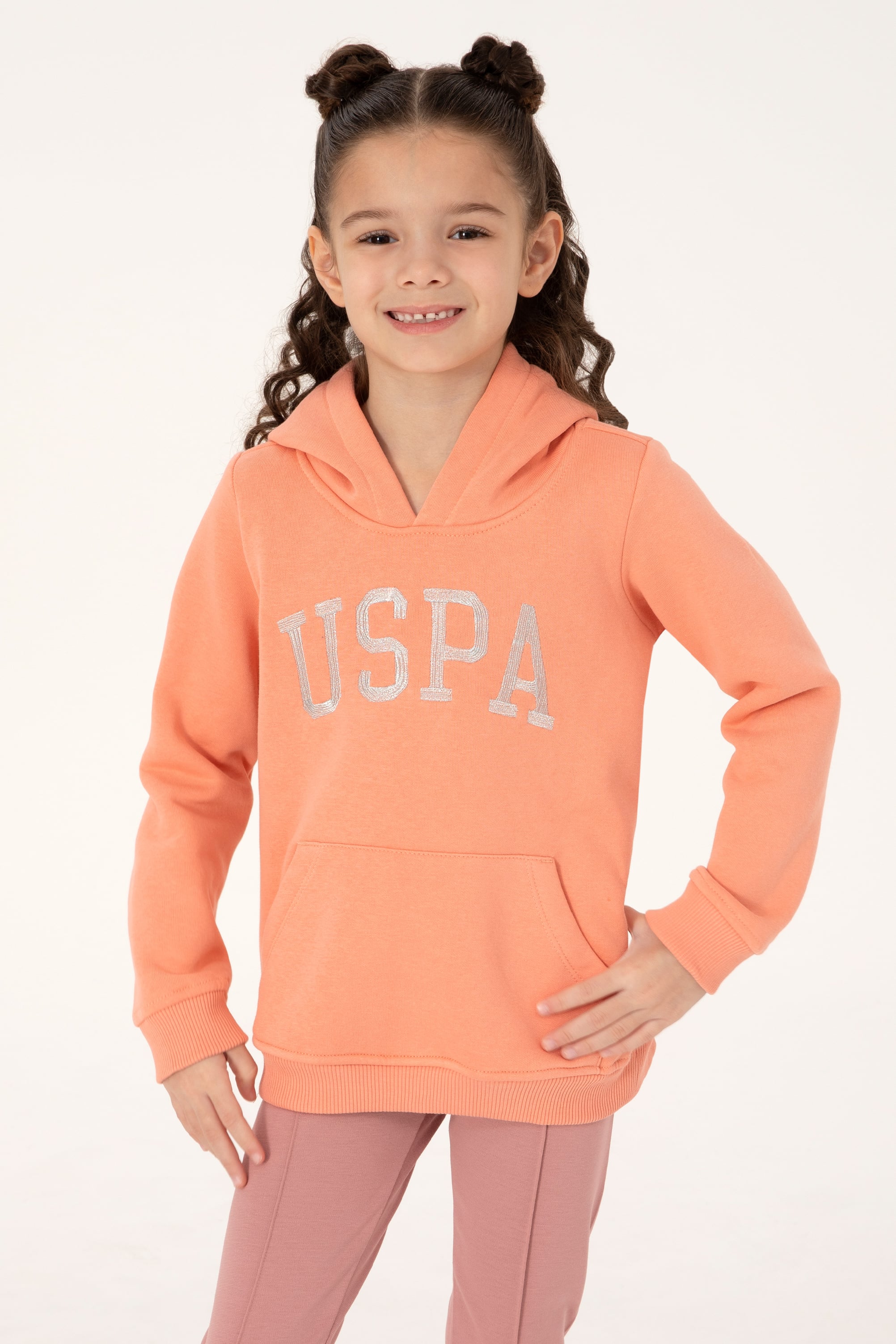 Kız Çocuk Somon Kapüşonlu Basic Sweatshirt