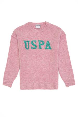Çok karışımlı kumaşa sahip (akrilik, viskoz, polibütilen) kız çocuk triko kazak modelimiz spor bir görünüm sunan bisiklet yaka detayıyla
