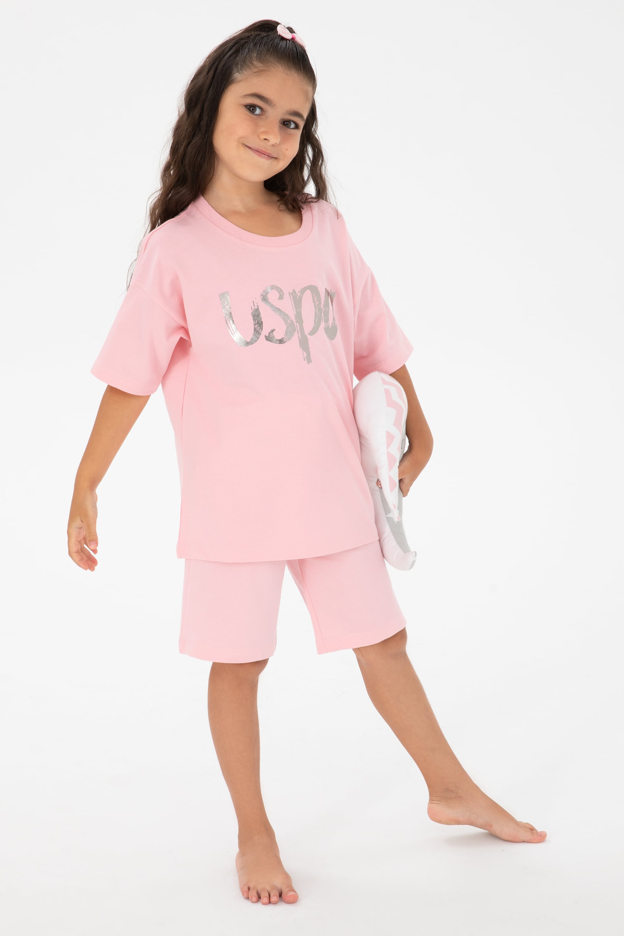 Kız Çocuk Somon Şortlu Alt Üst Takım