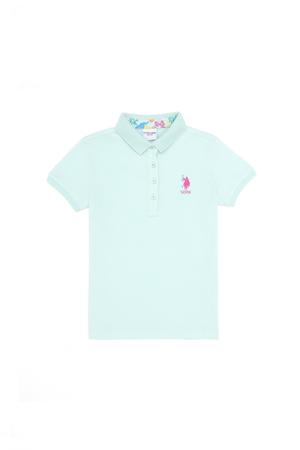 Kız Çocuk Su Yeşili Polo Yaka Basic Tişört