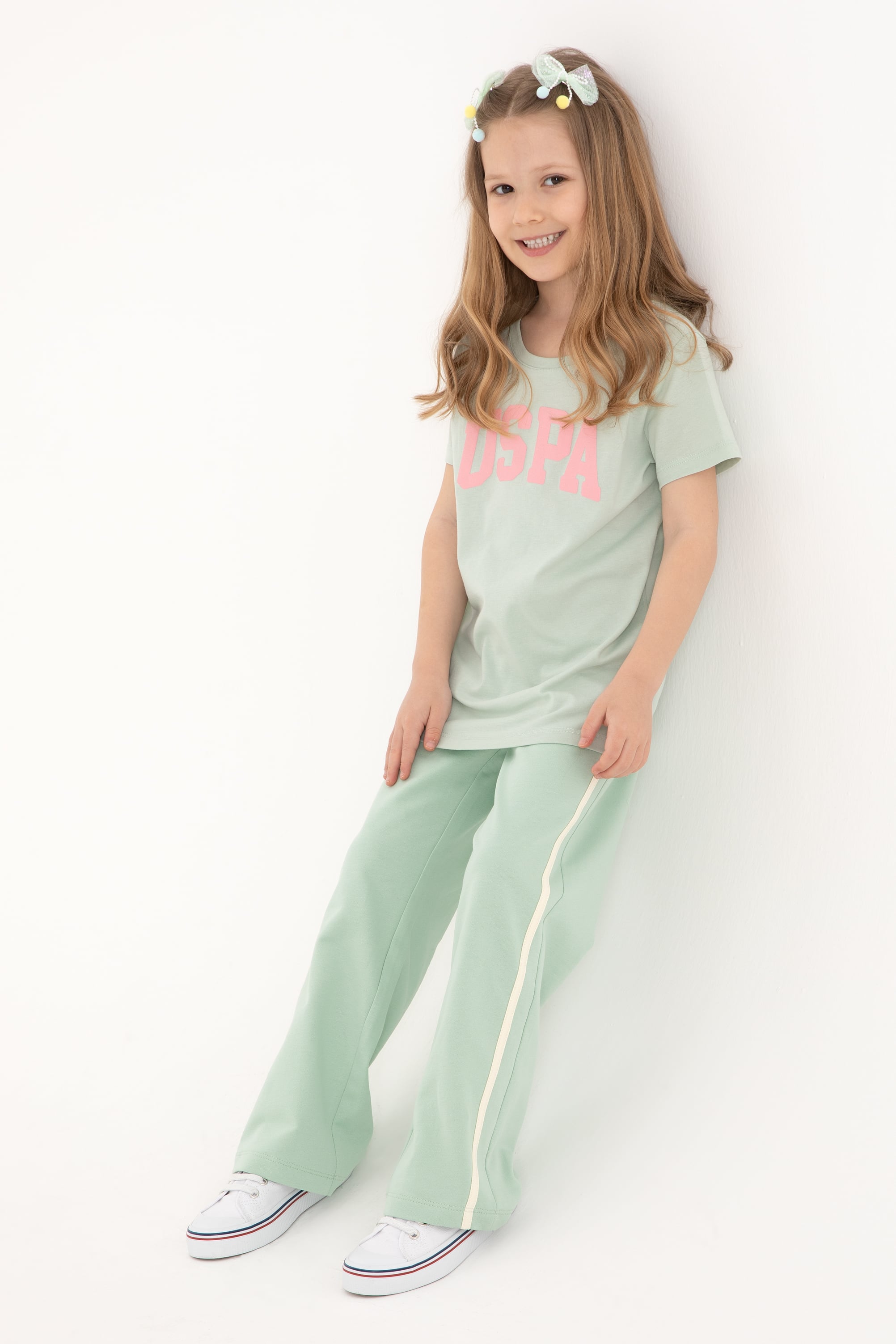 - Kız Çocuk Su Yeşili Loose Fit Kenar Biyeli Eşofman Altı