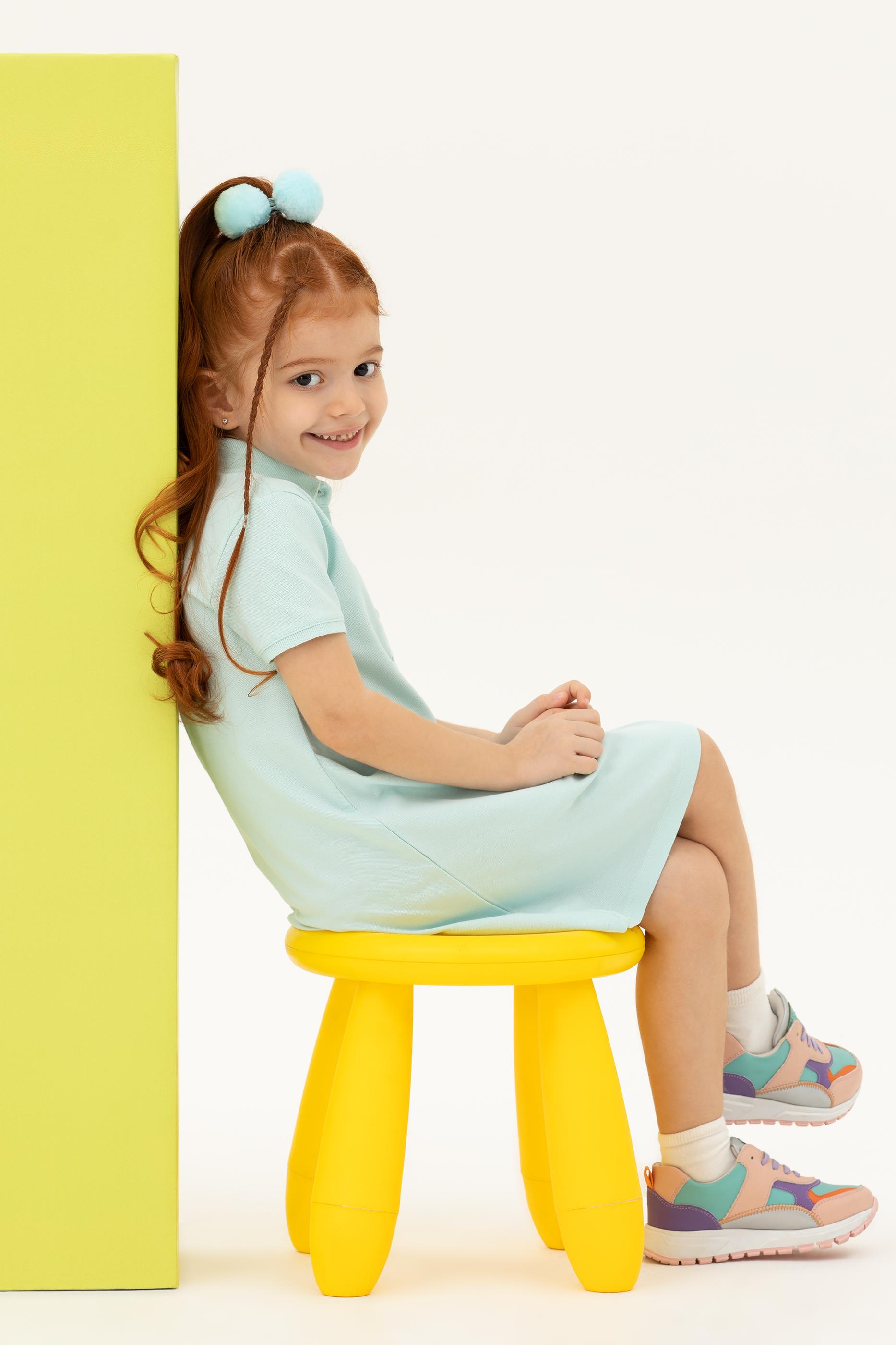 - Kız Çocuk Su Yeşili Kısa Kol Örme Elbise