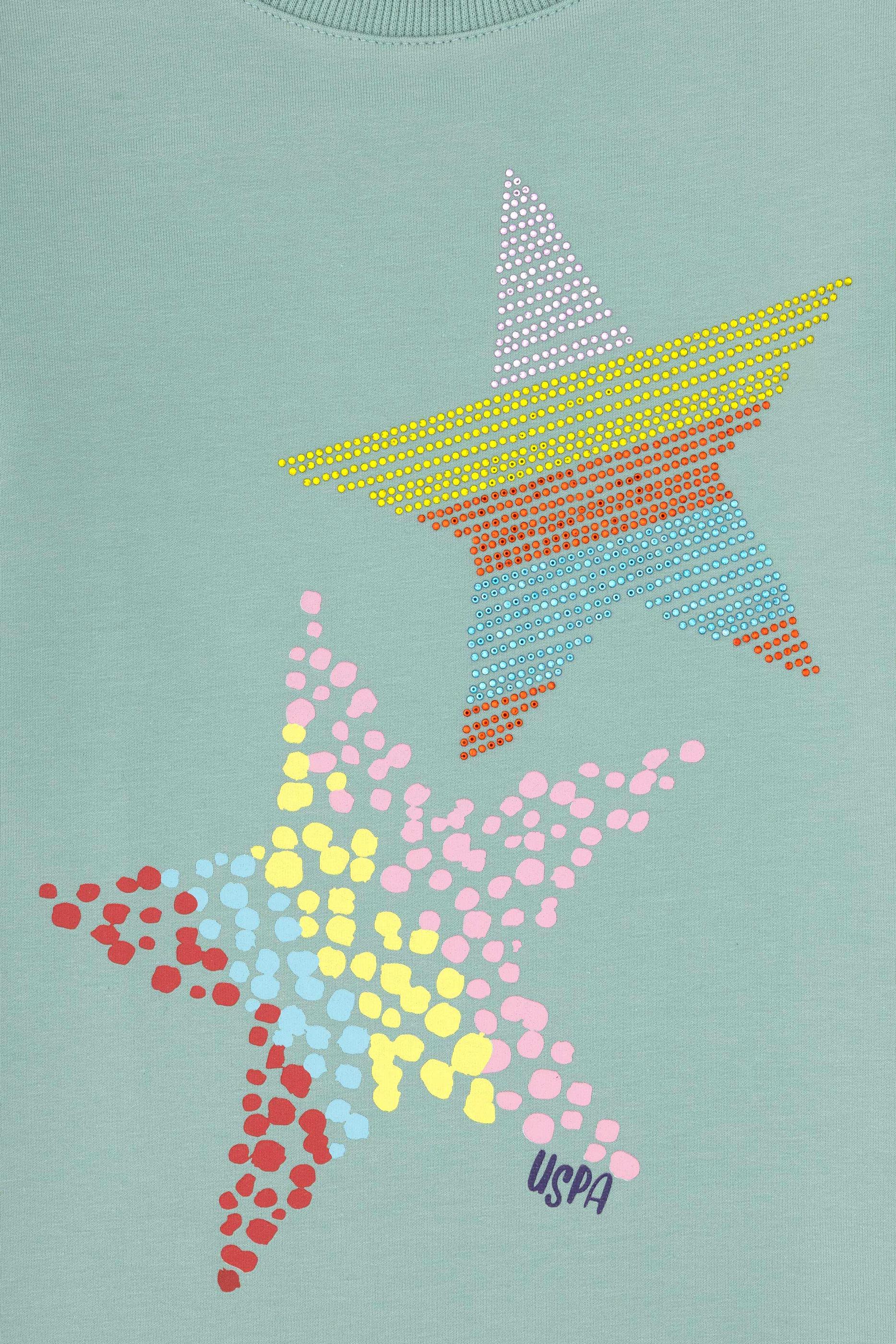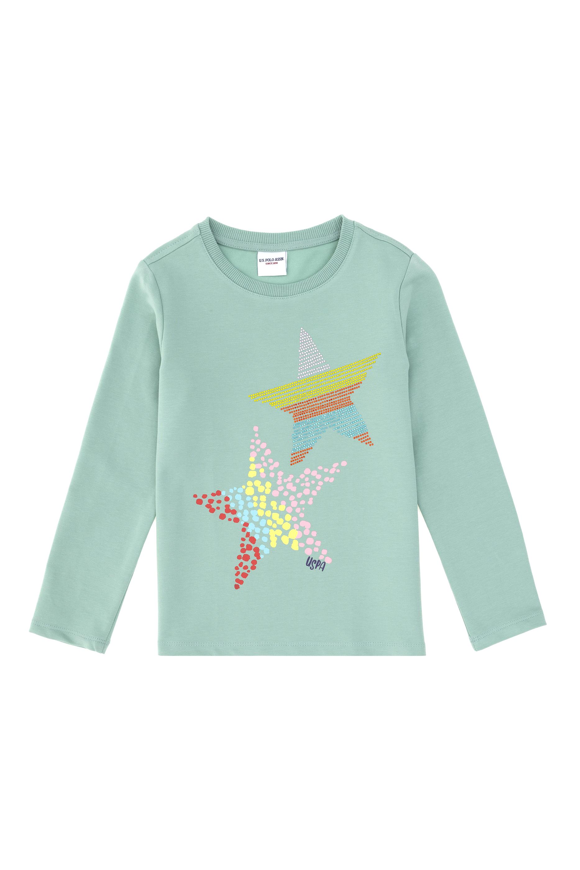 Kız Çocuk Su Yeşili Bisiklet Yaka Sweatshirt