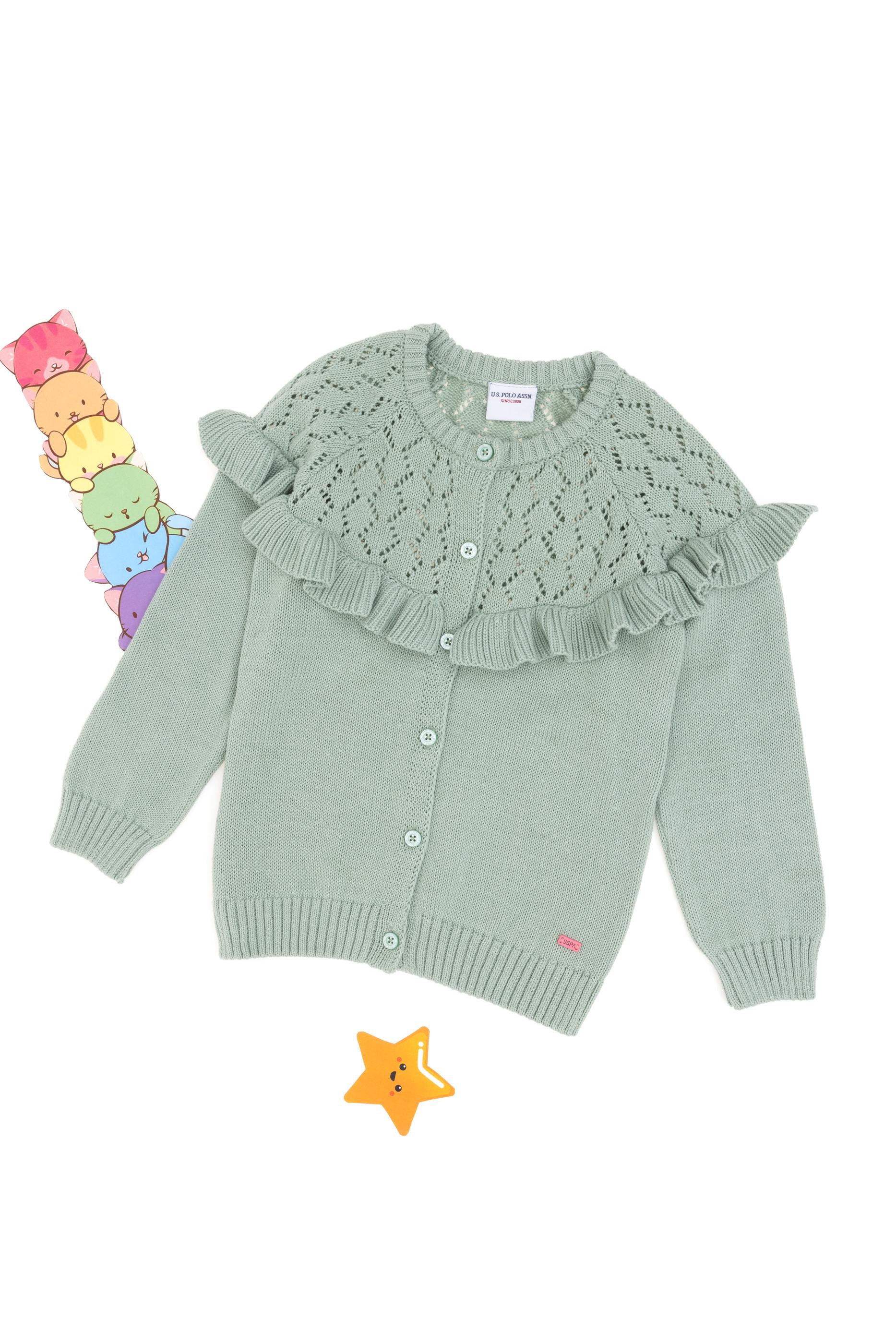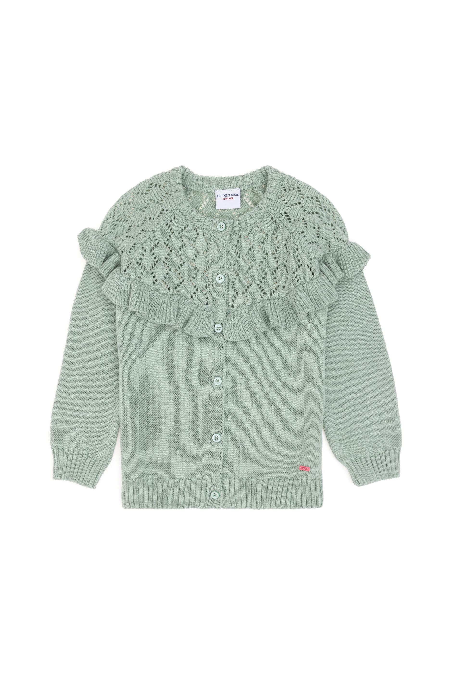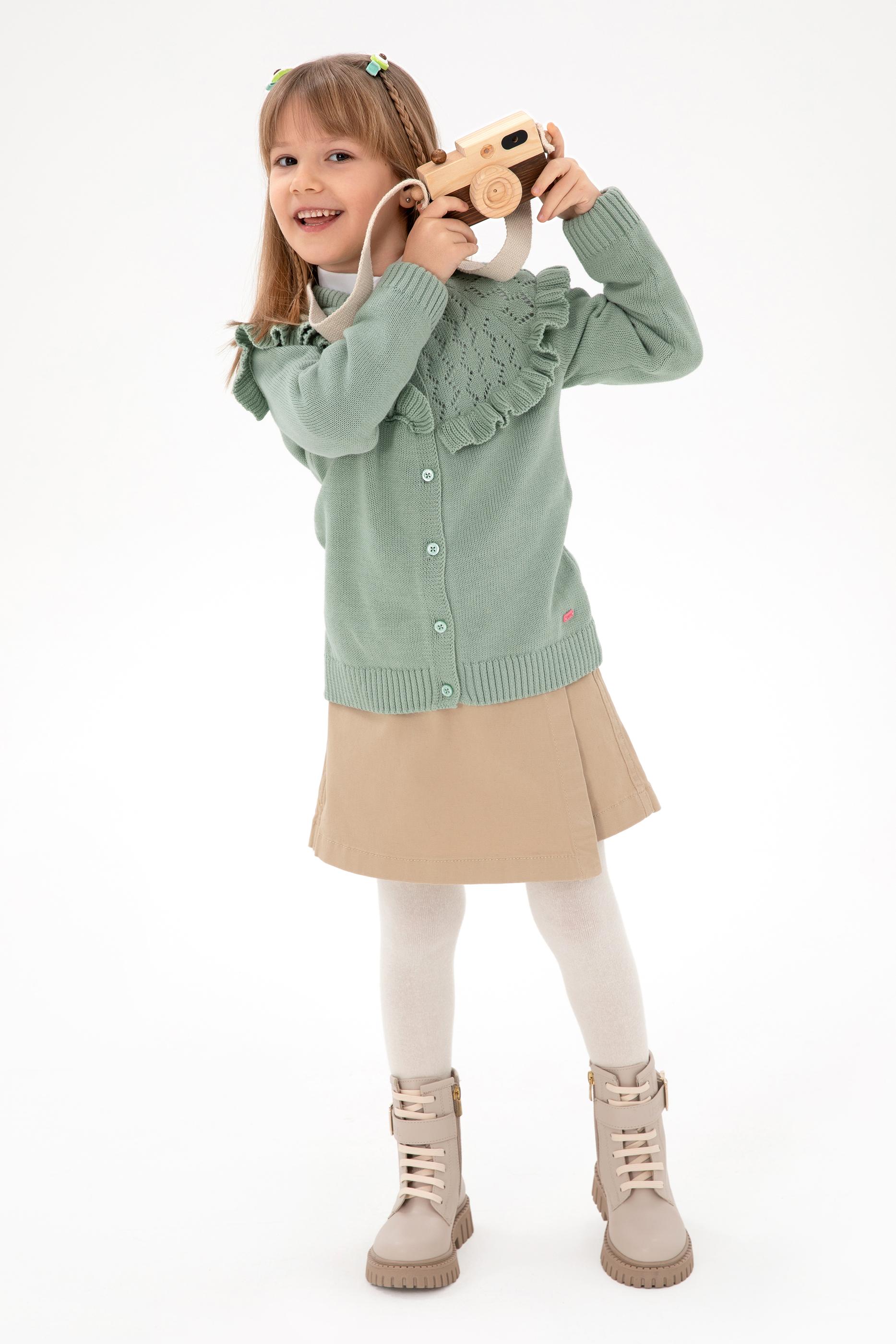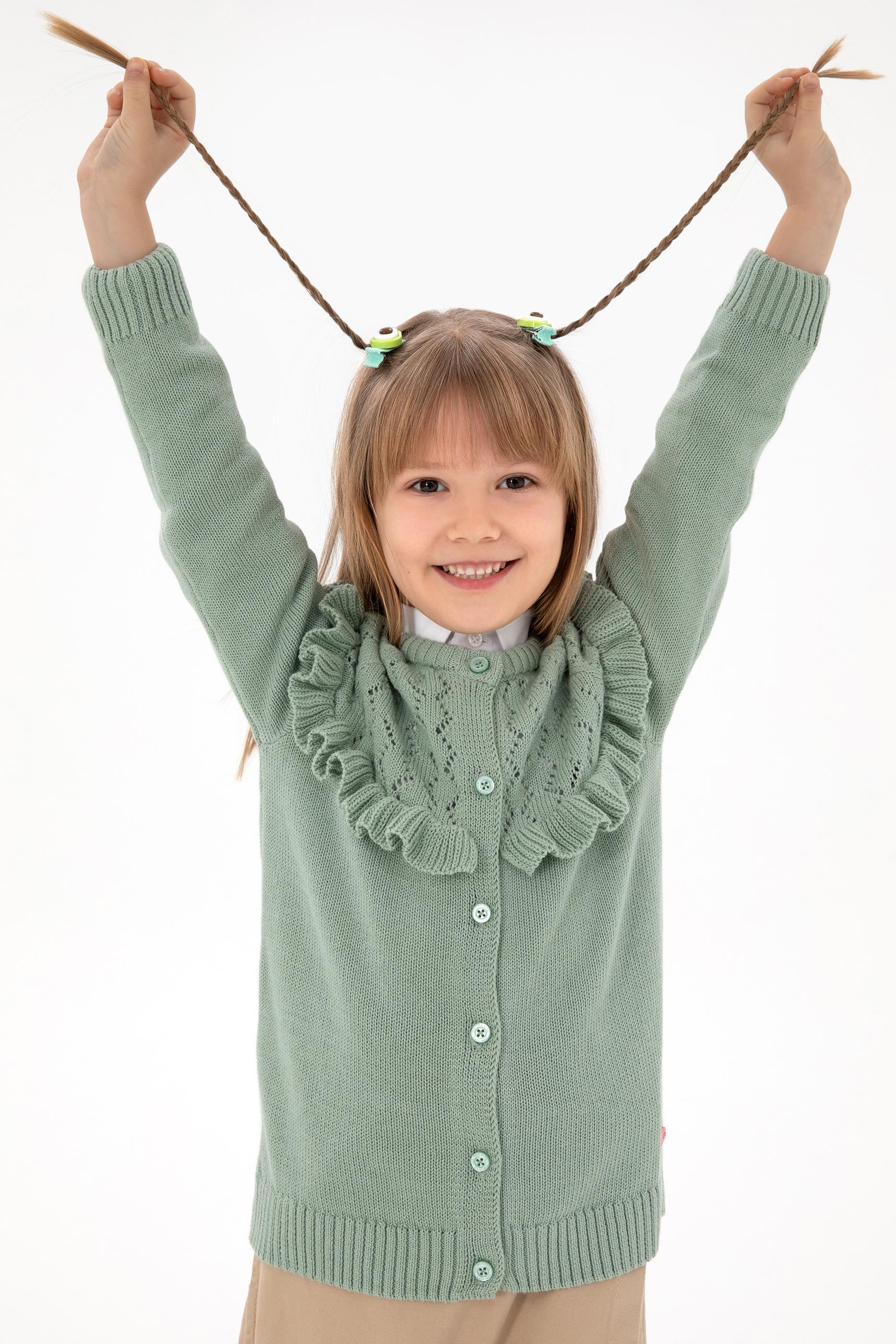 Kız Çocuk Su Yeşili Bisiklet Yaka Triko Hırka