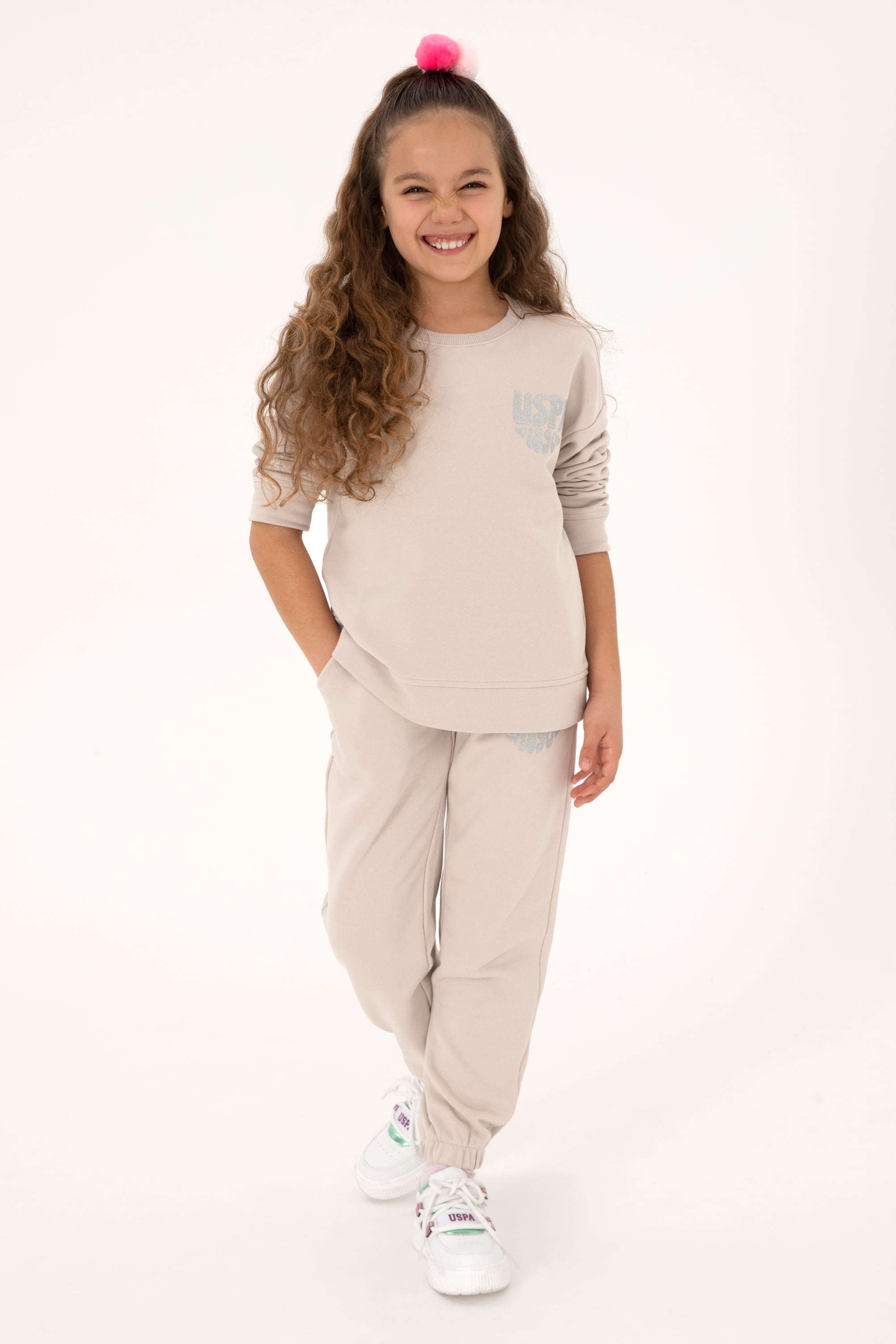 - Kız Çocuk Taş Simli Baskı Detaylı Jogger Eşofman Altı
