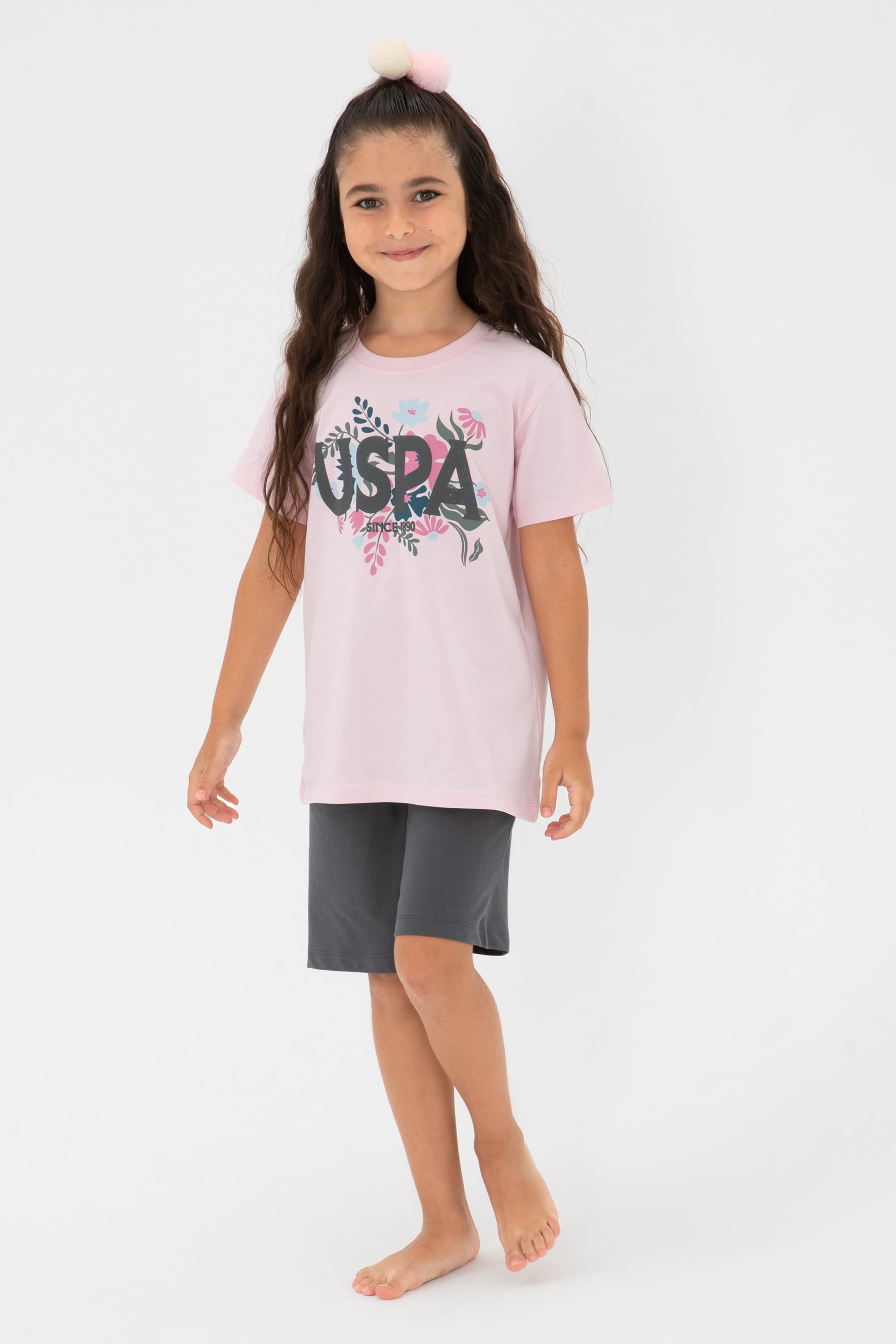 Kız Çocuk Toz Pembe Şortlu Alt Üst Takım