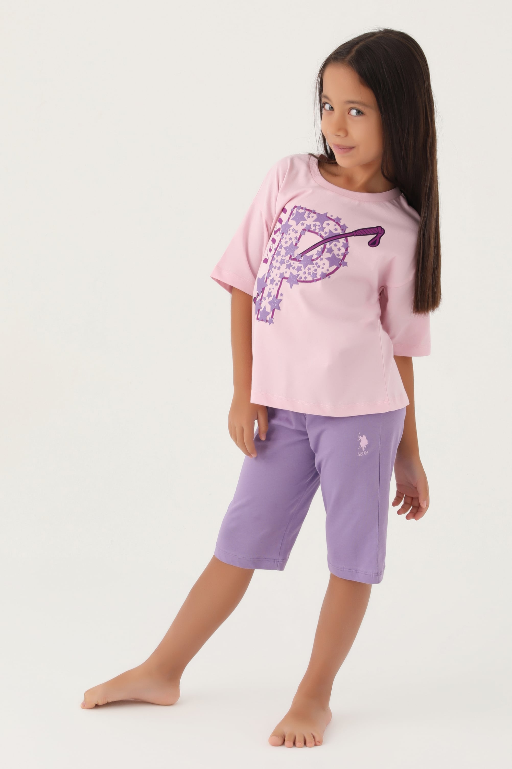 Kız Çocuk Toz Pembe Capri Alt Üst Takım