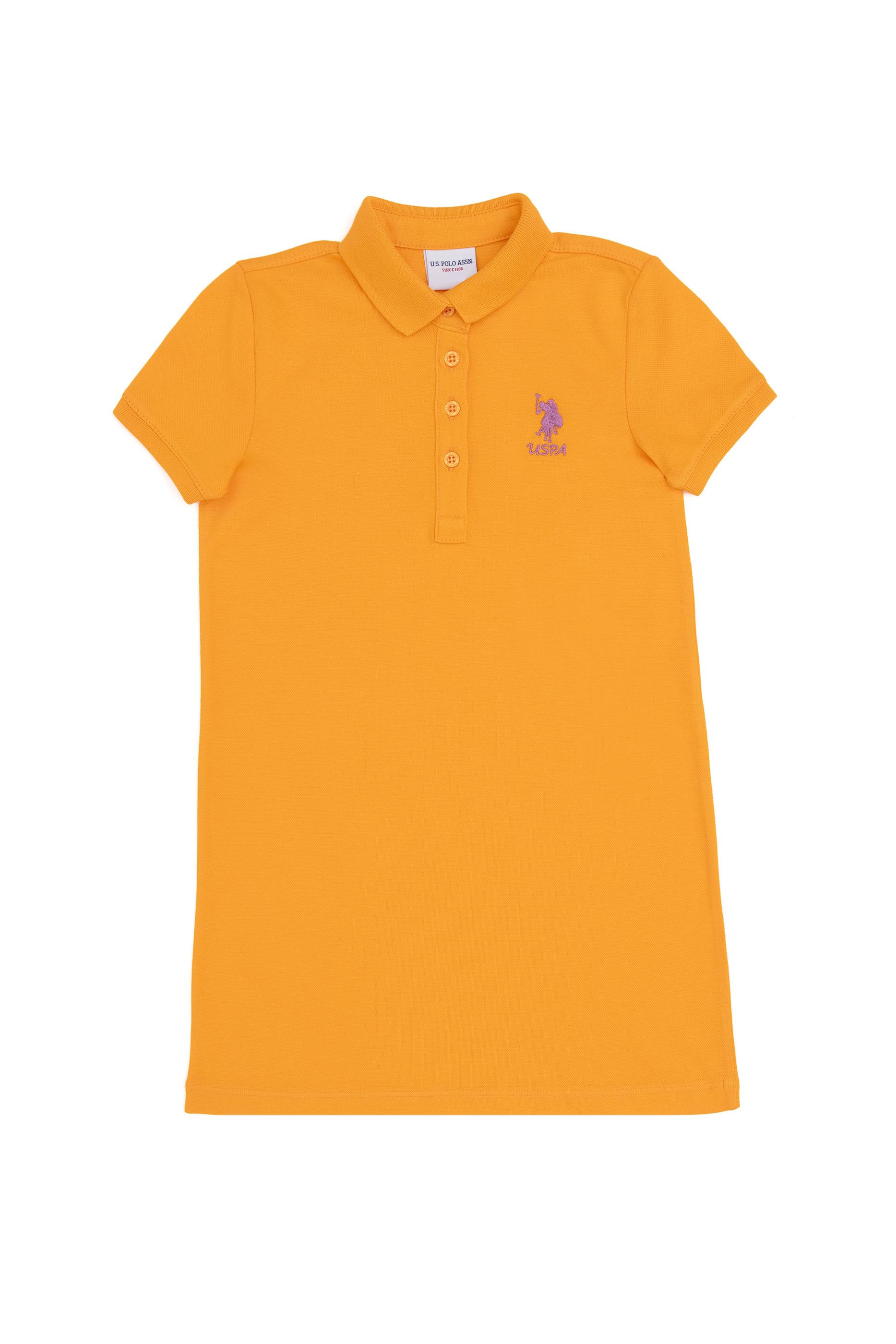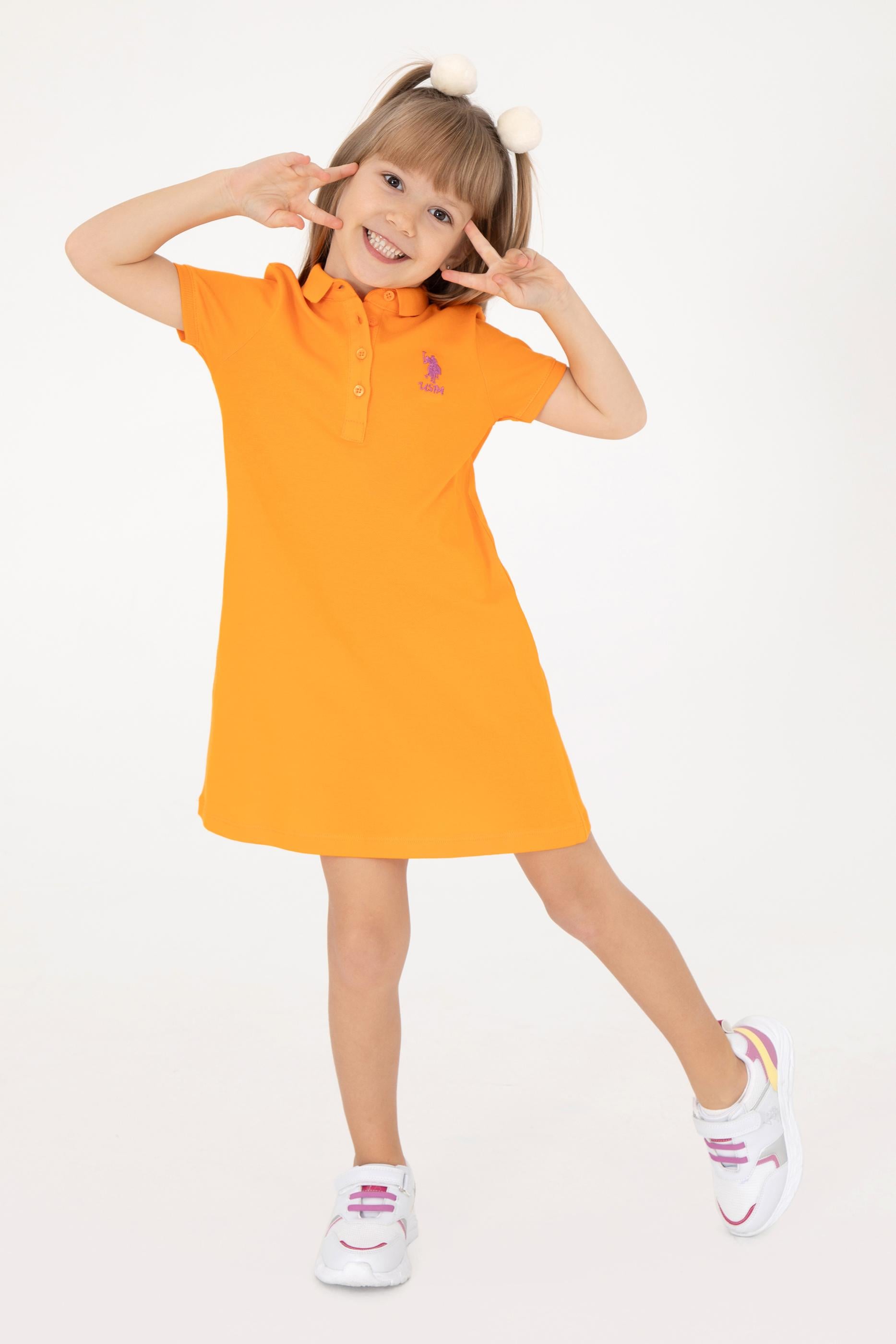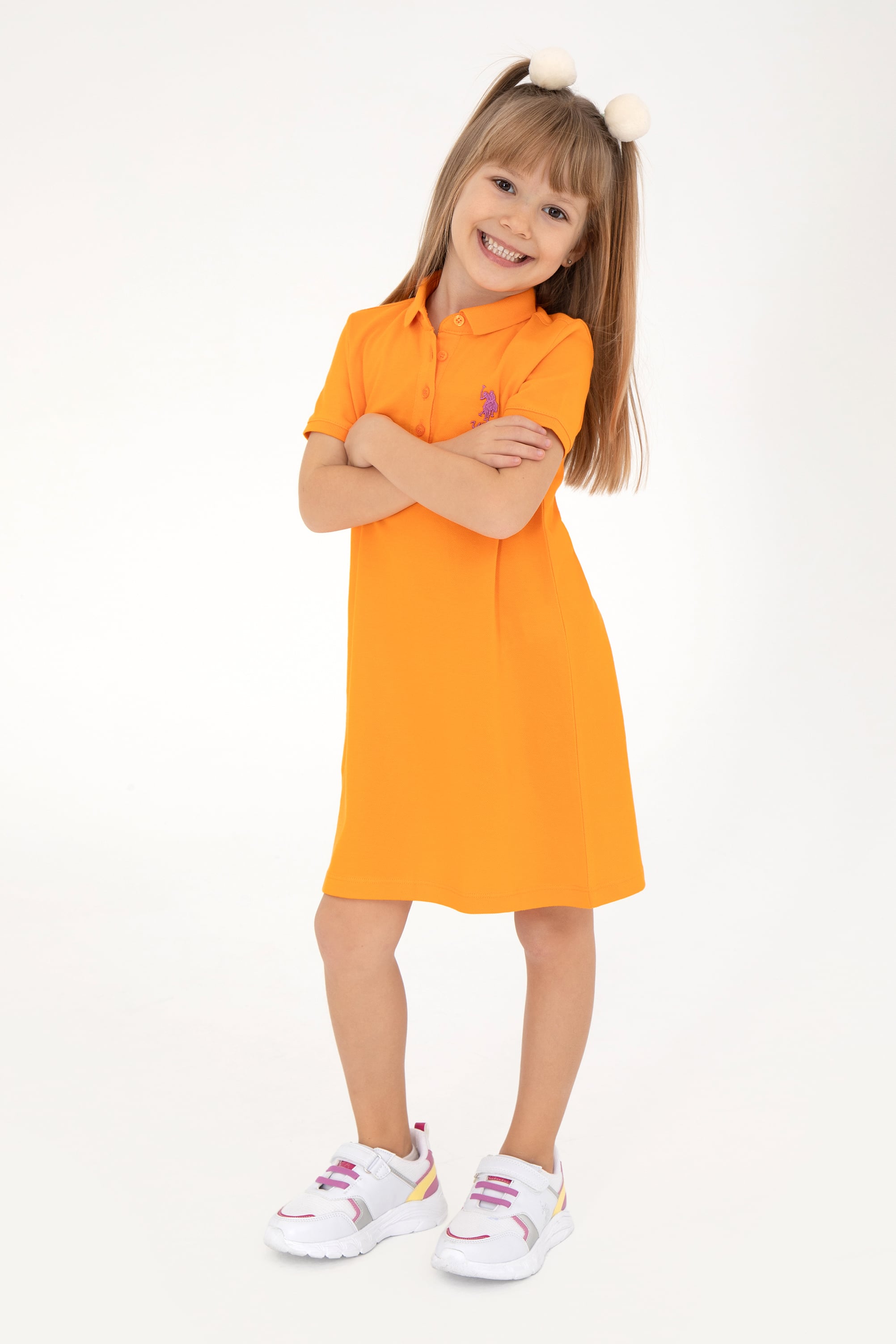 "name": "Kız Çocuk Turuncu Polo Yaka Örme Elbise",