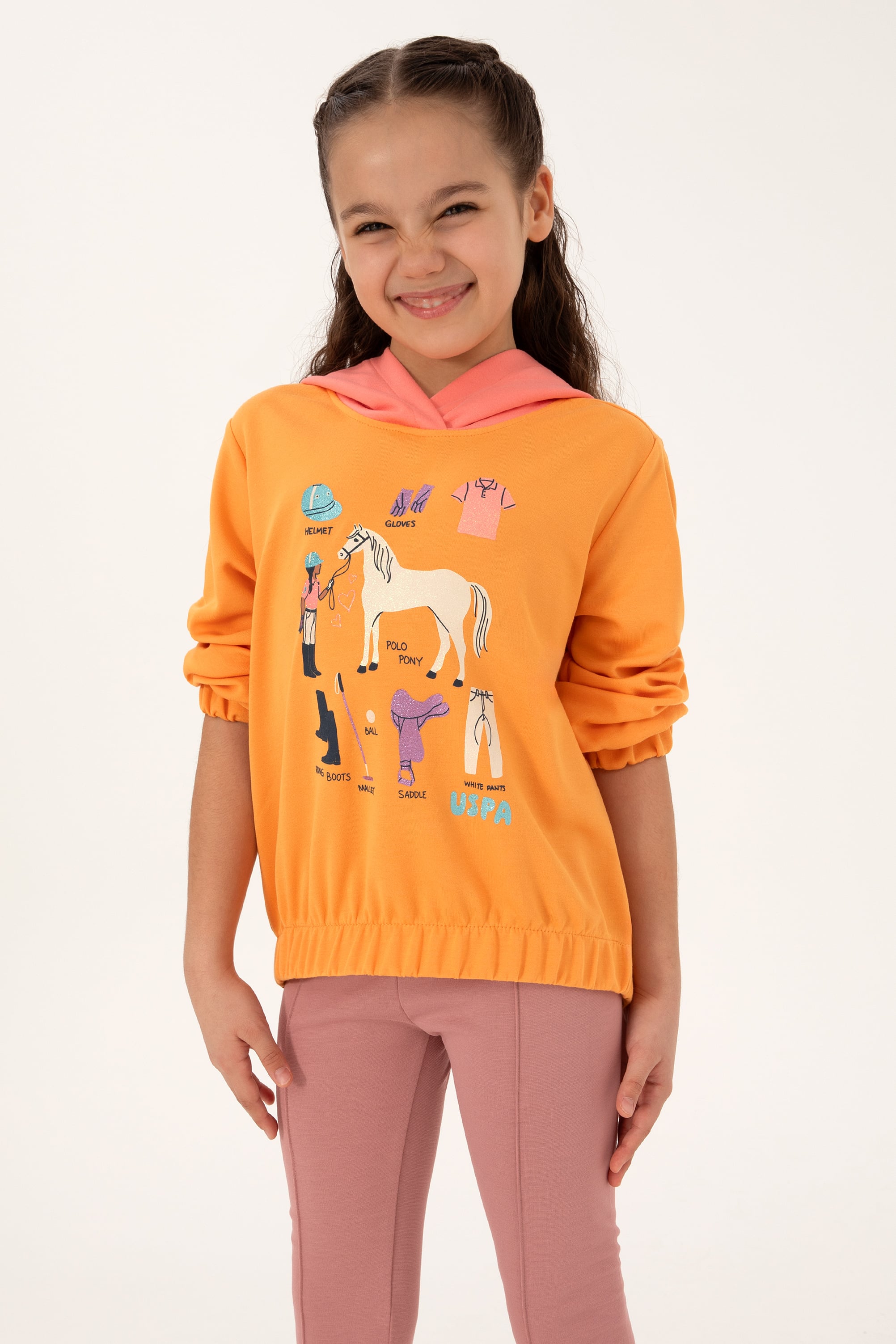 Kız Çocuk Turuncu Kapüşonlu Sweatshirt