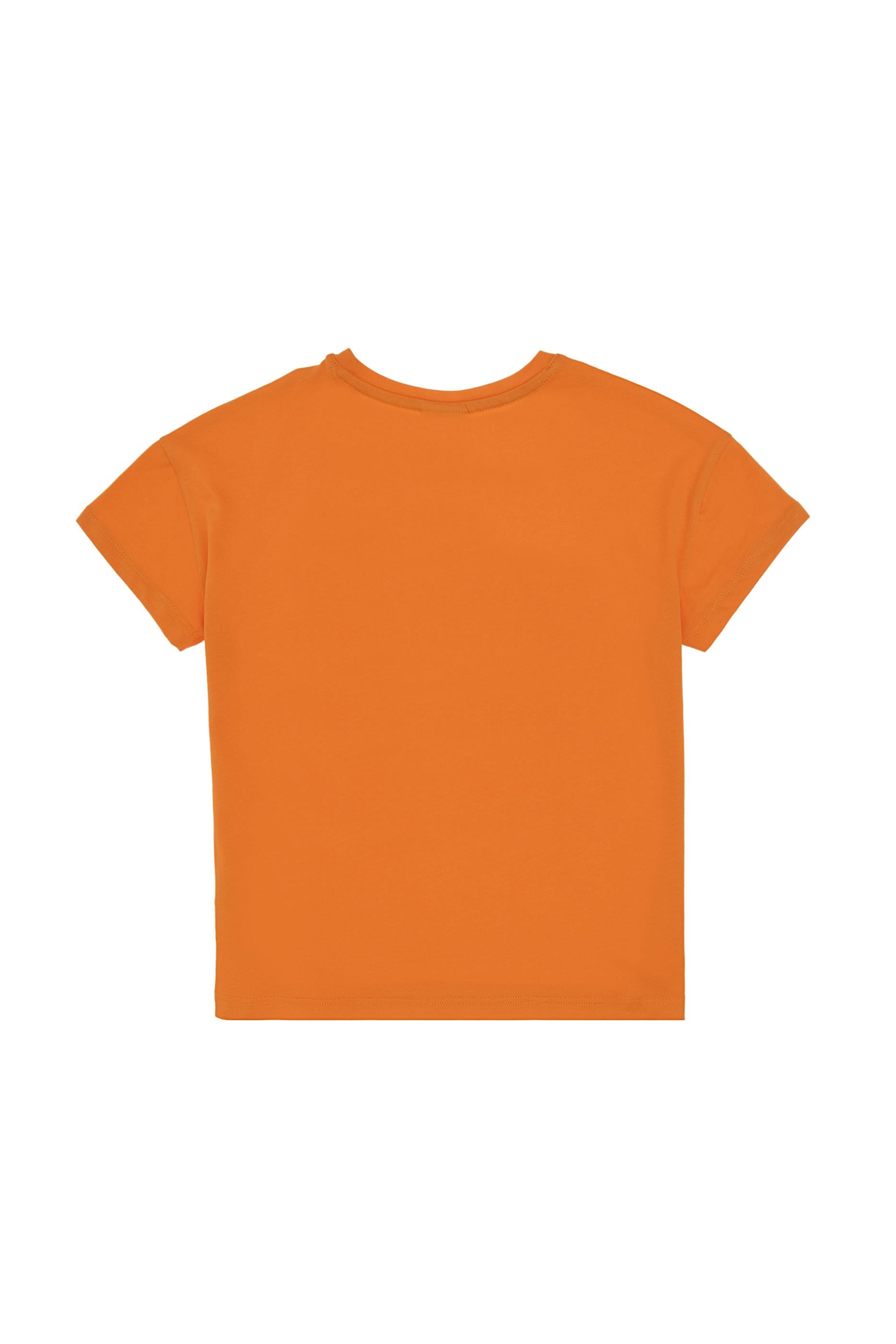 - Kız Çocuk Turuncu Bisiklet Yaka Baskılı Pamuk Tişört
