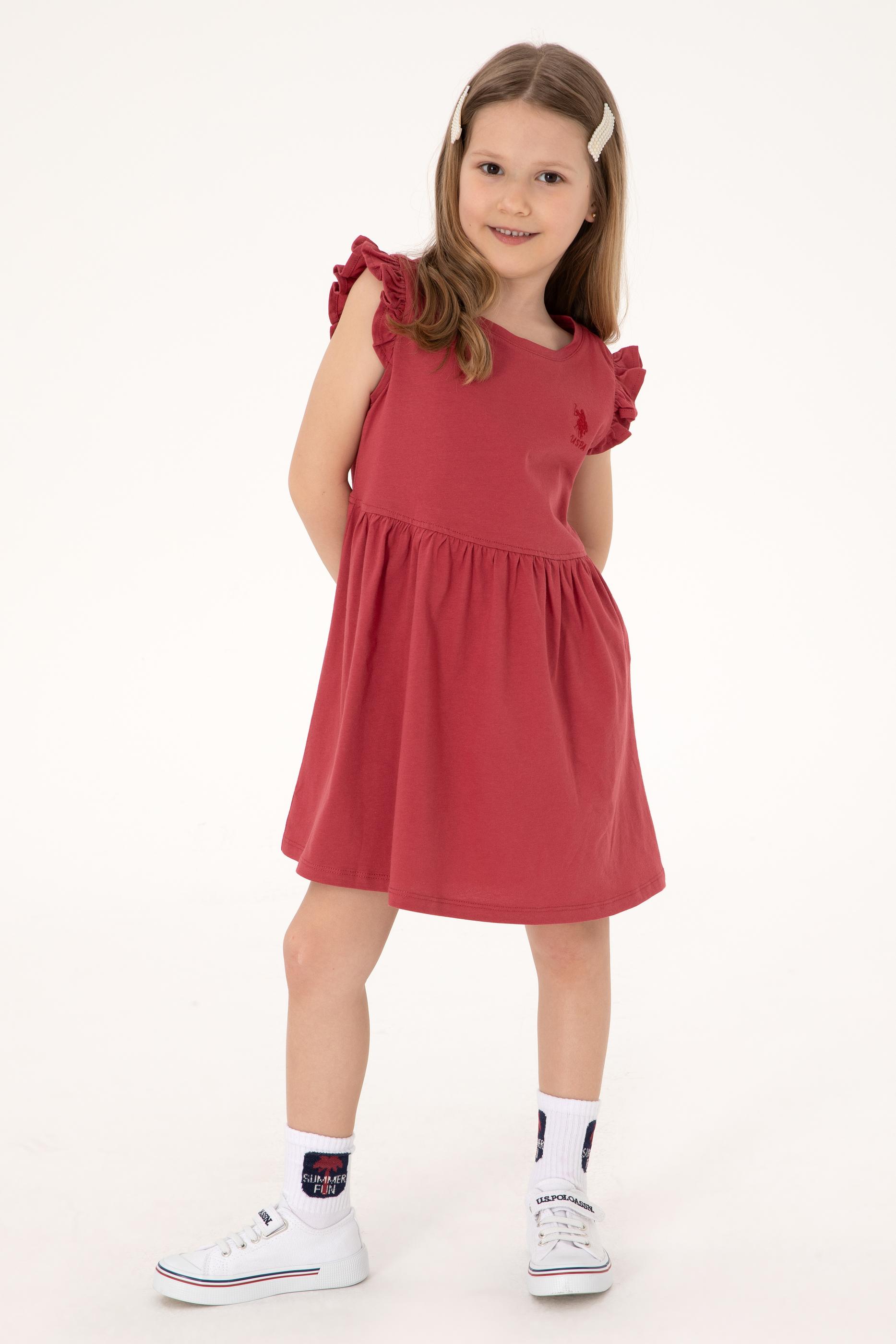 - Kız Çocuk Vişne Fırfır Kollu Bisiklet Yaka Pamuk Örme Elbise