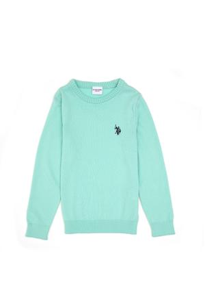 Kız Çocuk Yeşil Bisiklet Yaka Basic Kazak