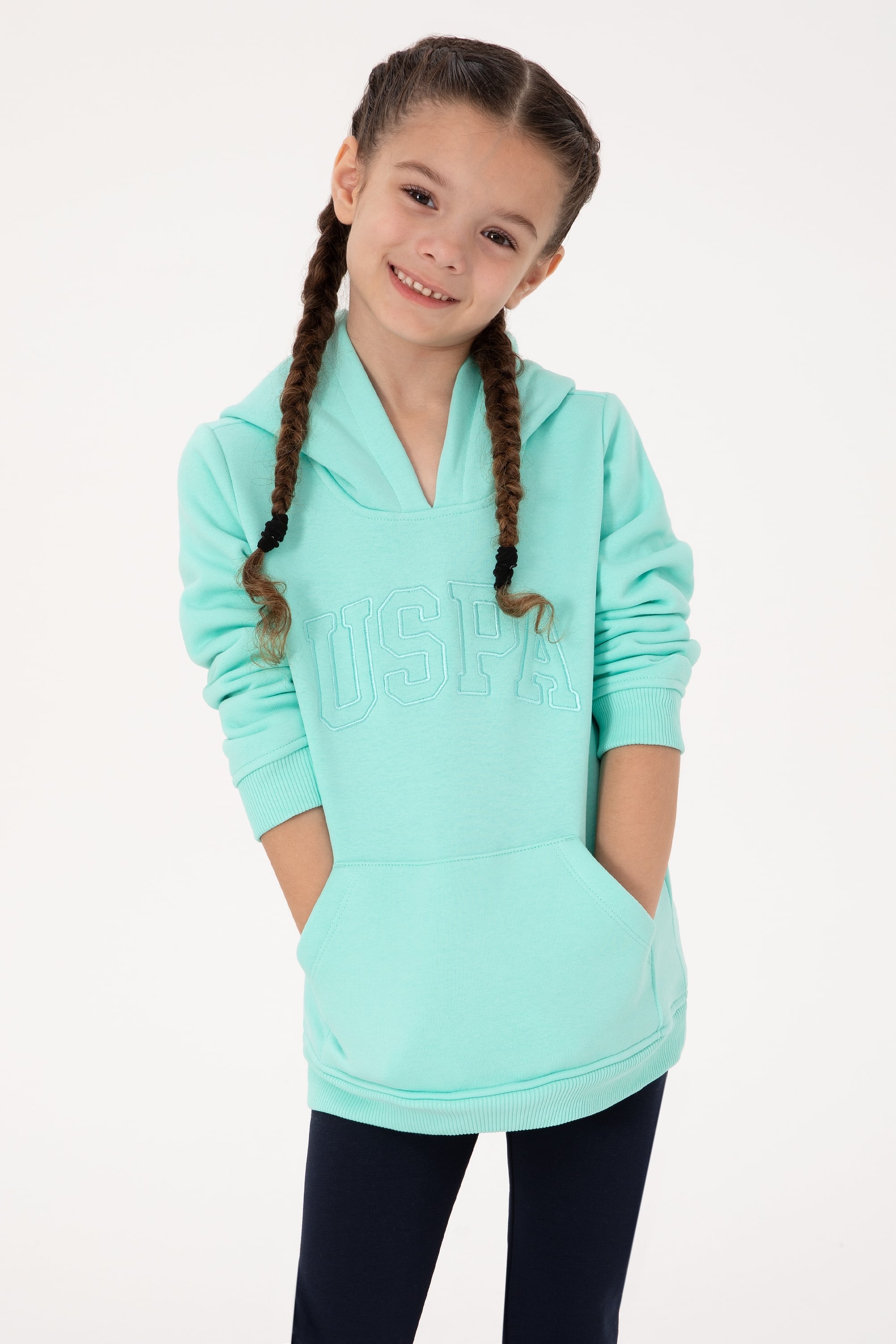 Kız Çocuk Mint Kapüşonlu Şardonlu Basic Sweatshirt