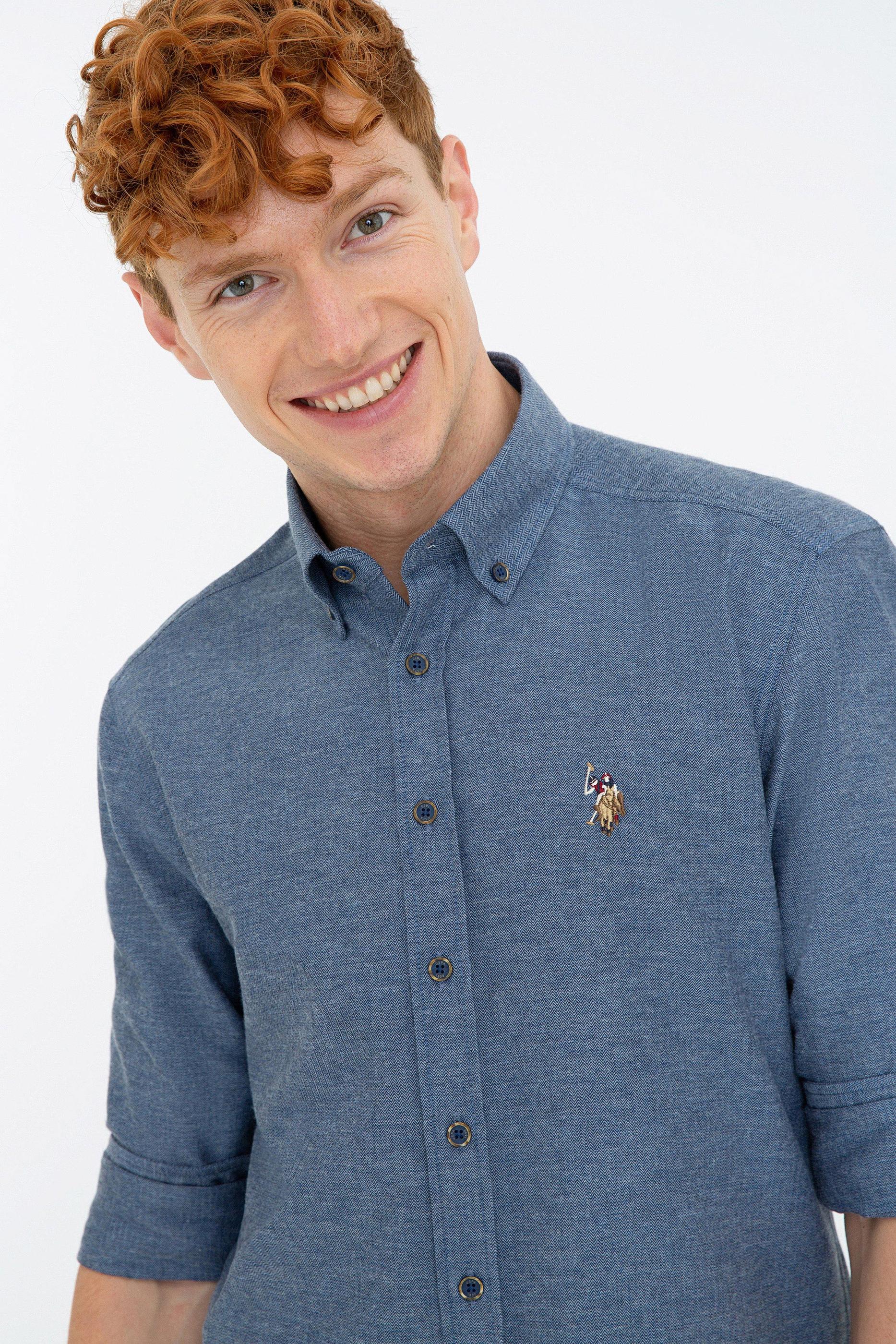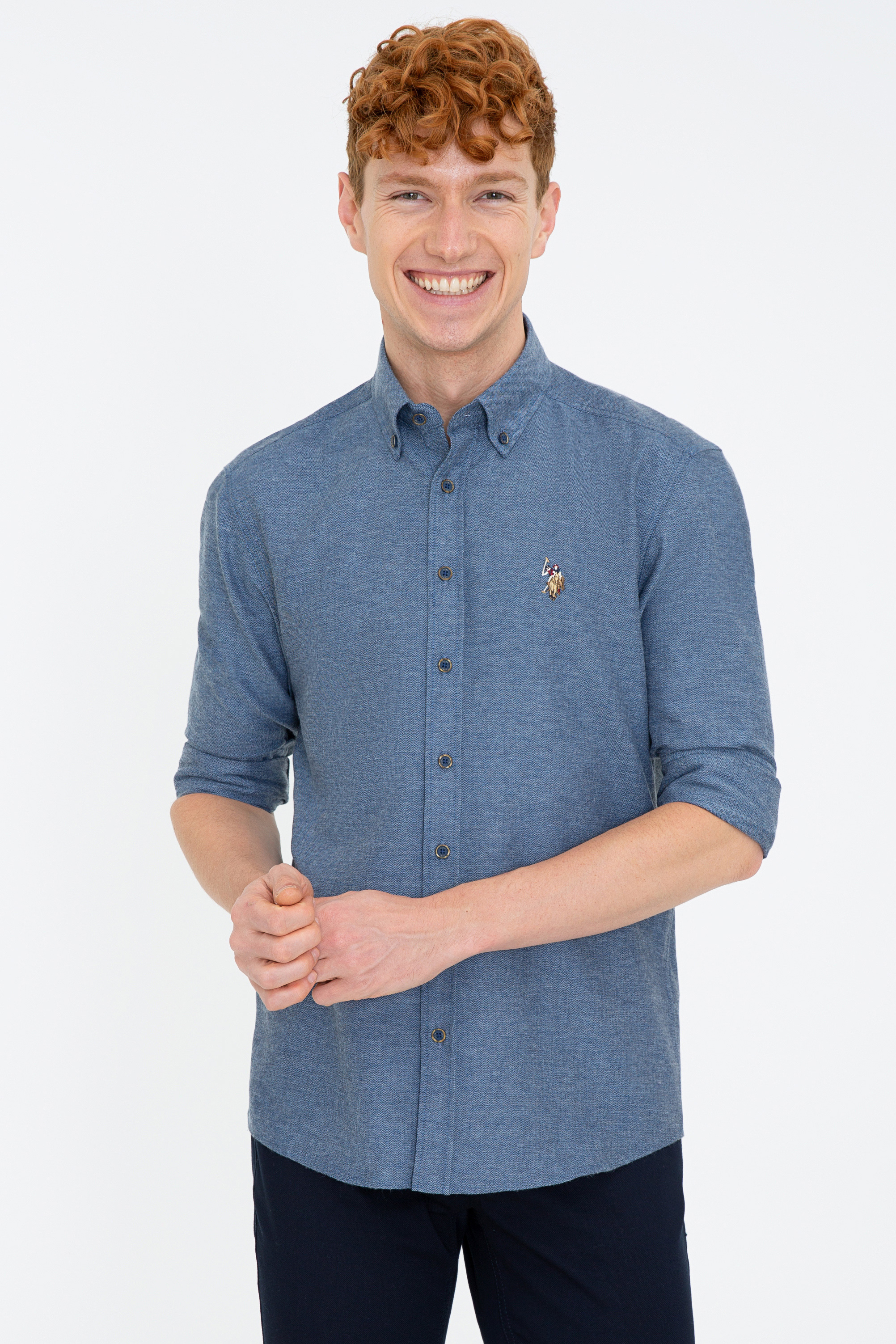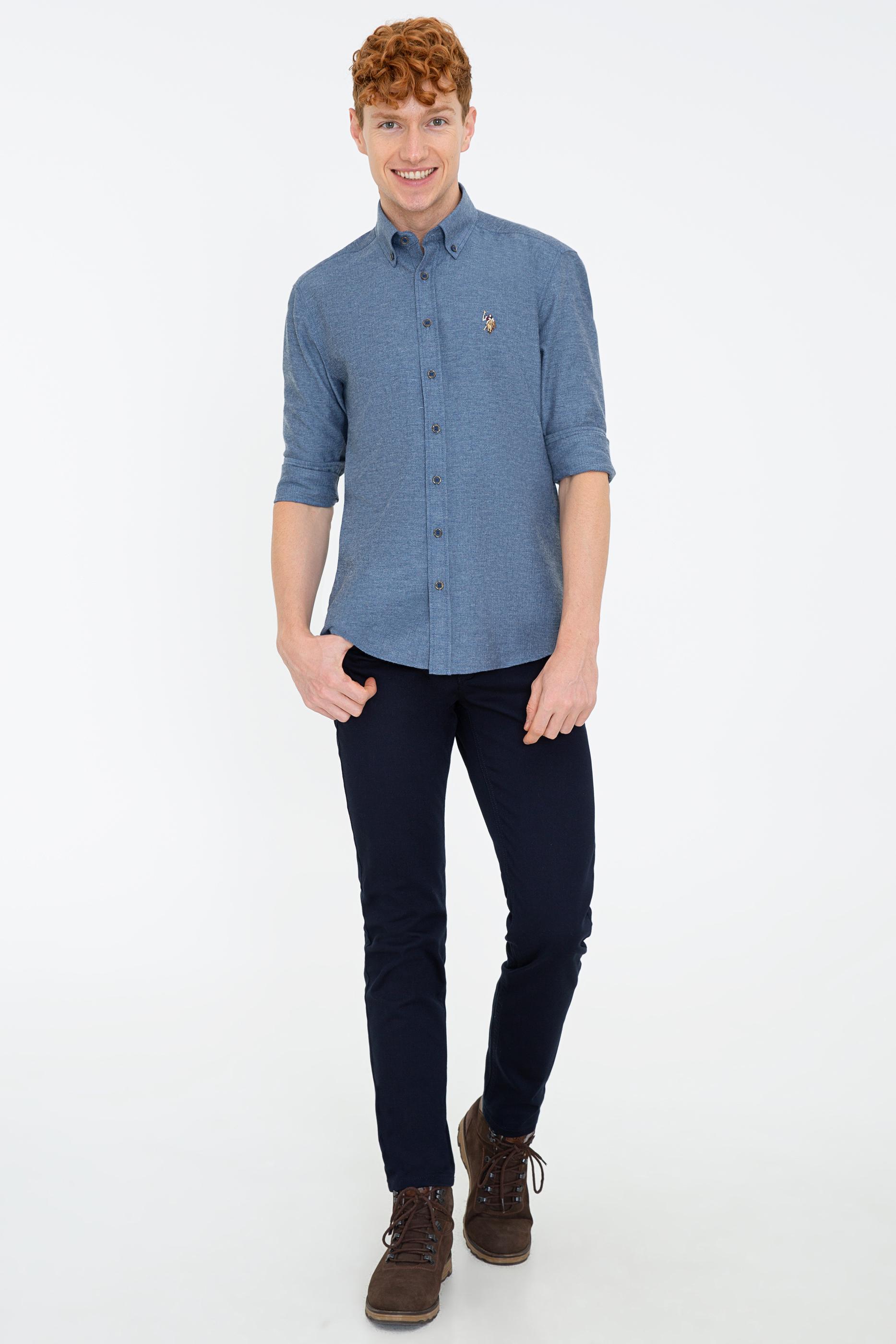 Erkek İndigo Uzun Kollu Basic Gömlek