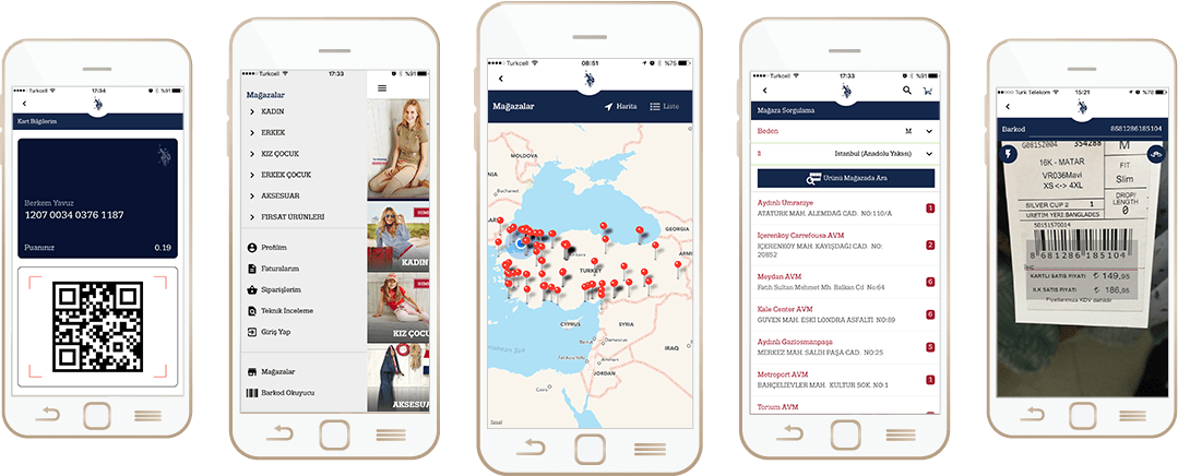 U.S. Polo Assn. mobil uygulaması ile güvenli bir şekilde alışveriş yapabilir, sipariş durumunuzu takip edebilir ve geçmiş fatura bilgilerinize kolayca ulaşabilirsiniz. İlgilendiğiniz ürünün hangi mağazada olduğunu öğrenebilir ve barkod okuma özelliğiyle ürünü aratarak satın alabilirsiniz.