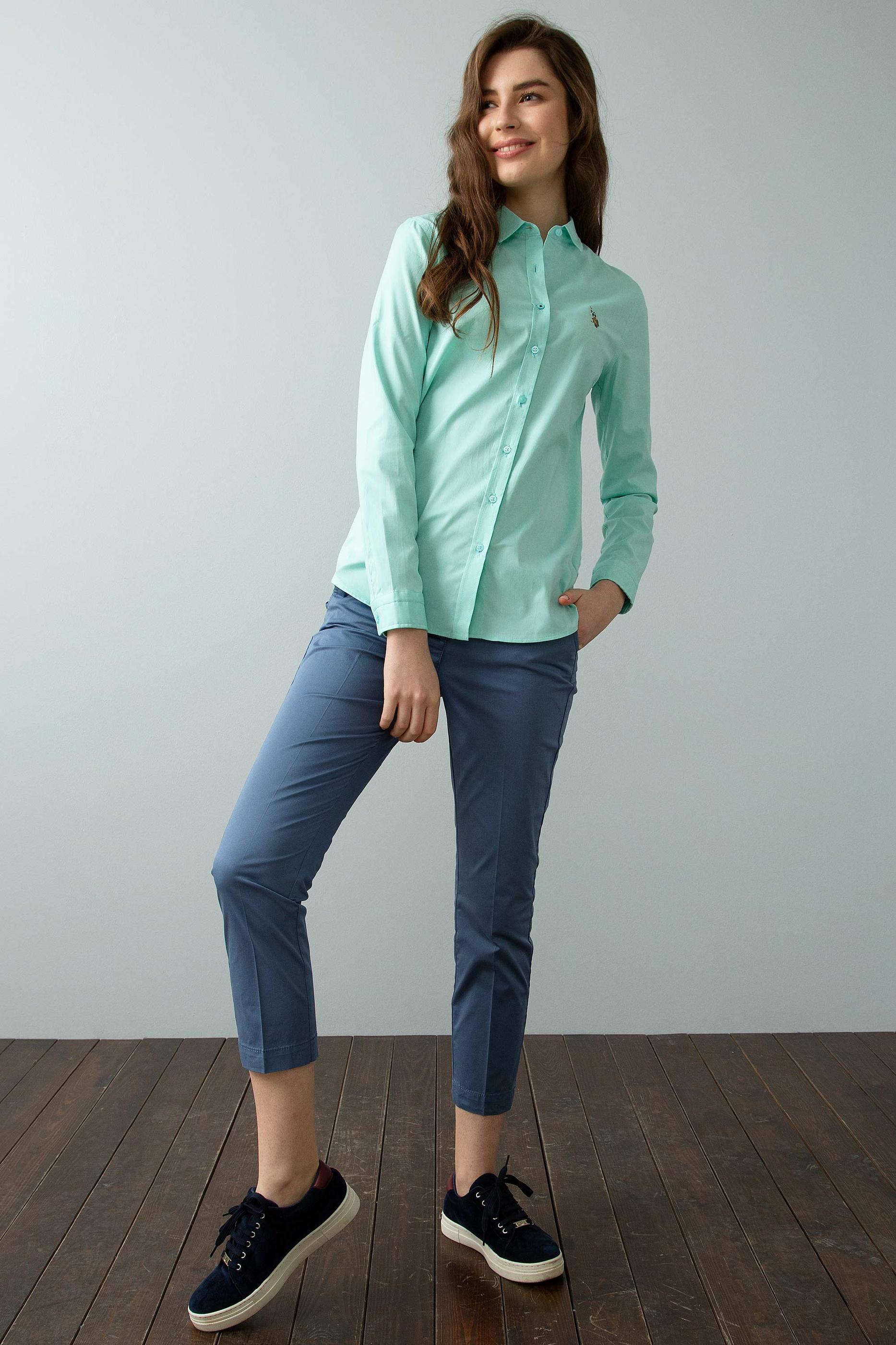 - Kadın Mint Uzun Kollu Basic Gömlek