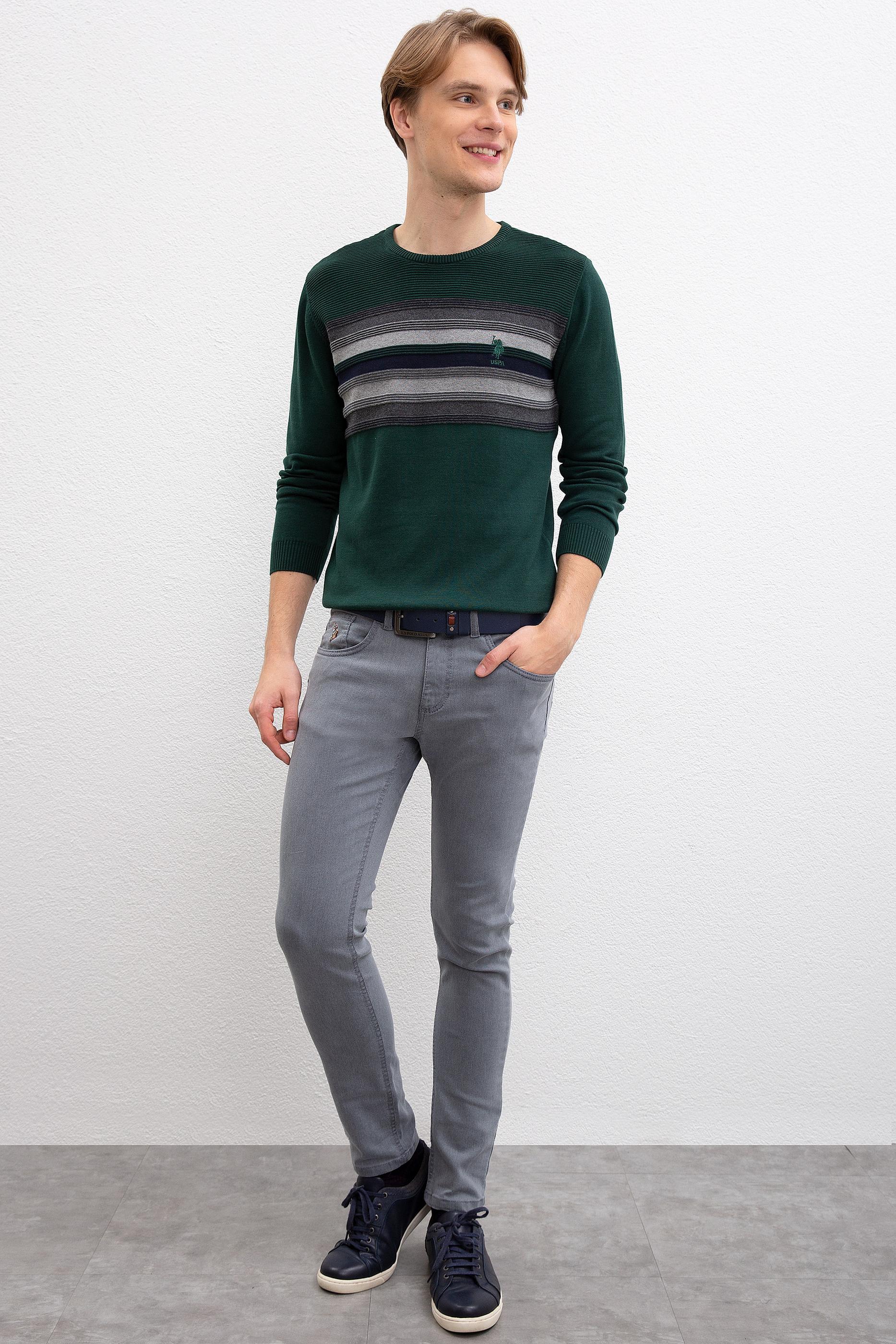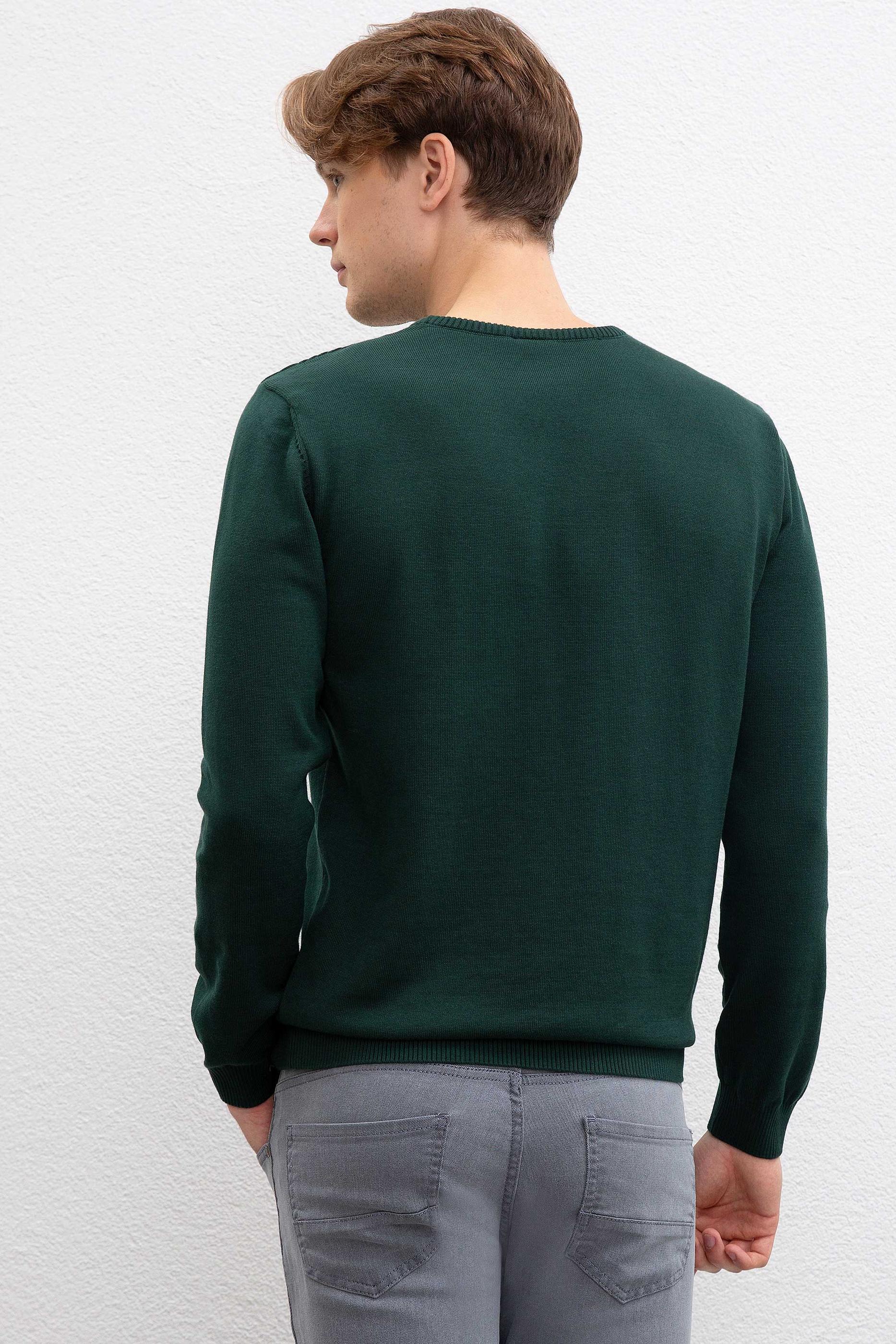 Erkek Koyu Yeşil Bisiklet Yaka Triko Kazak - 50205676015