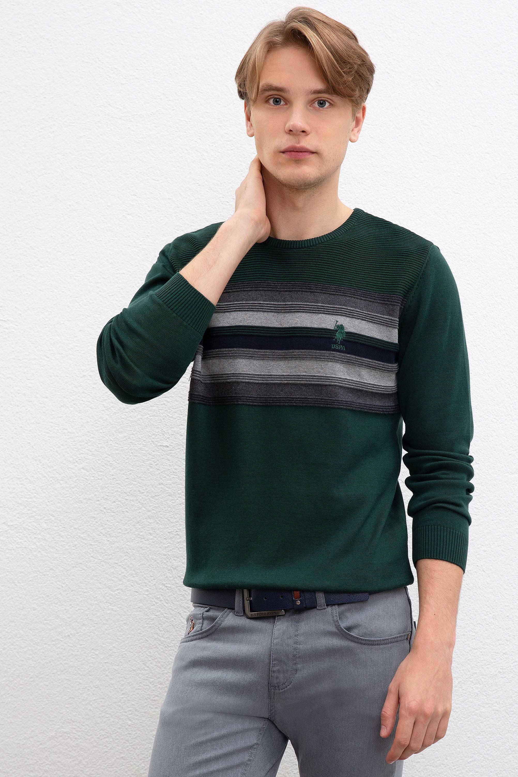 Erkek Koyu Yeşil Bisiklet Yaka Triko Kazak